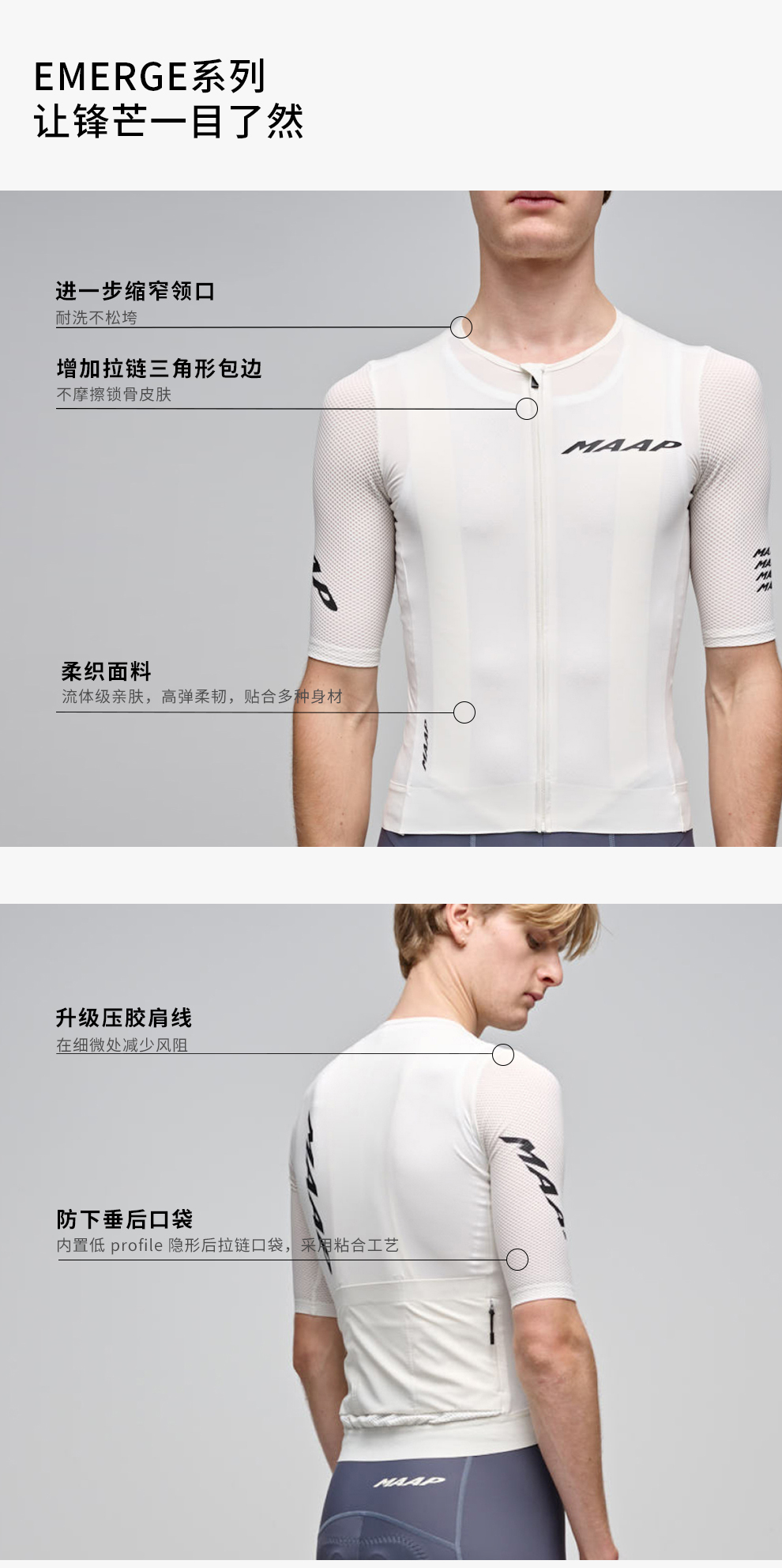 MAAP 男士 Emerge Jersey 秋雾白 短袖骑行服