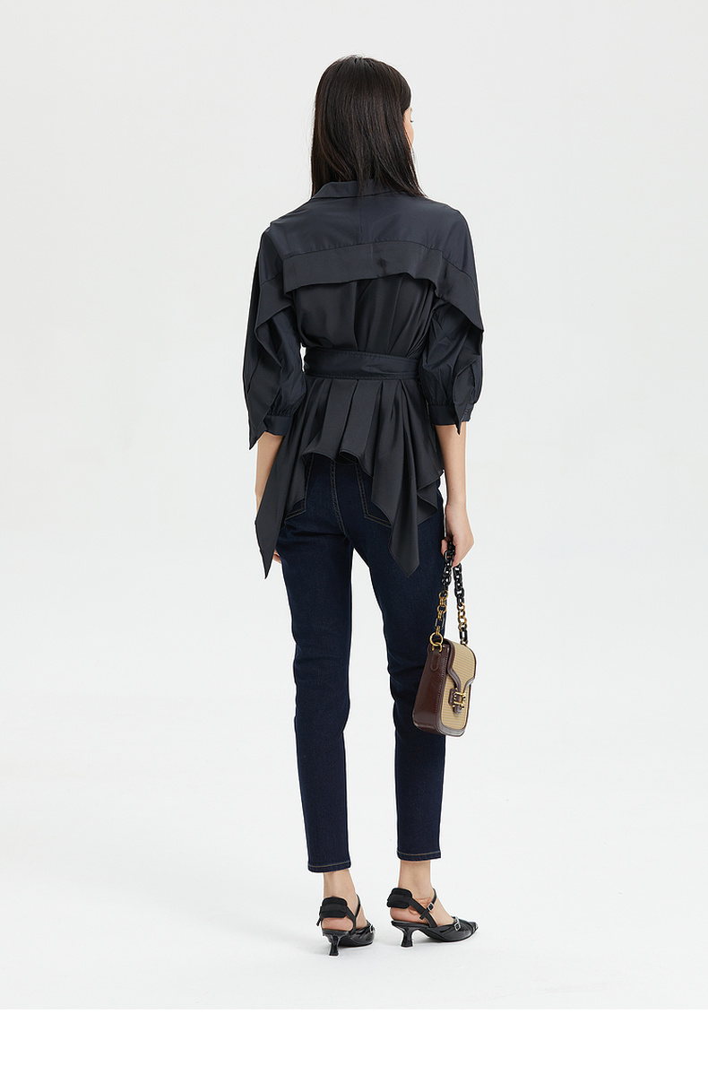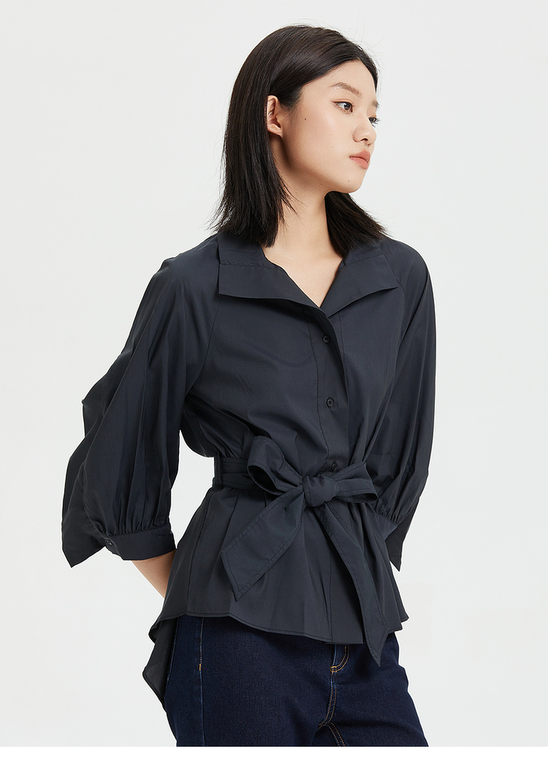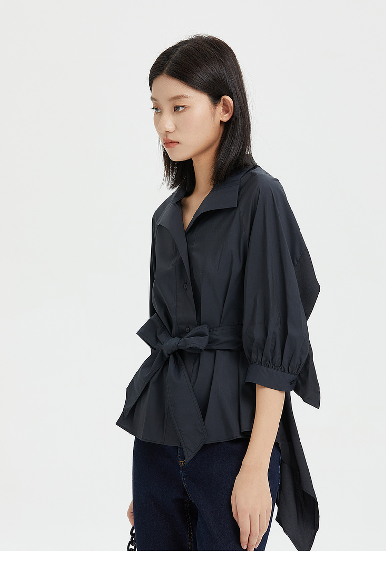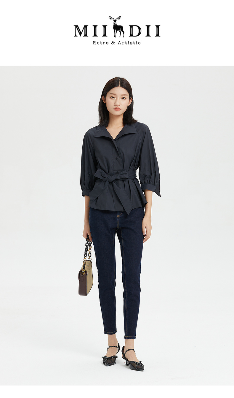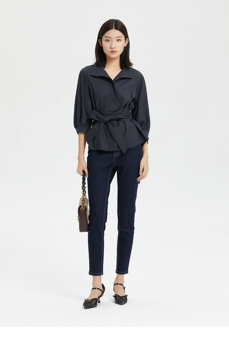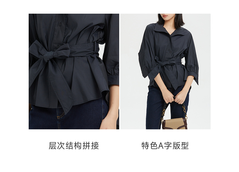 谜底收腰显瘦衬衫女2023夏新款合体七分袖翻领时尚上衣235MC6021