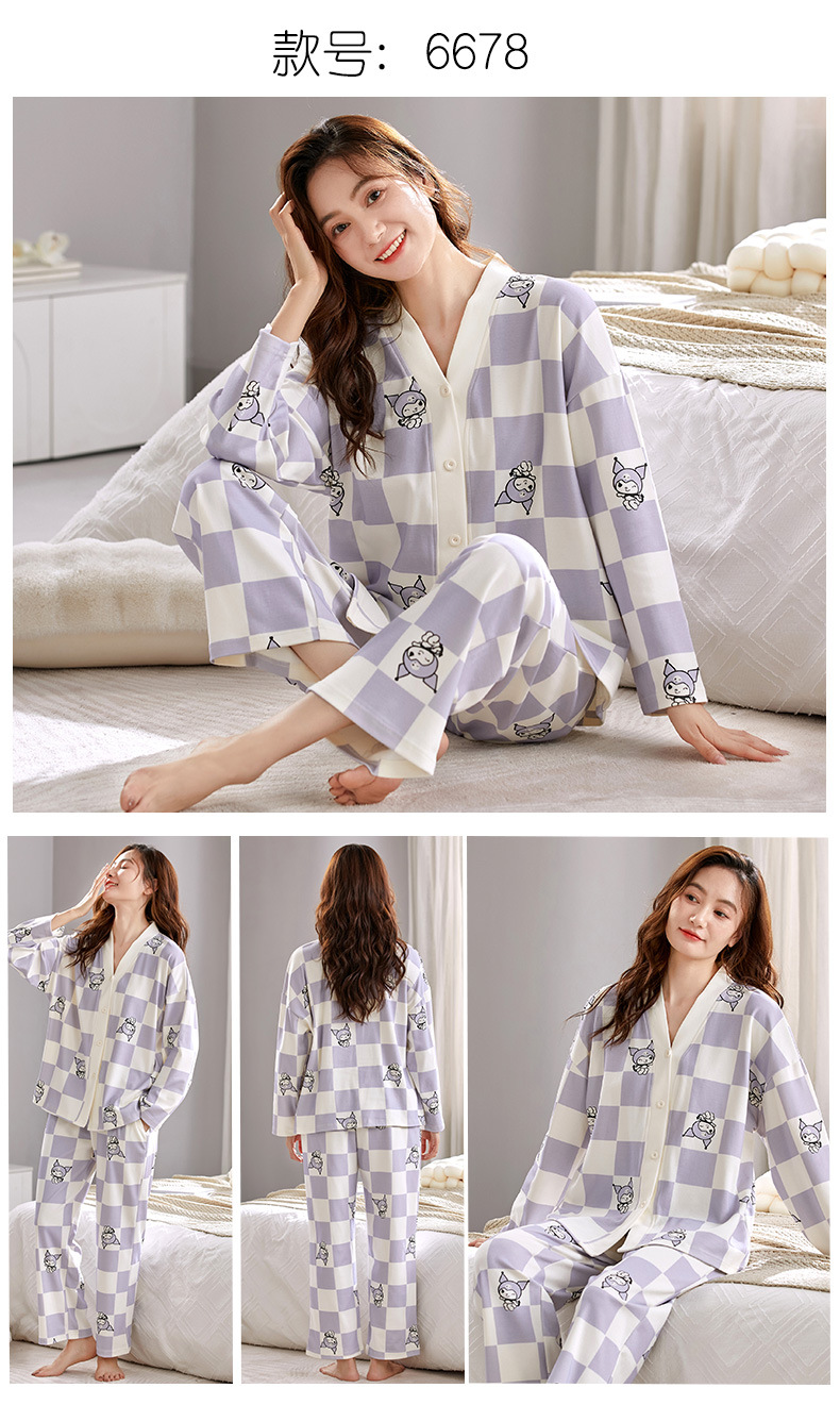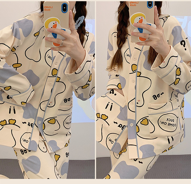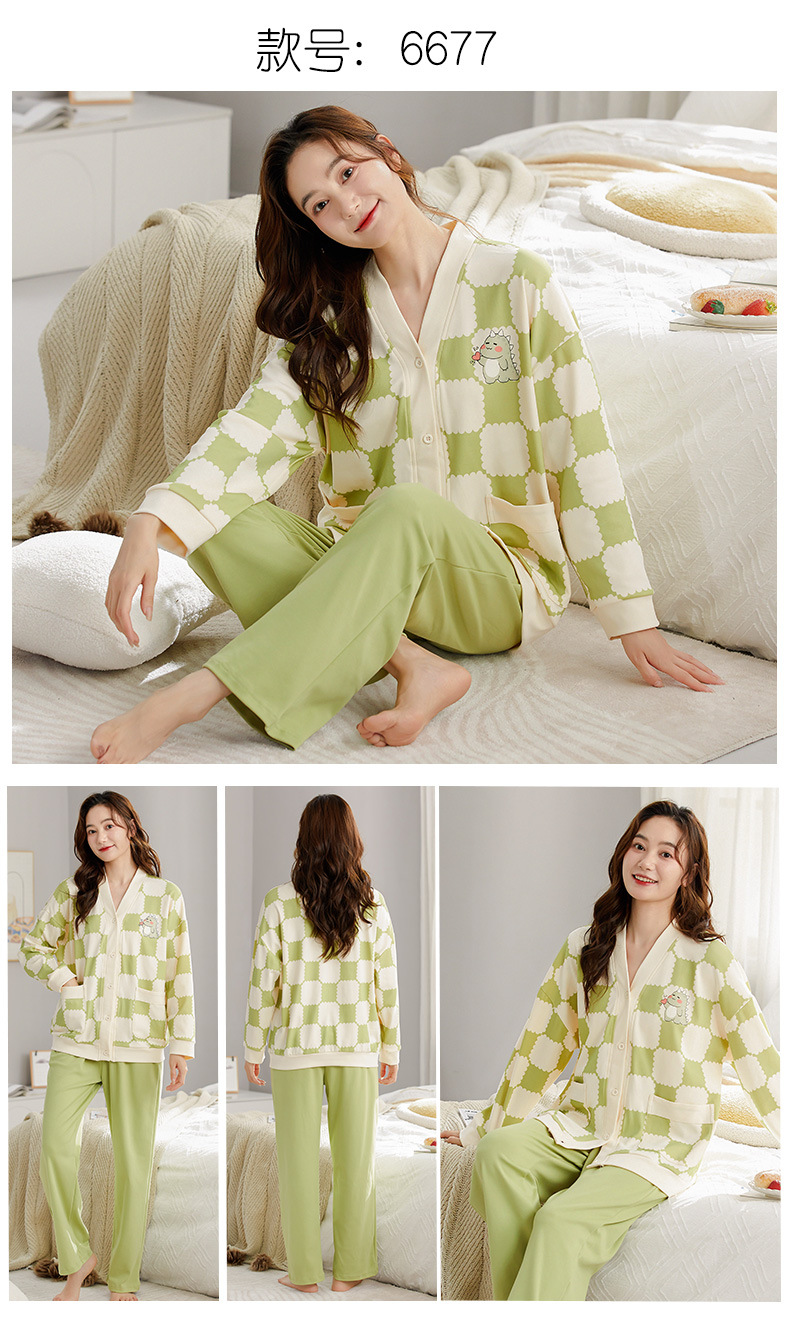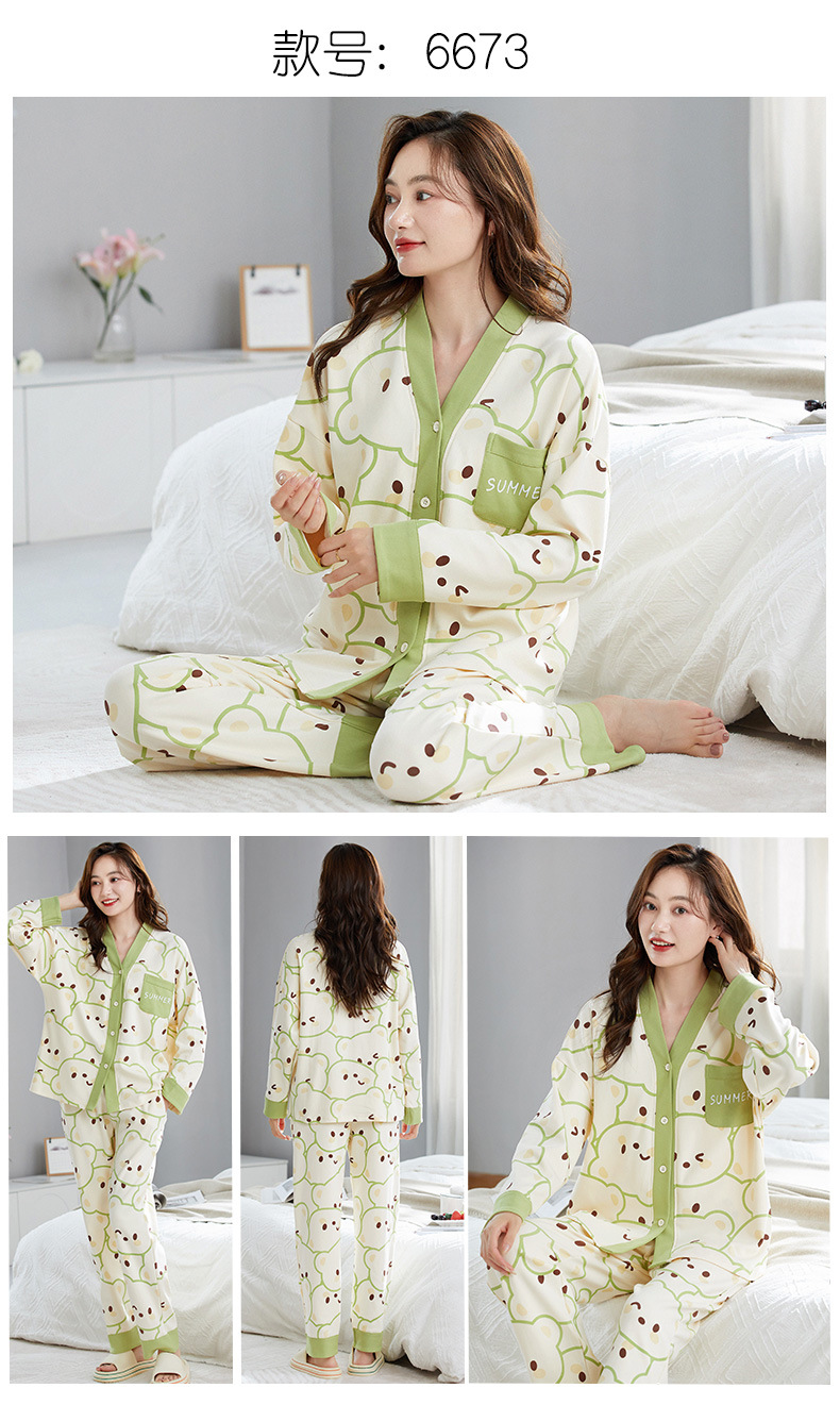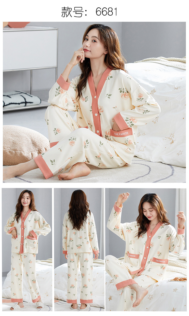 新款日系家居服抖音网红同款带胸垫睡衣女秋冬款长袖开衫条纹韩版家居服秋季套装大码