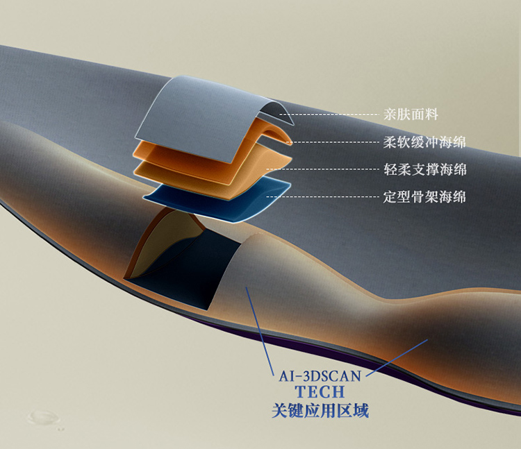 它由内而外融合了四种不同材料,来兼顾舒适度。