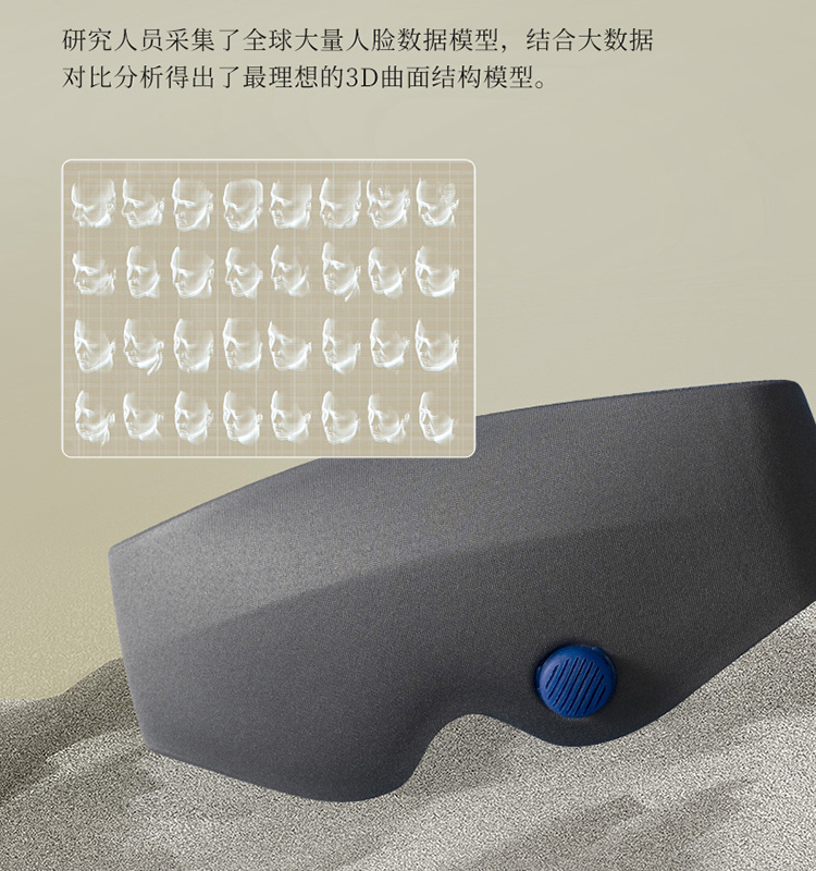 原来,为了让眼罩更贴合我们的面部轮廓,团队利用 3D人脸仿生技术,收集大量面部数据,针对亚洲人的脸型做了研发。
