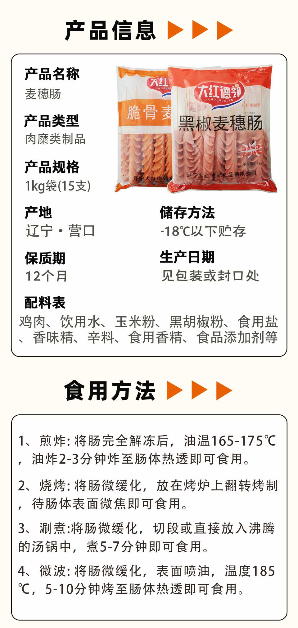 大红德邻脆骨麦穗肠/黑椒麦穗肠 1kg/袋(15支) 8袋/件