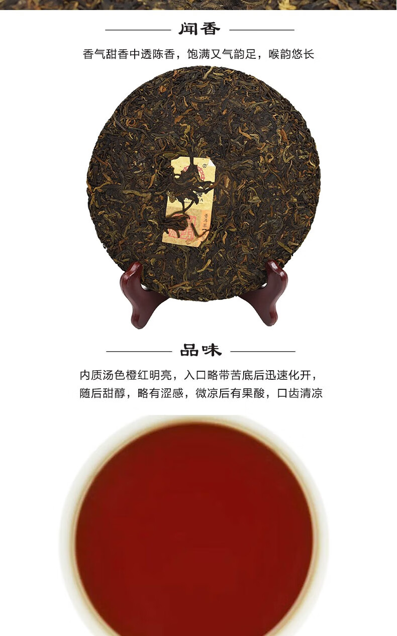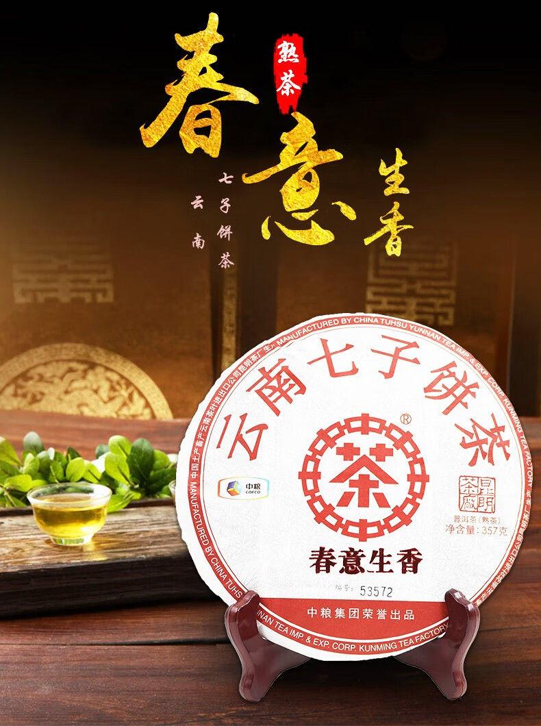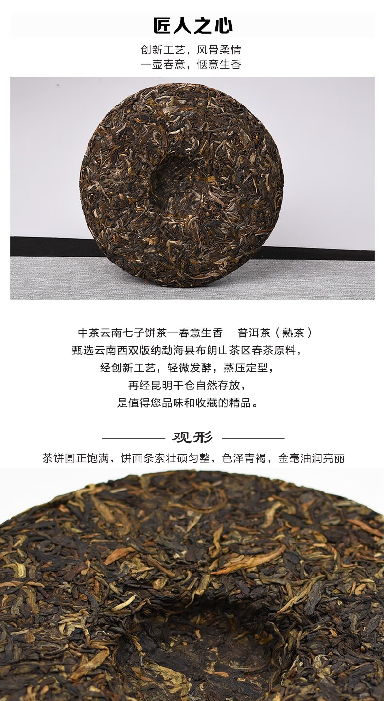 中粮-中茶普洱茶2018年勐海布朗春意生香轻发酵普洱茶熟普云南七子饼357g/云南干仓直发