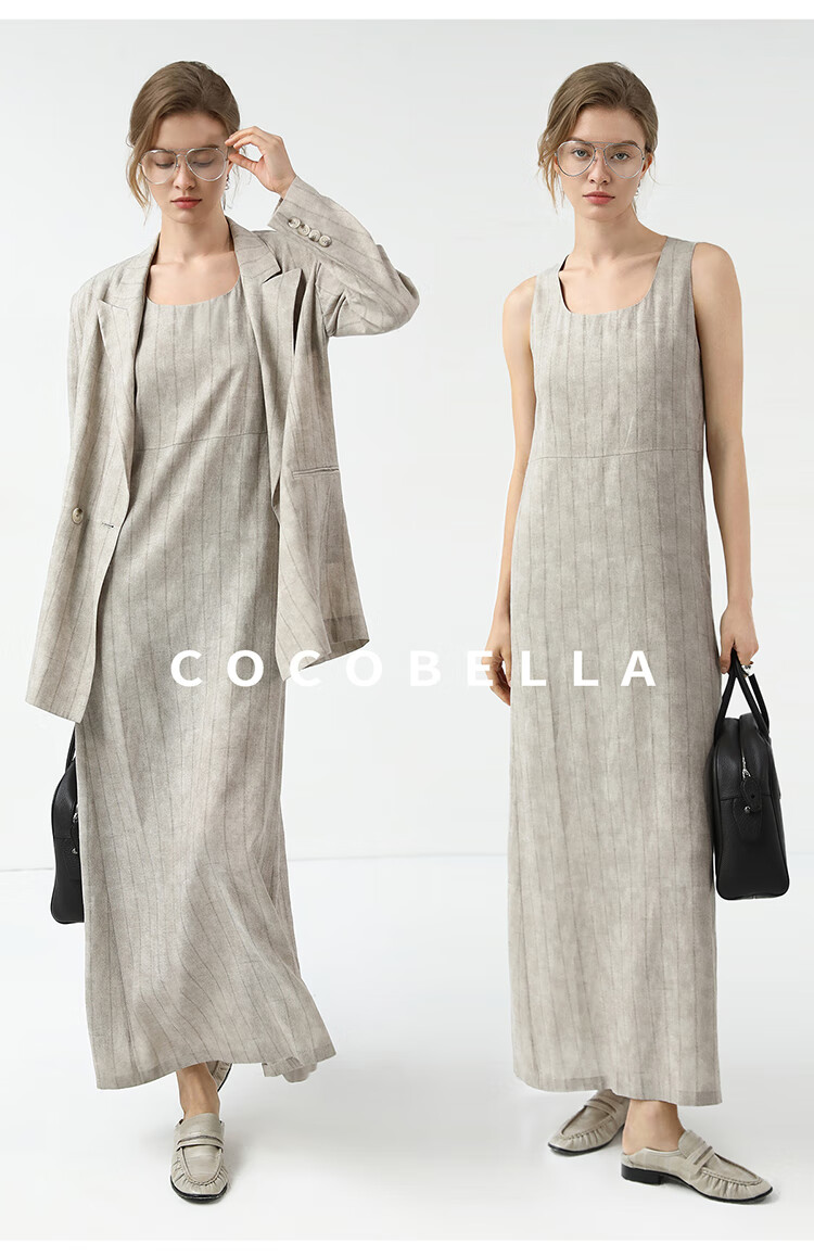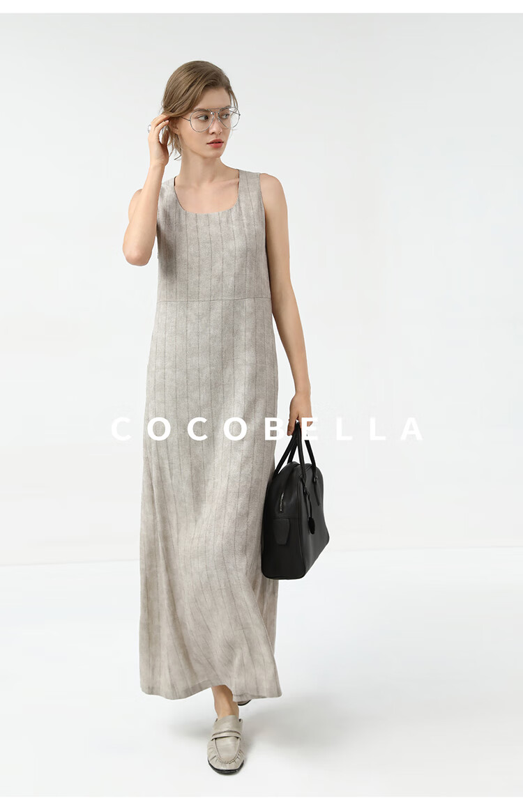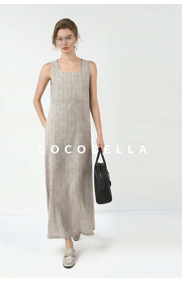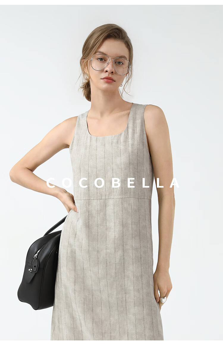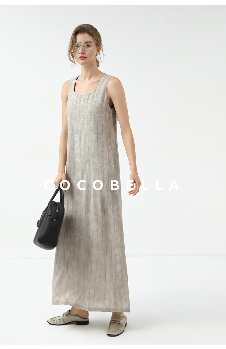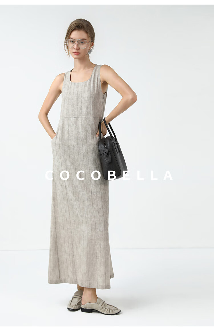 COCOBELLA设计感后开叉暗纹条纹连衣裙25春内搭背心裙FR3071
