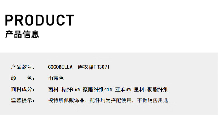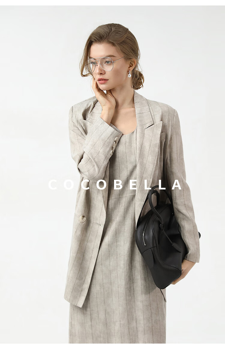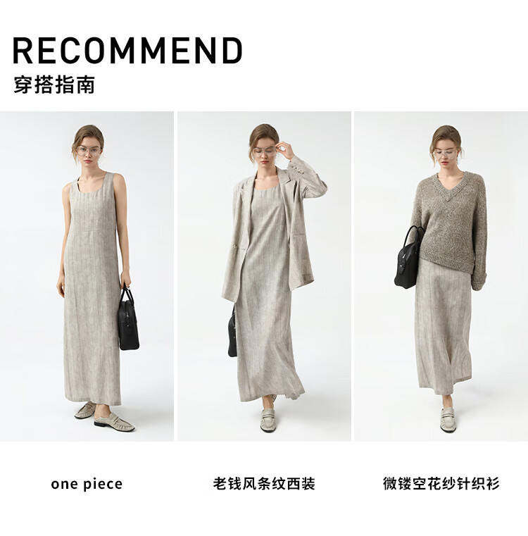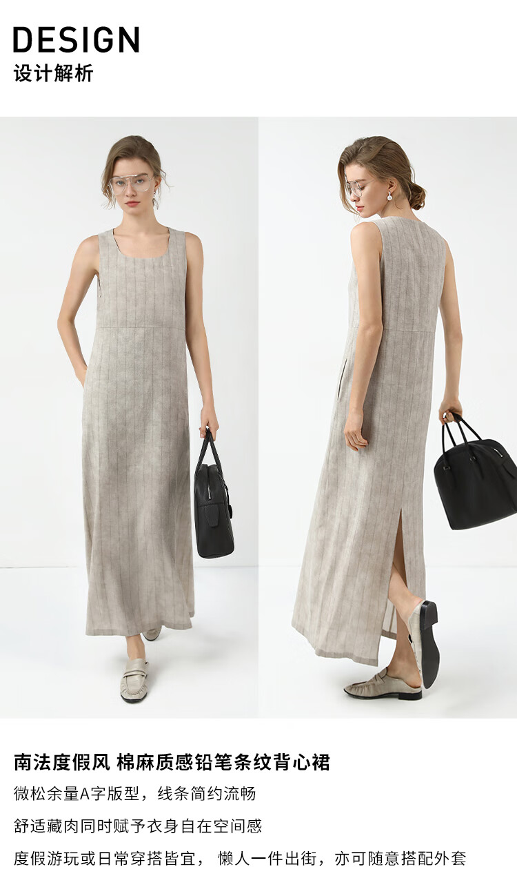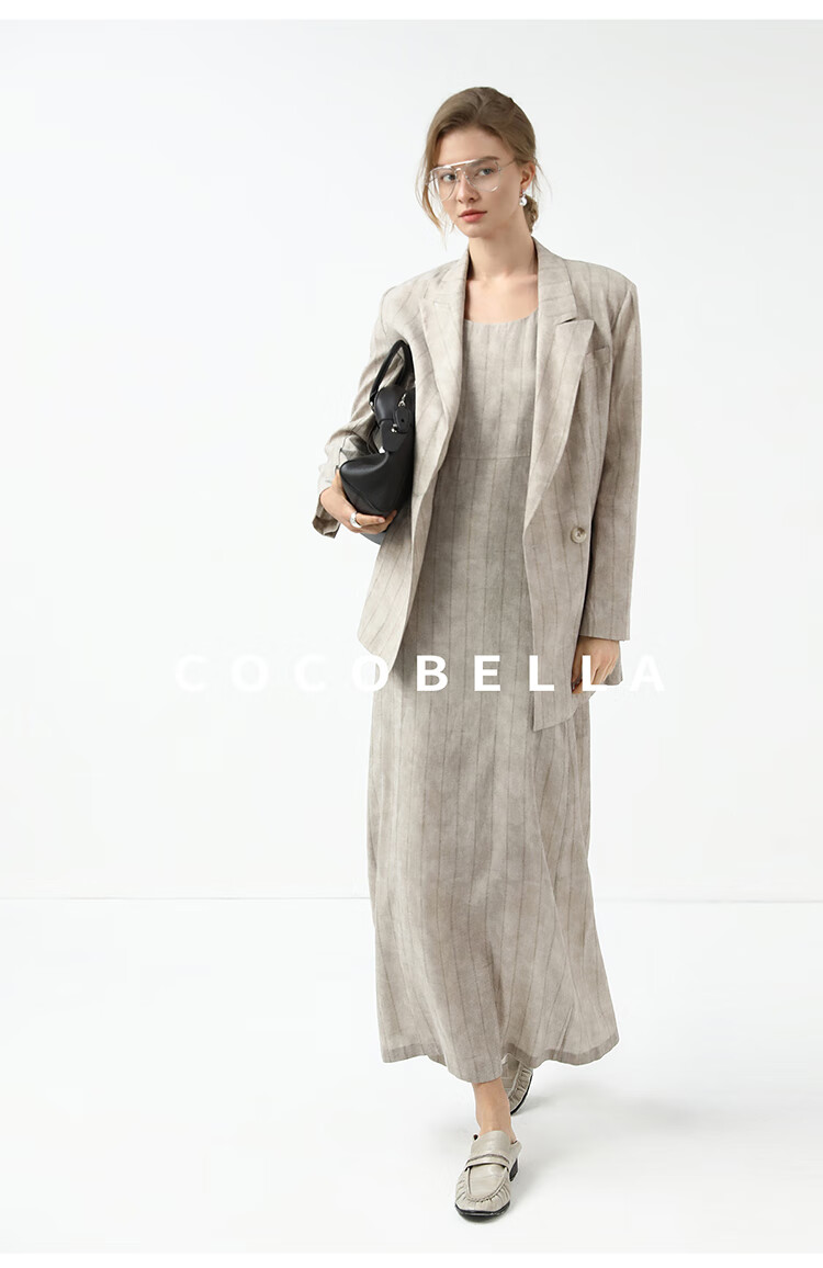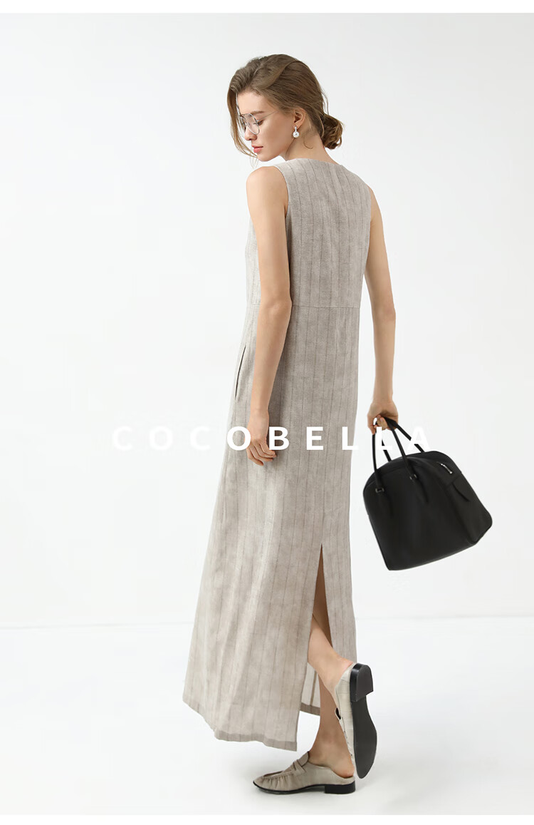 COCOBELLA设计感后开叉暗纹条纹连衣裙25春内搭背心裙FR3071