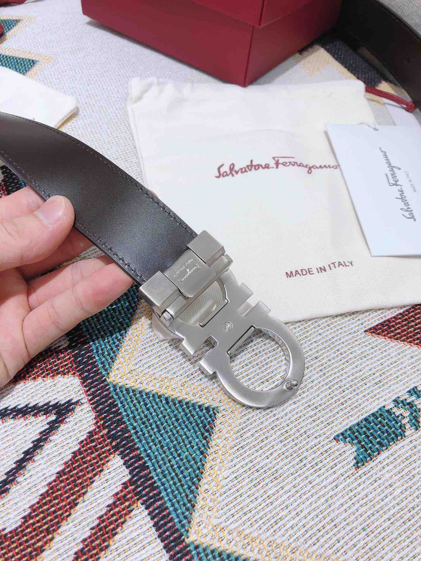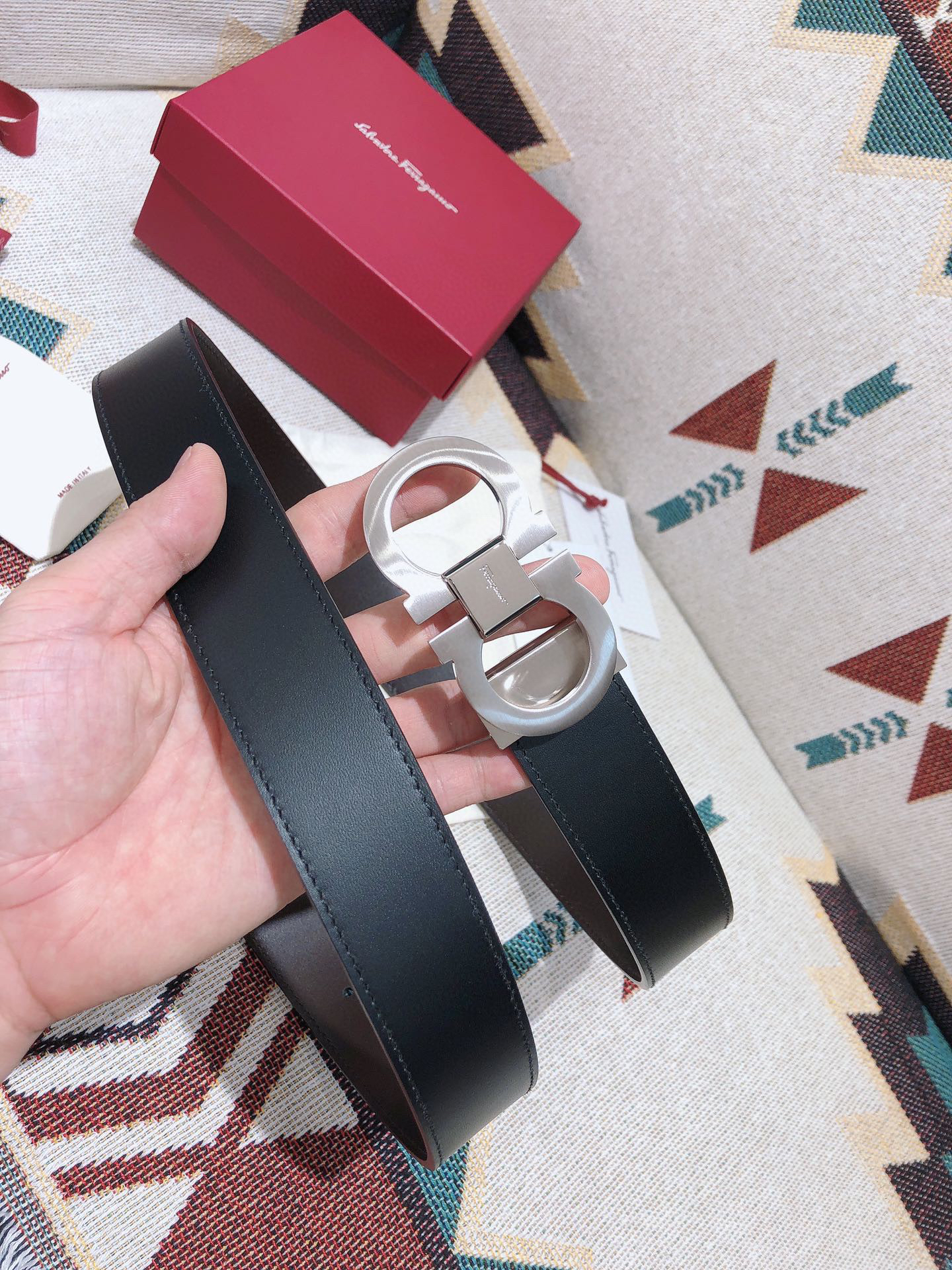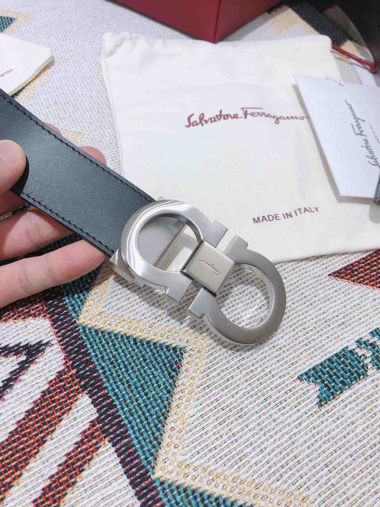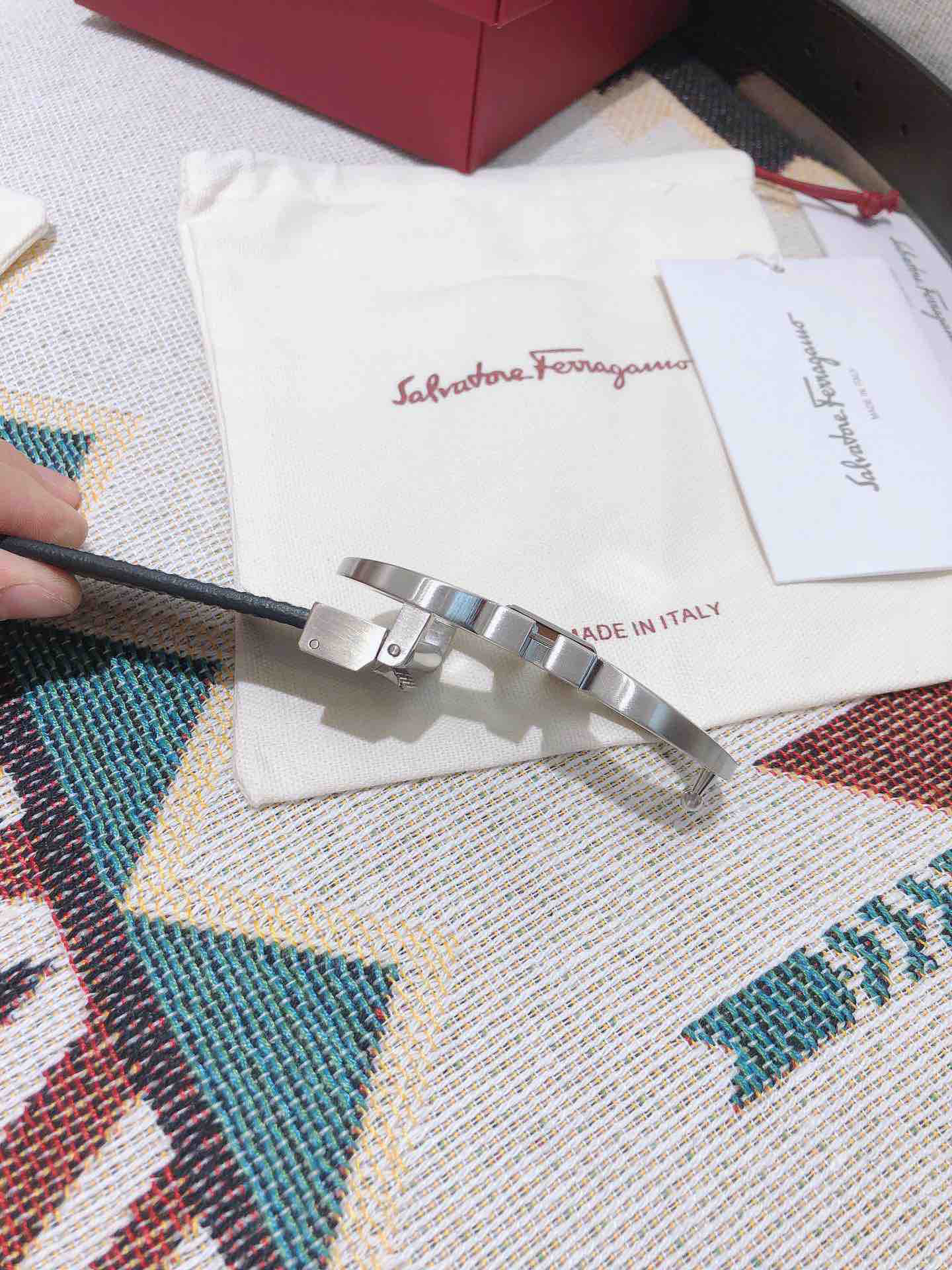 SF菲拉格慕-银色窄扣-平纹牛皮