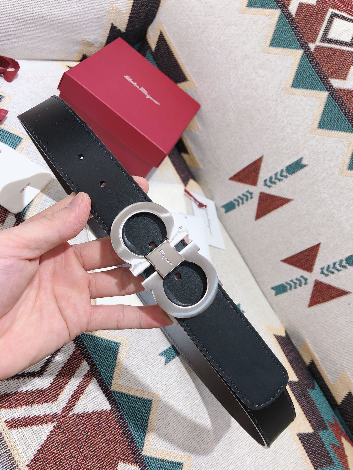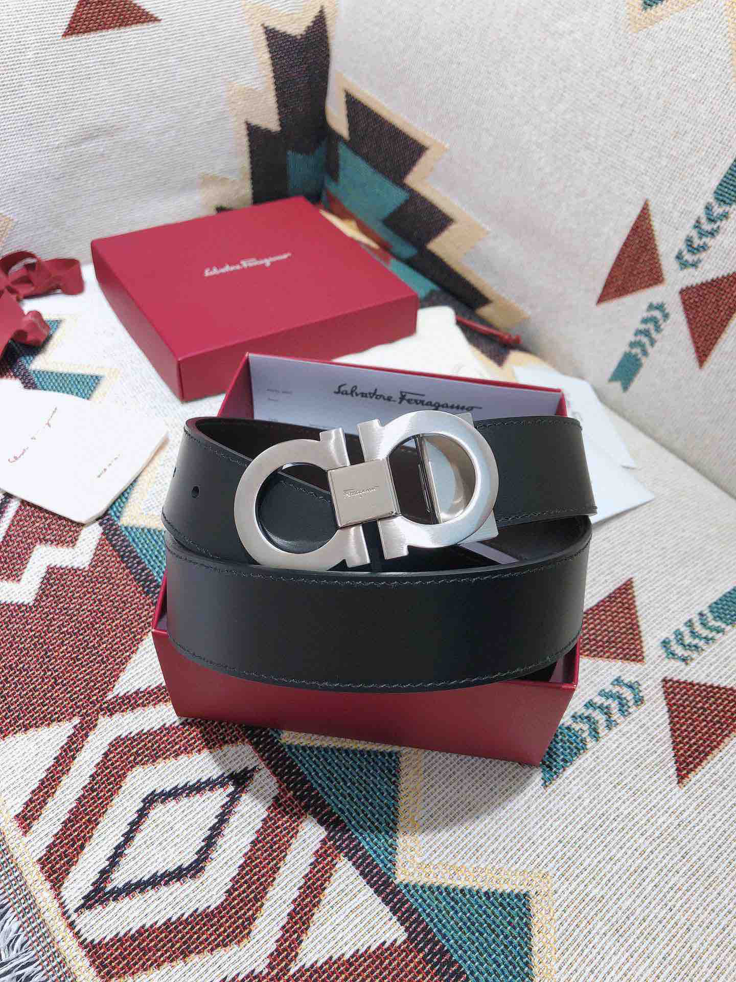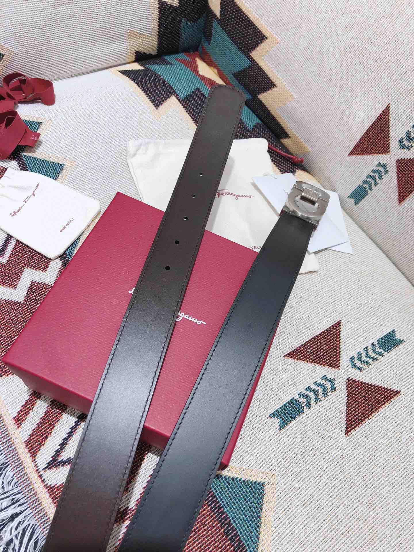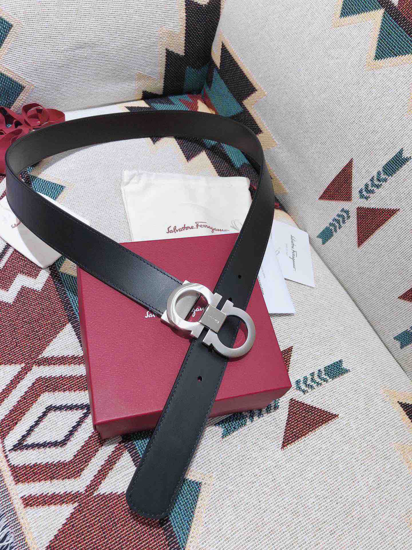 SF菲拉格慕-银色窄扣-平纹牛皮