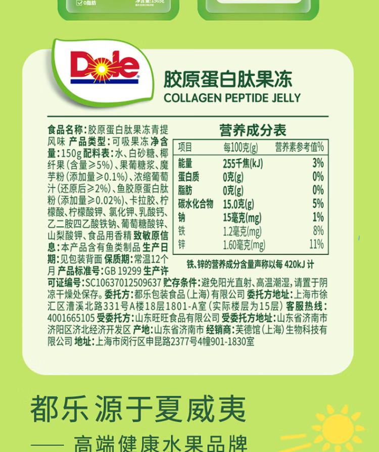 都乐胶原蛋白肽果冻青提风味150g*8袋