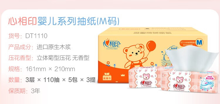 心相印婴用型110抽15包装三层塑装纸面巾(电商)