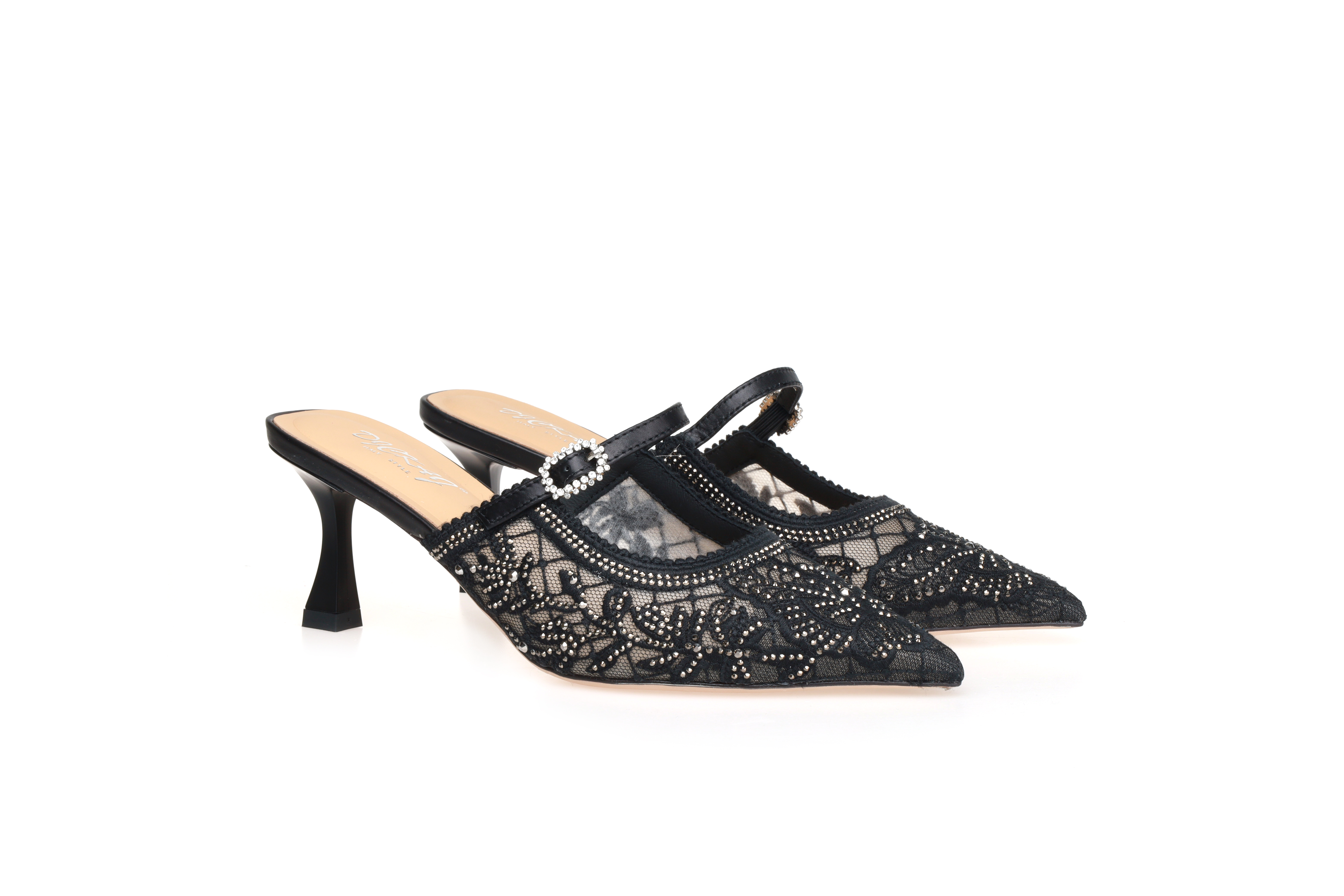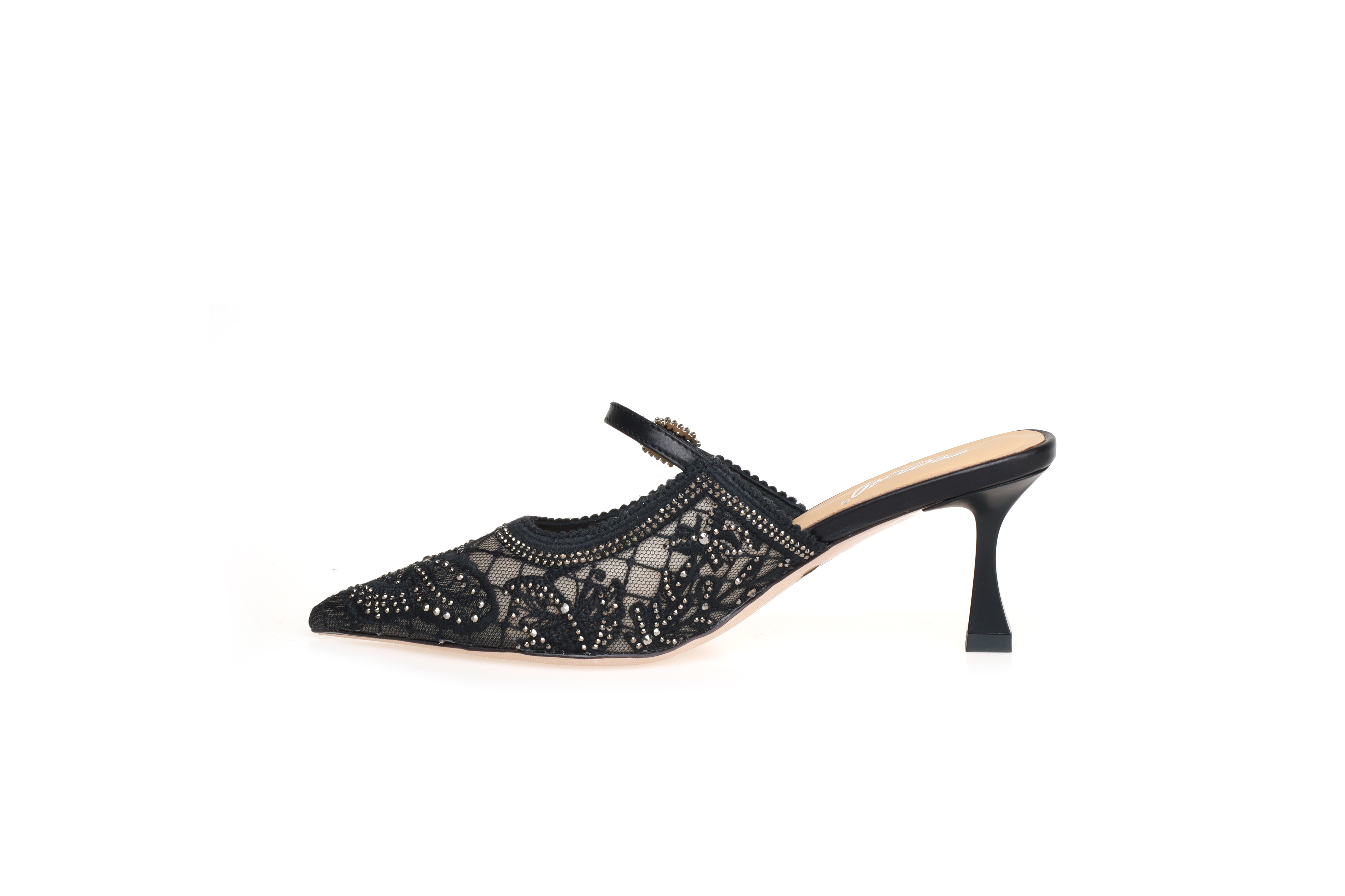豪麟名鞋奥莱迪嘉女鞋穆勒鞋织物+牛皮革DJYYA51WB002黑色 原价1660元