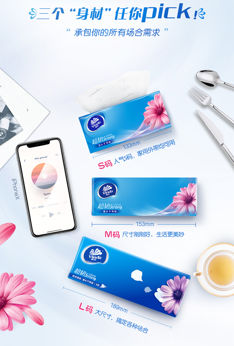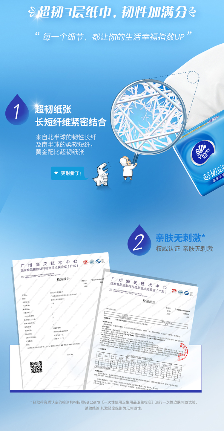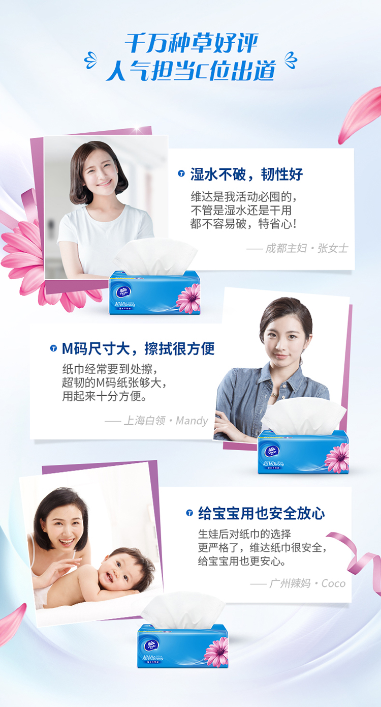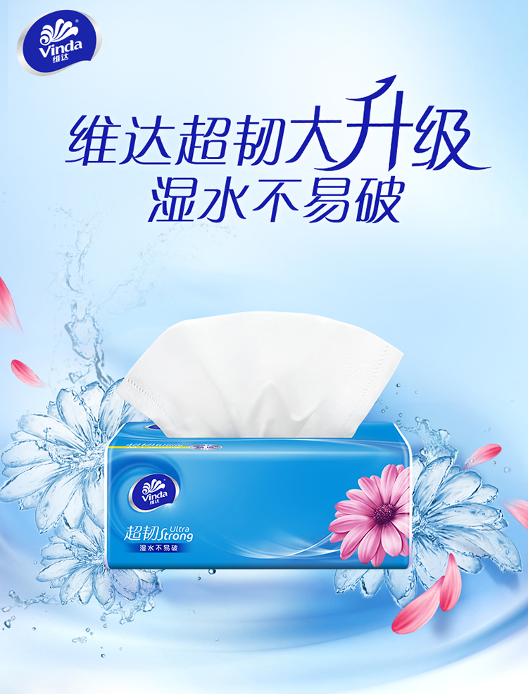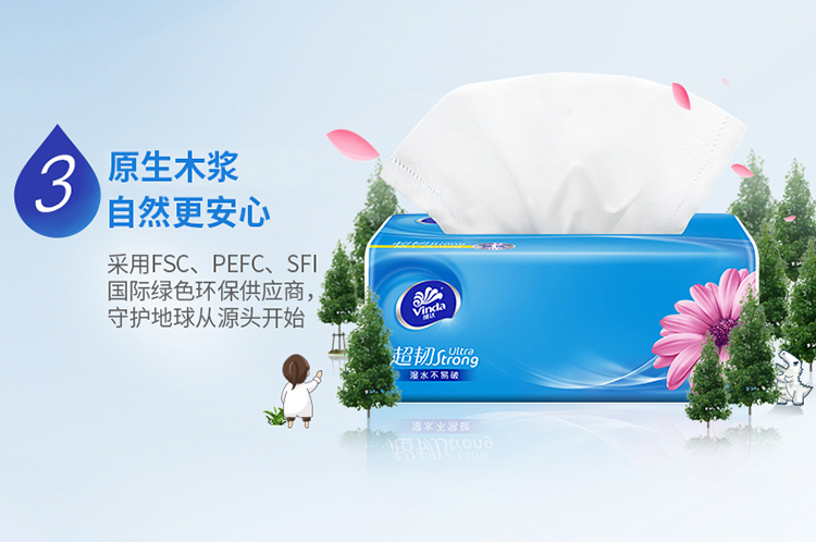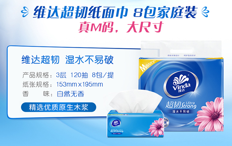 维达(Vinda)丨超韧抽纸巾自然无香 M码3层120抽*8包