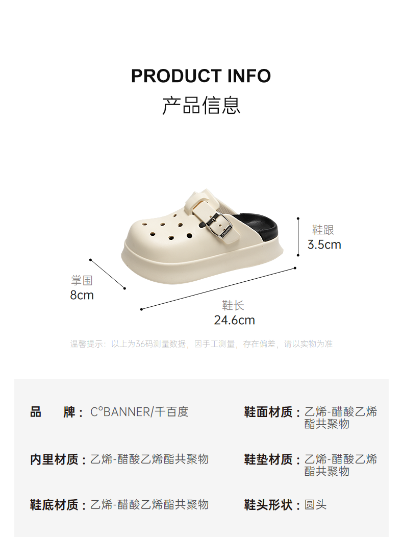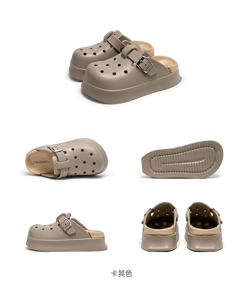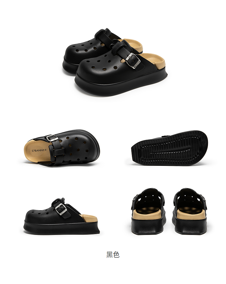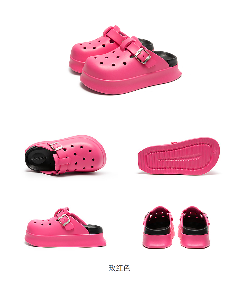千百度镂空厚底洞洞鞋女款2025夏季新款半拖两穿休闲沙滩凉拖鞋Z25010472