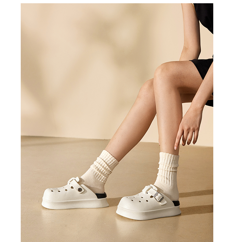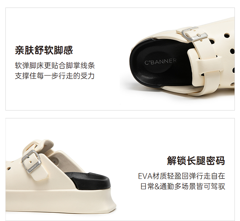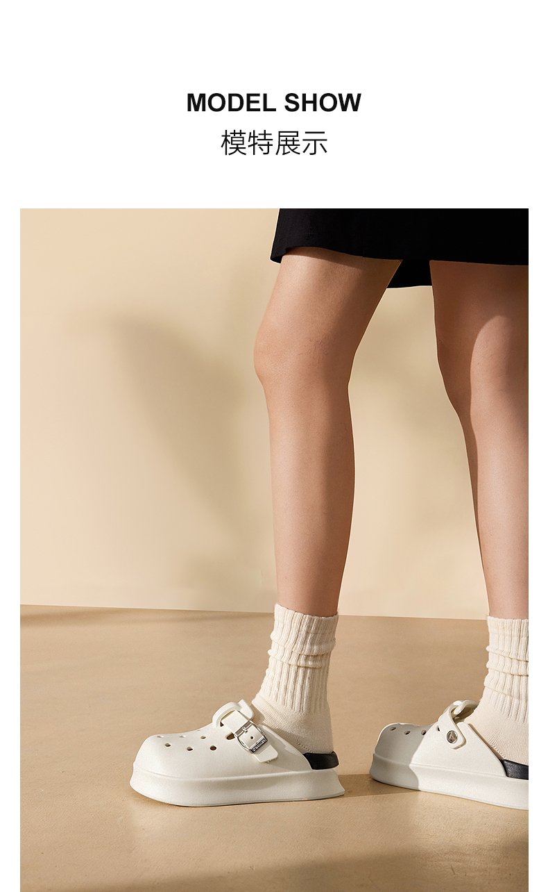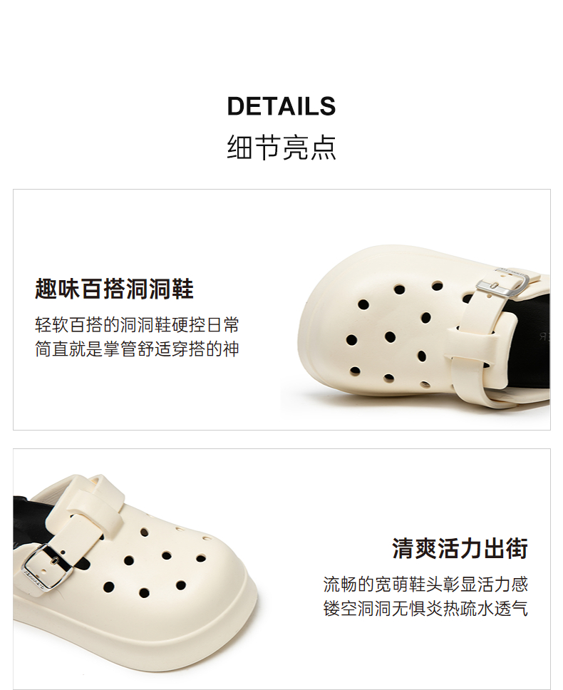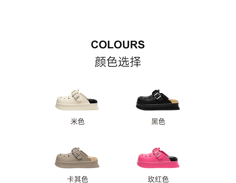 千百度镂空厚底洞洞鞋女款2025夏季新款半拖两穿休闲沙滩凉拖鞋Z25010472