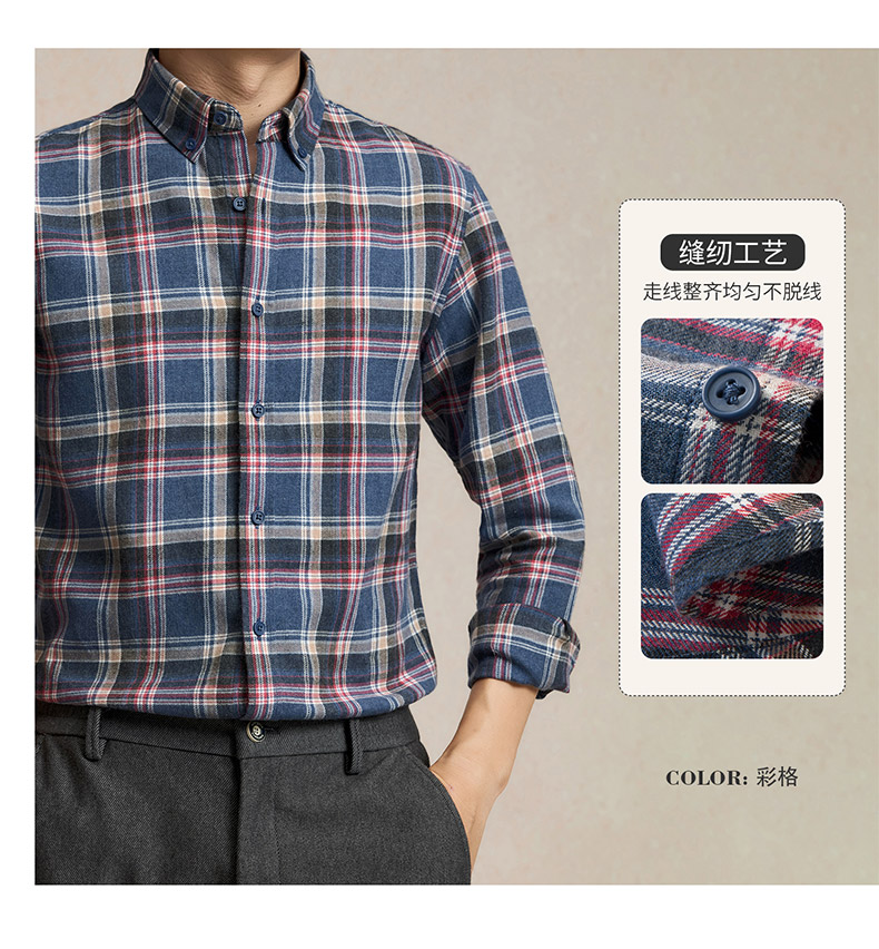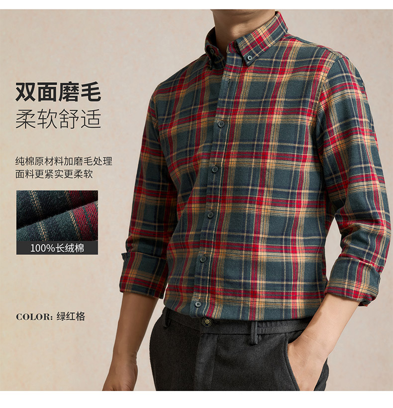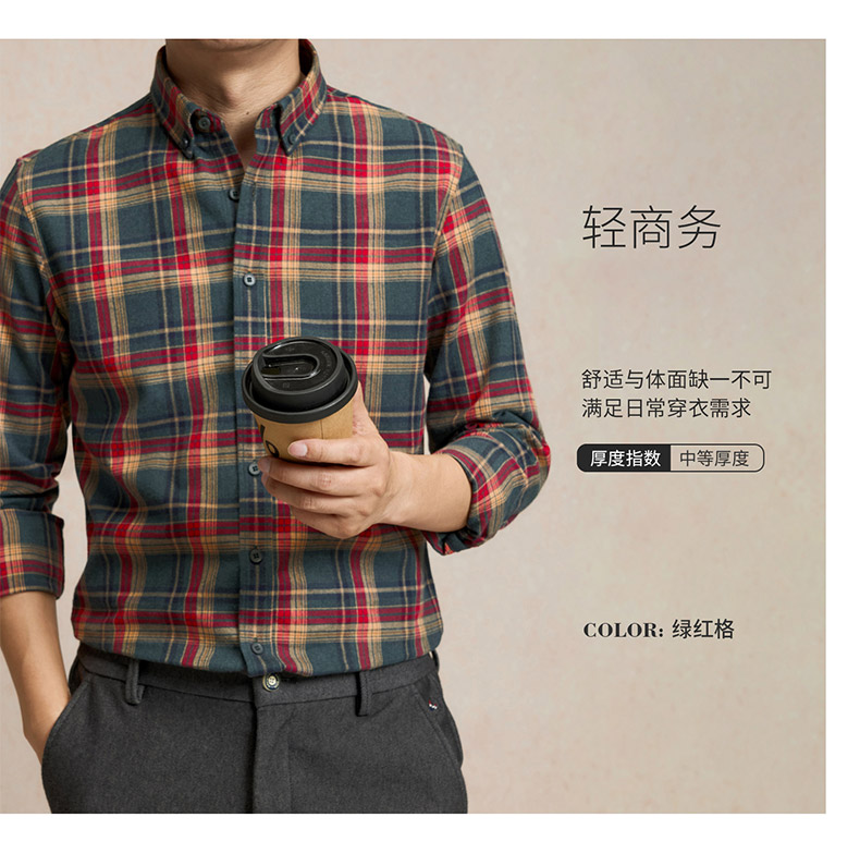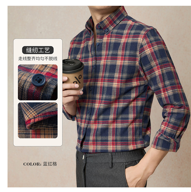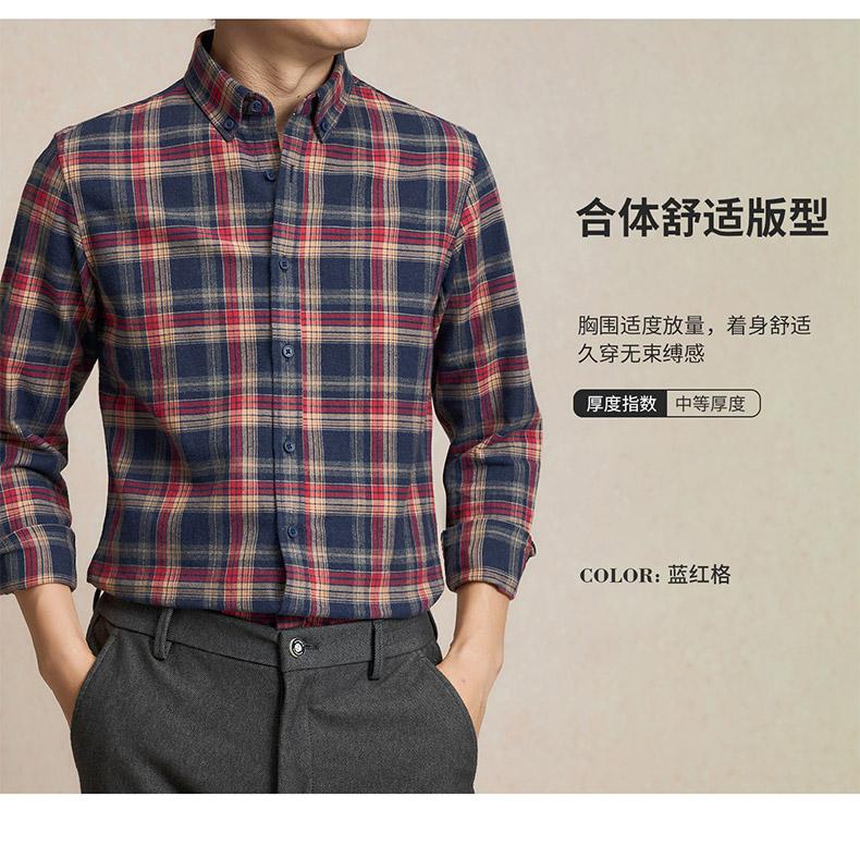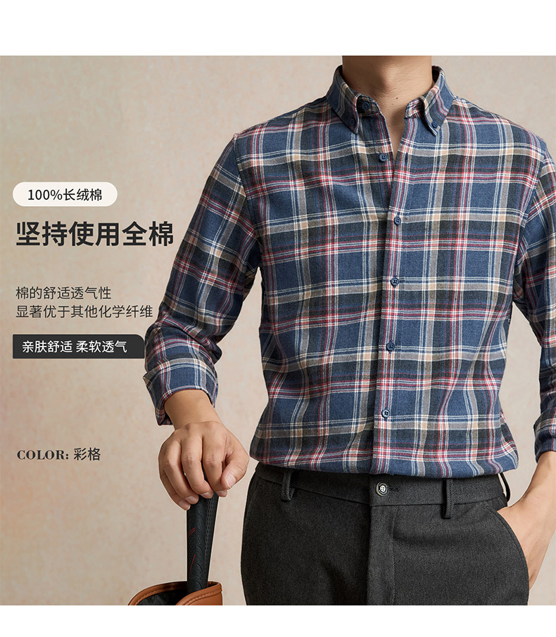 【全棉】罗蒙秋冬格子长袖衬衫男士加厚柔软亲肤职业装通勤百搭男士长袖衬衣