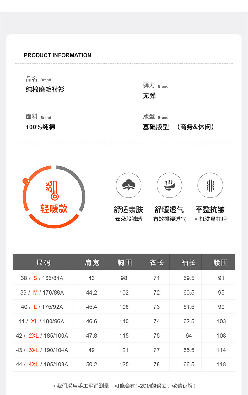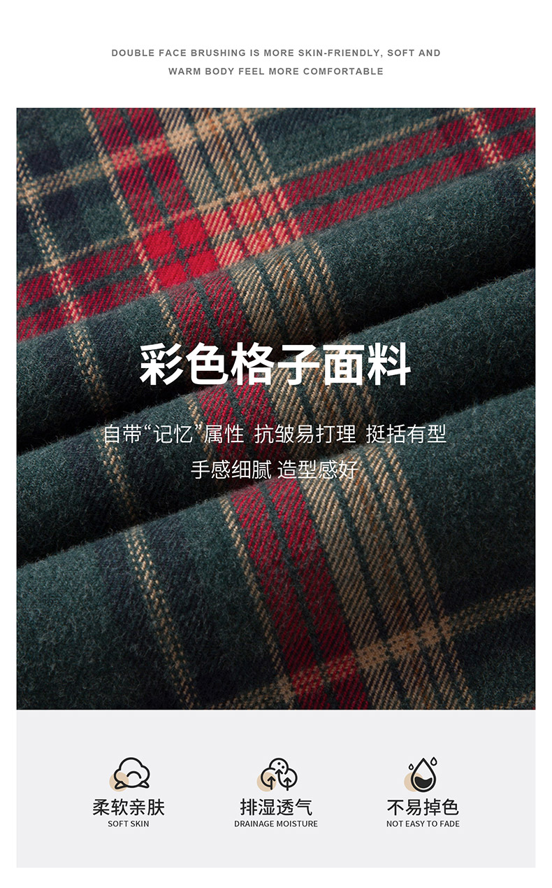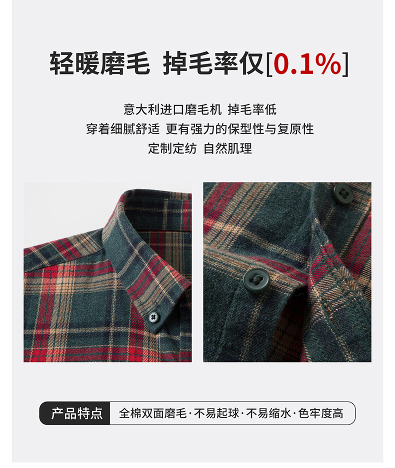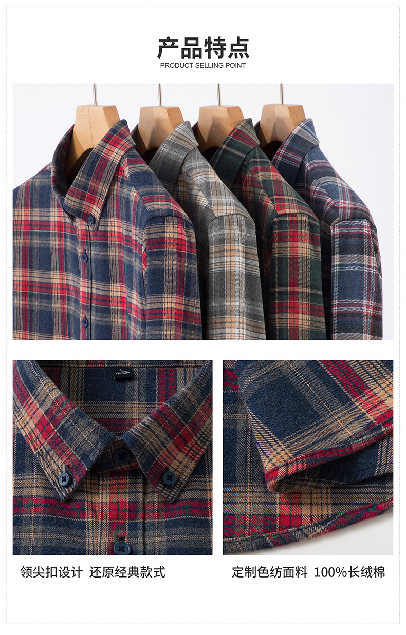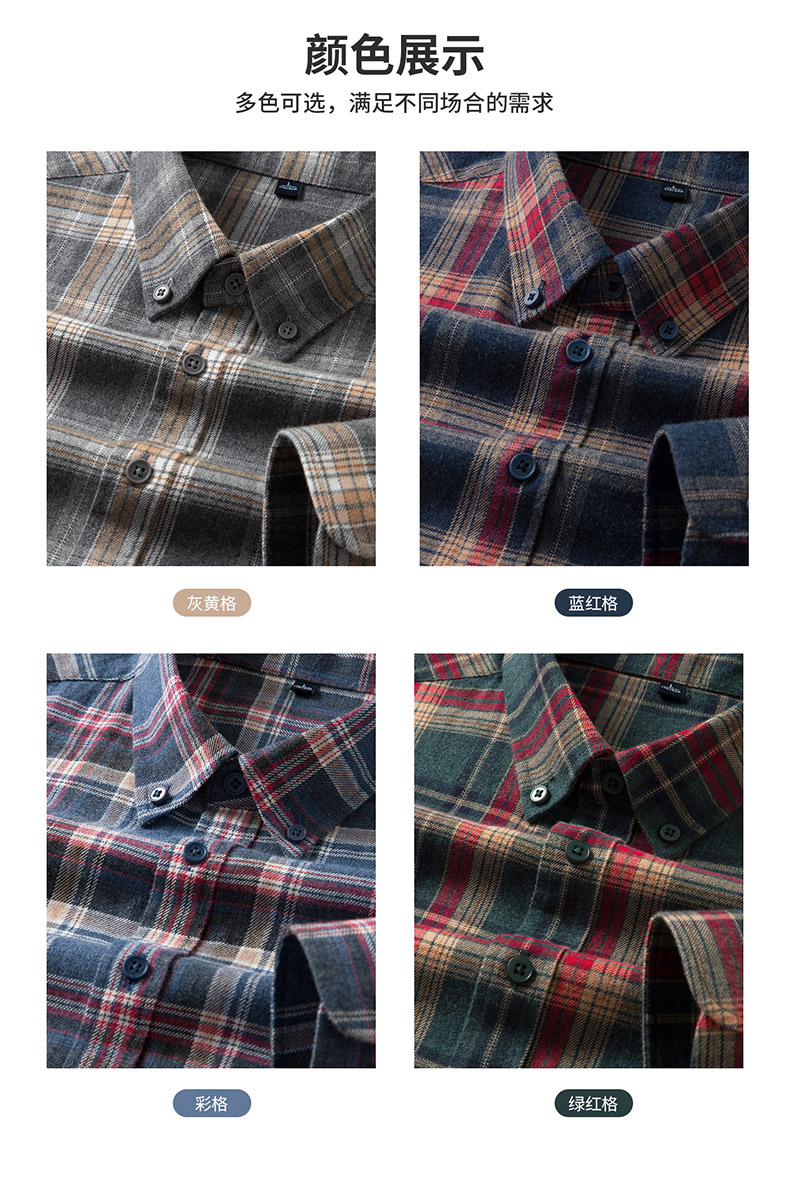 【全棉】罗蒙秋冬格子长袖衬衫男士加厚柔软亲肤职业装通勤百搭男士长袖衬衣