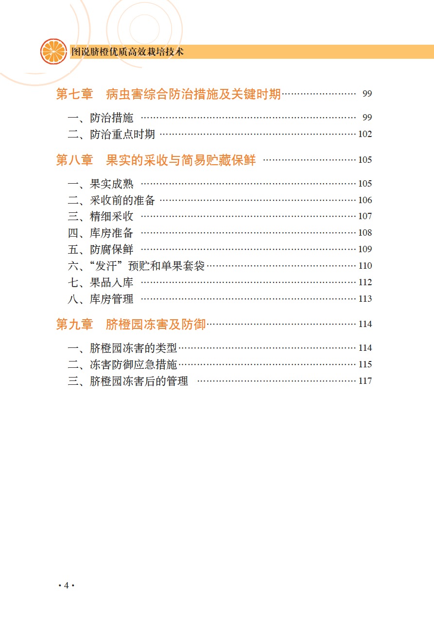 本书从脐橙优新品种、无病毒苗木繁育、标准化建园、科学种植、花果管理、病虫害绿色防控、采后处理与保鲜方面进行系统介绍,内容丰富,技术新颖成熟,实用性强,符合当前产业提质增效的要求,适合农技推广人员、果农和果业管理人员参考使用。