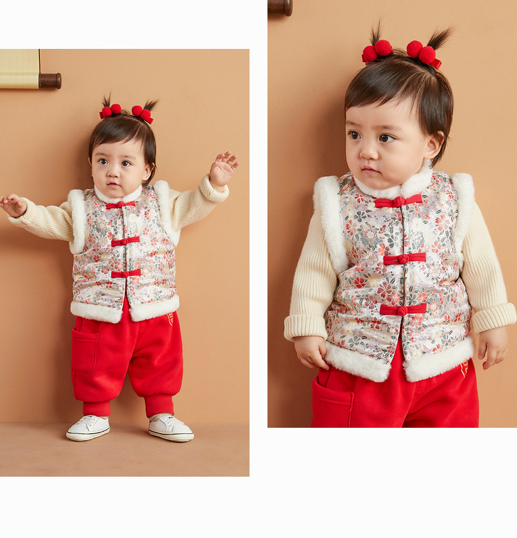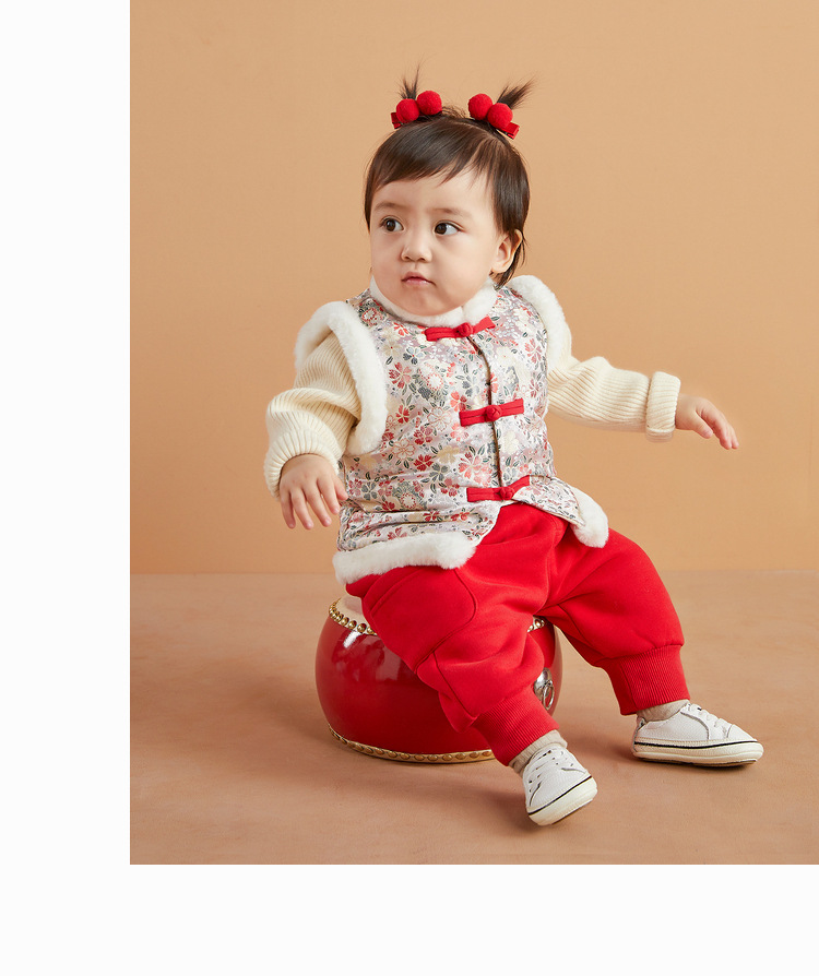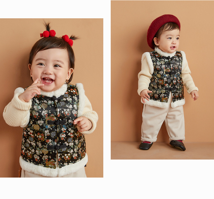 【满满心选推荐】年货提前屯【喜气潮宝唐装夹棉马甲】宝宝马甲秋冬夹棉唐装,男女儿童周岁加厚过年装婴儿拜年服保暖背心