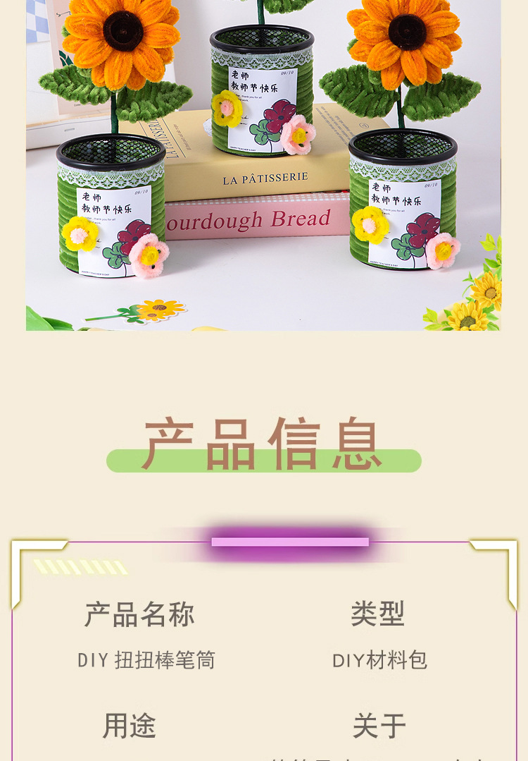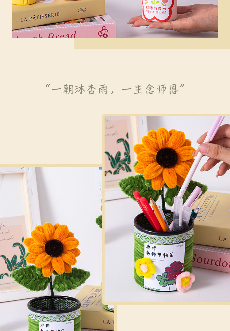 教师节礼物向日葵扭扭棒花束笔筒摆件手工diy材料送女老师小礼品