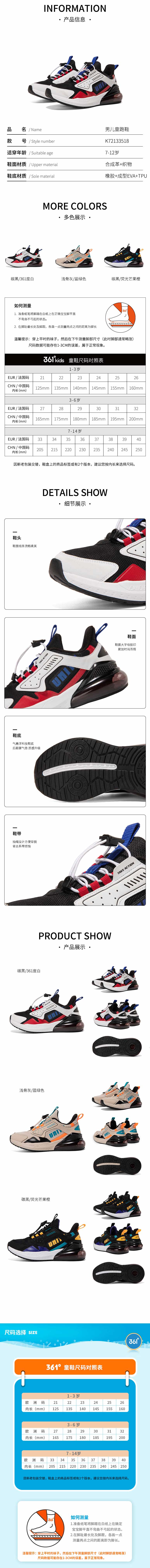小361男童透气运动鞋儿童气垫跑步鞋k72133518