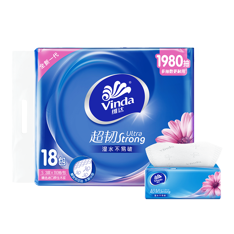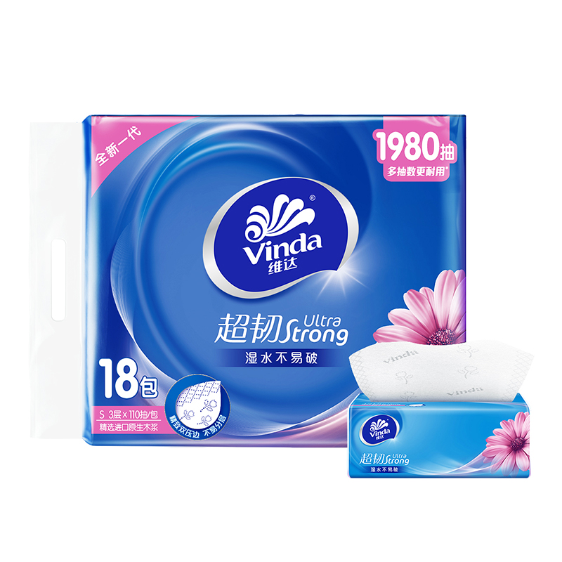 V2288A维达超韧抽取面巾3层S码110抽×18包/提【XPTX】