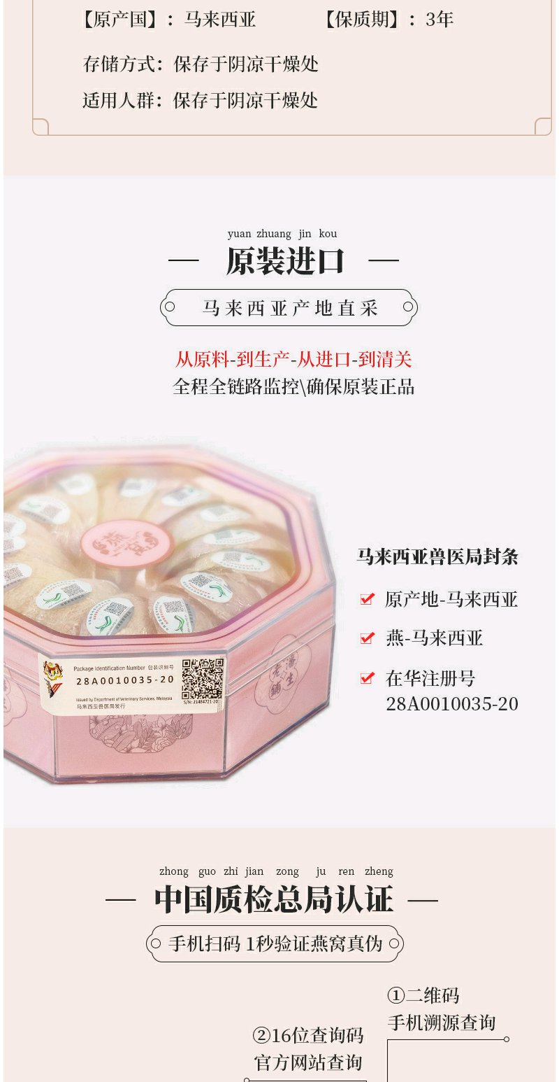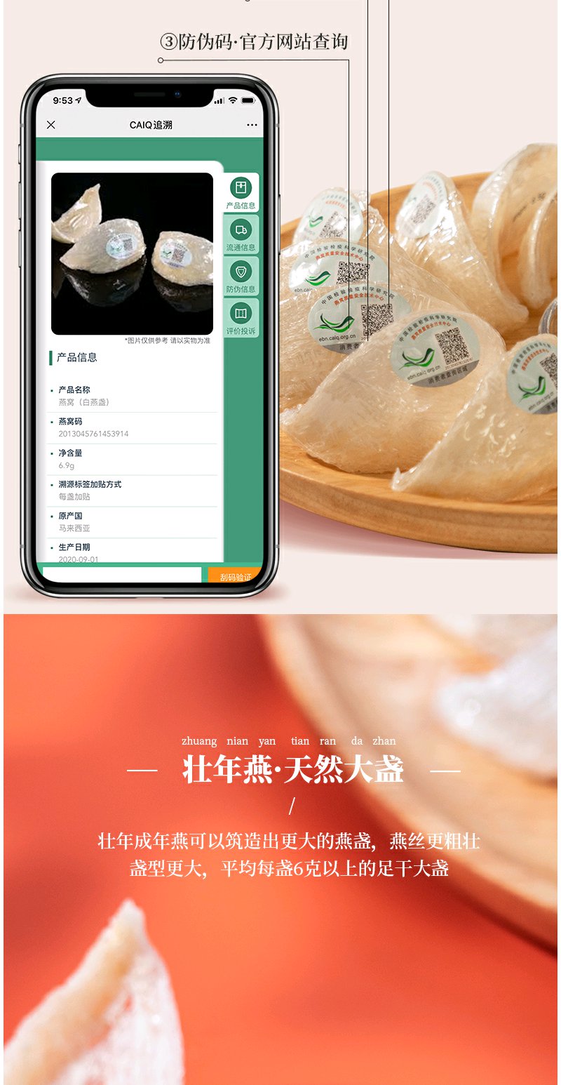 白燕窝燕盏干燕窝马拉西亚可溯源100克