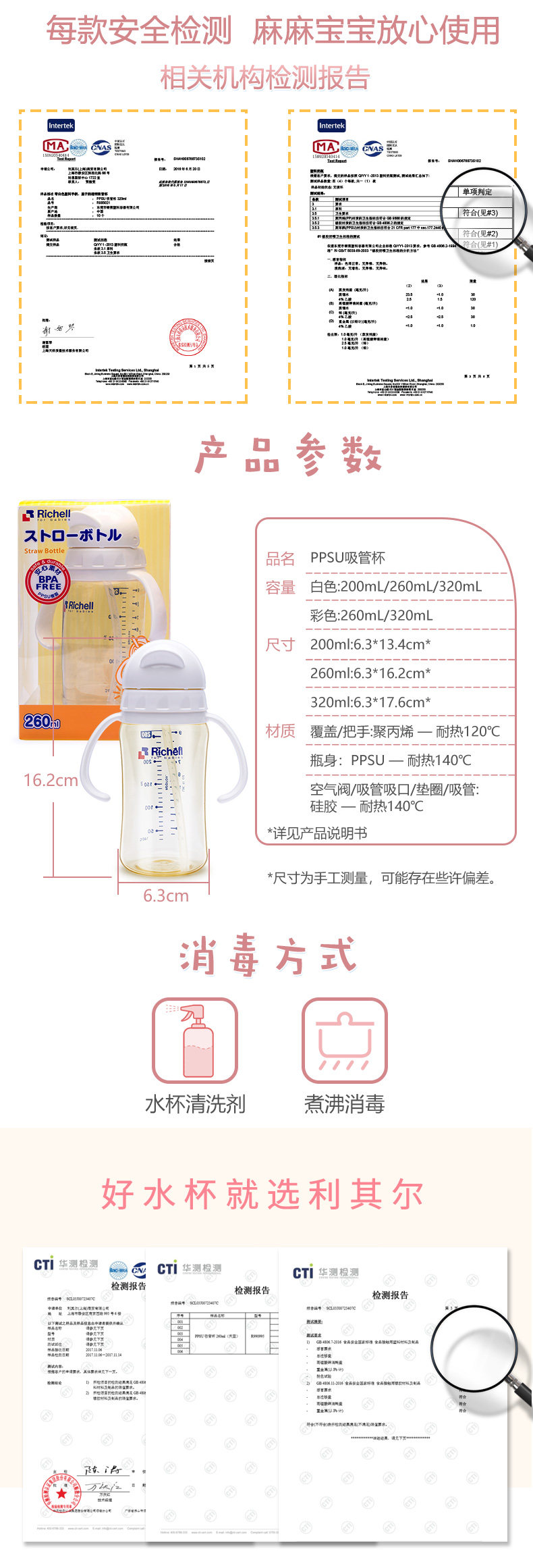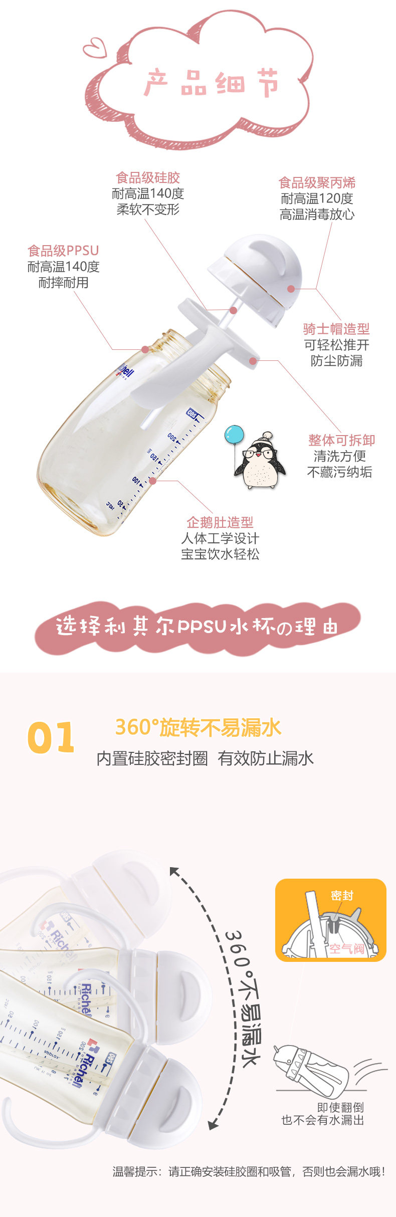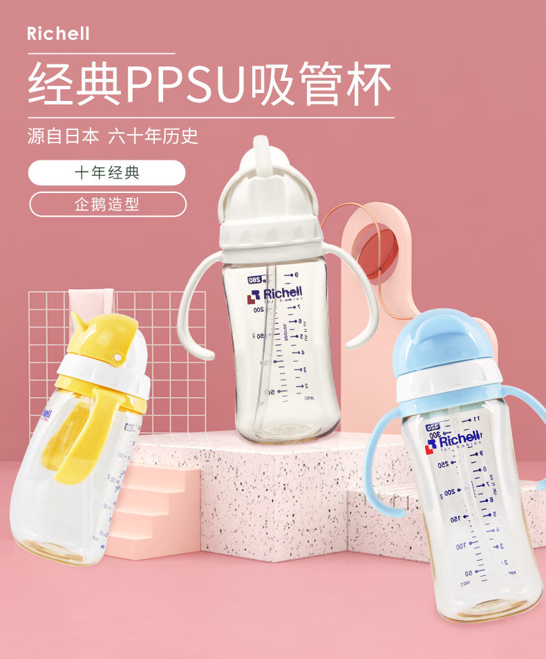 Richell利其尔ppsu儿童吸管杯防摔学饮杯宝宝水杯婴儿吸管奶瓶