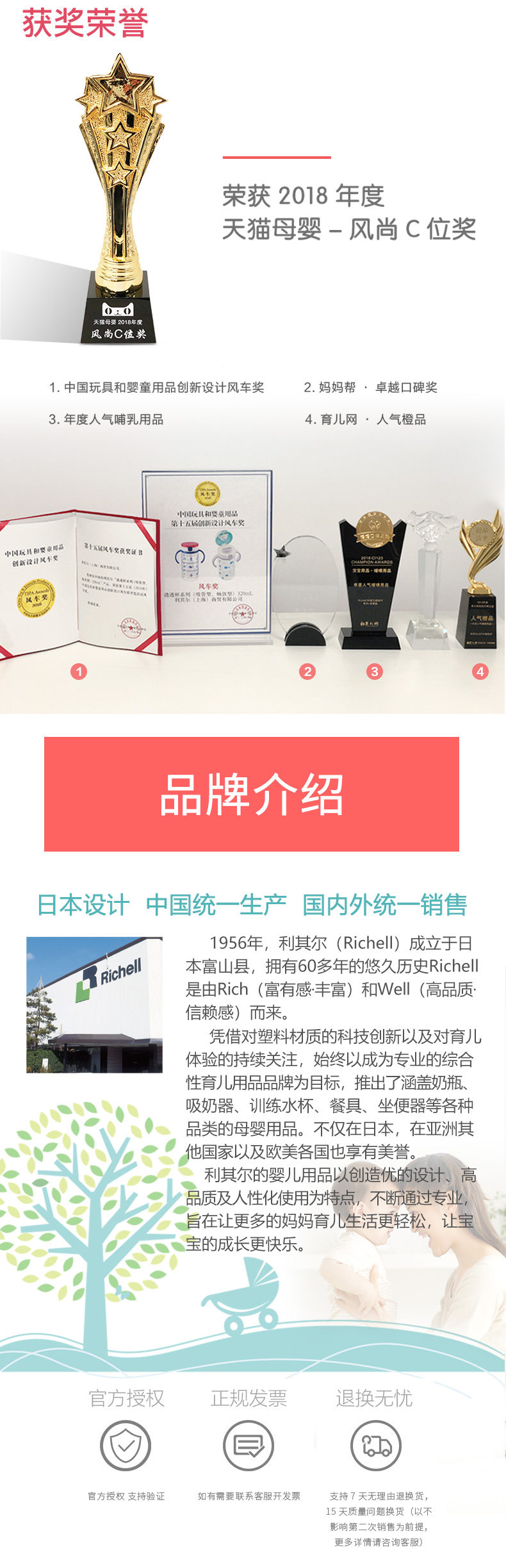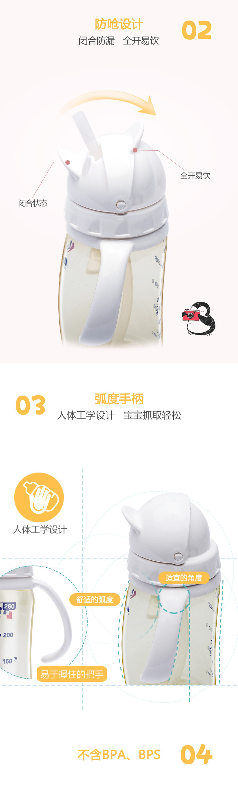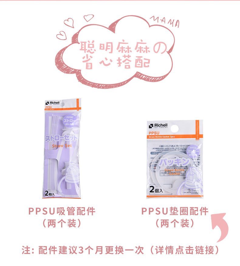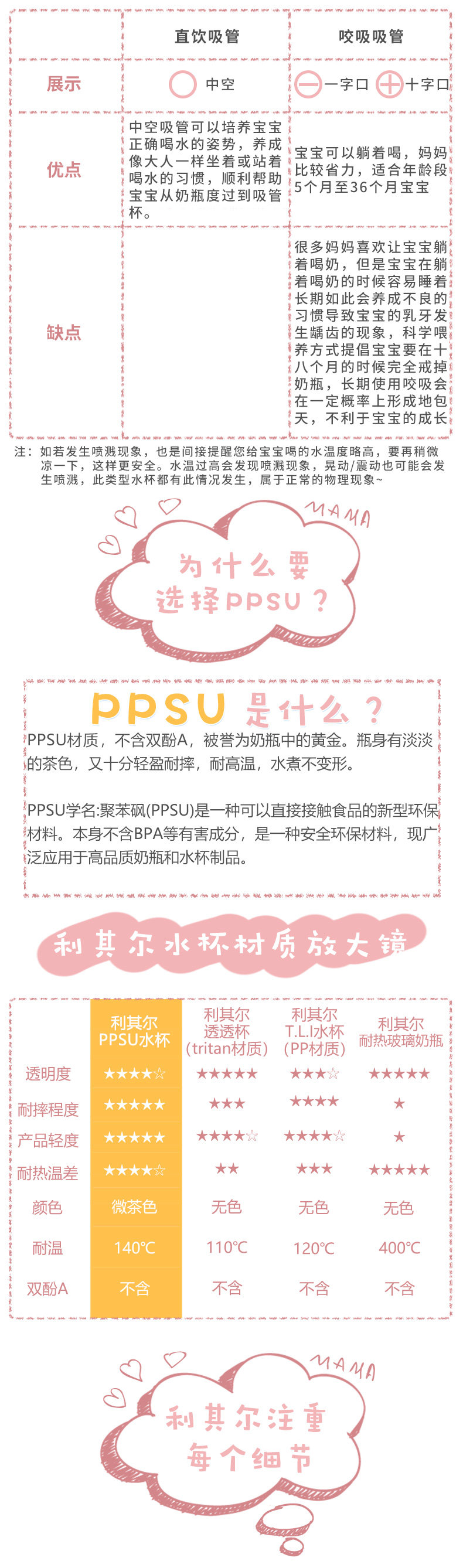 Richell利其尔ppsu儿童吸管杯防摔学饮杯宝宝水杯婴儿吸管奶瓶