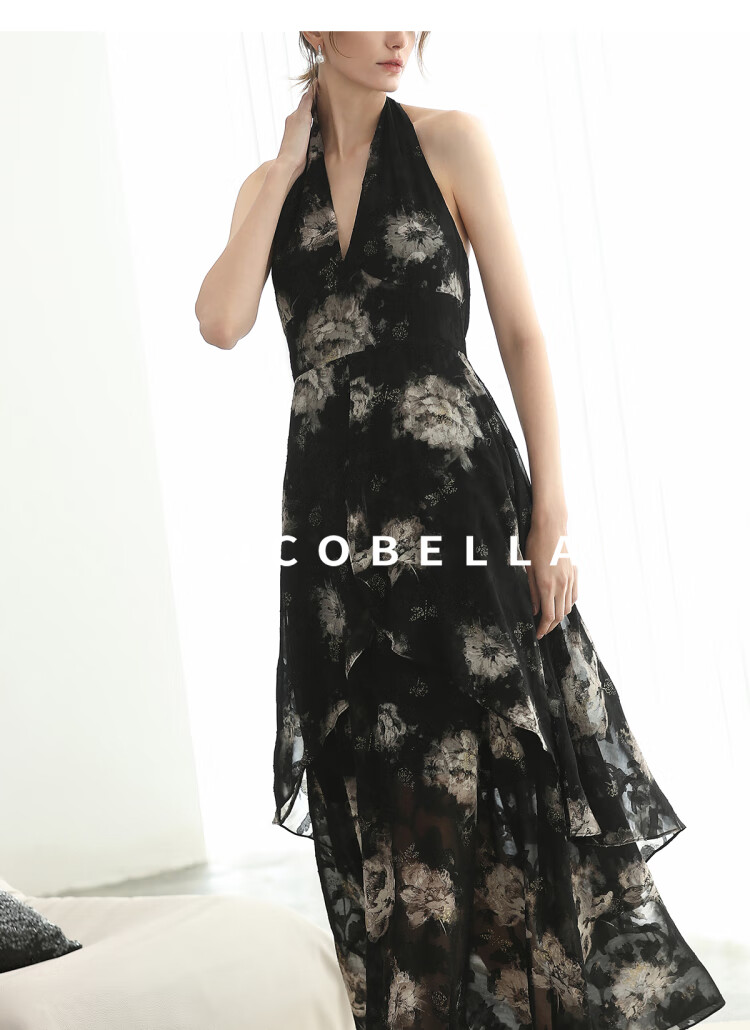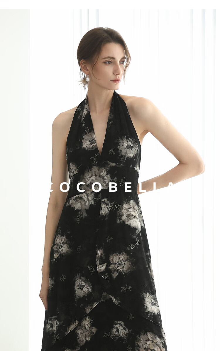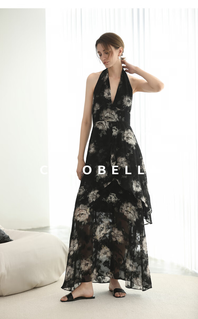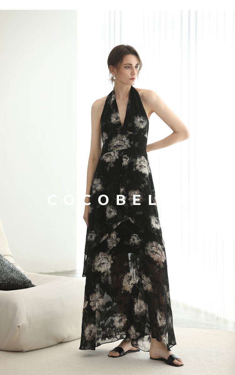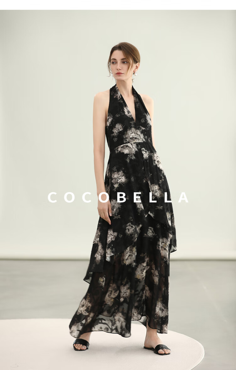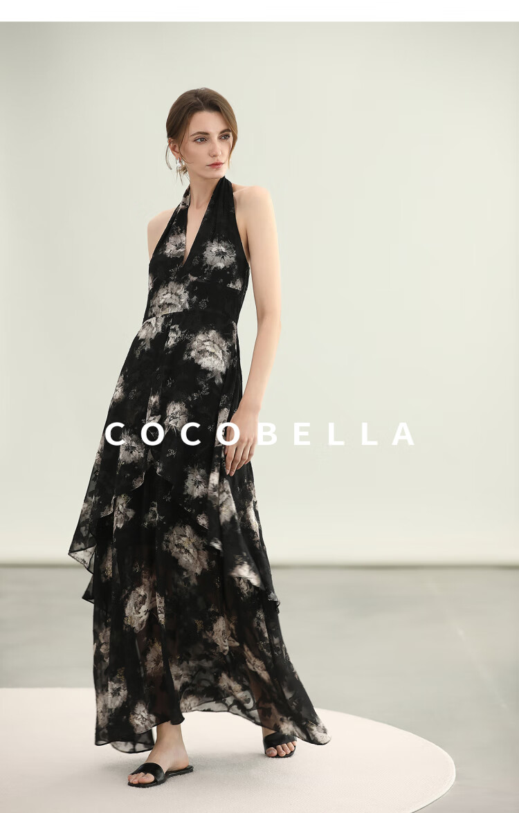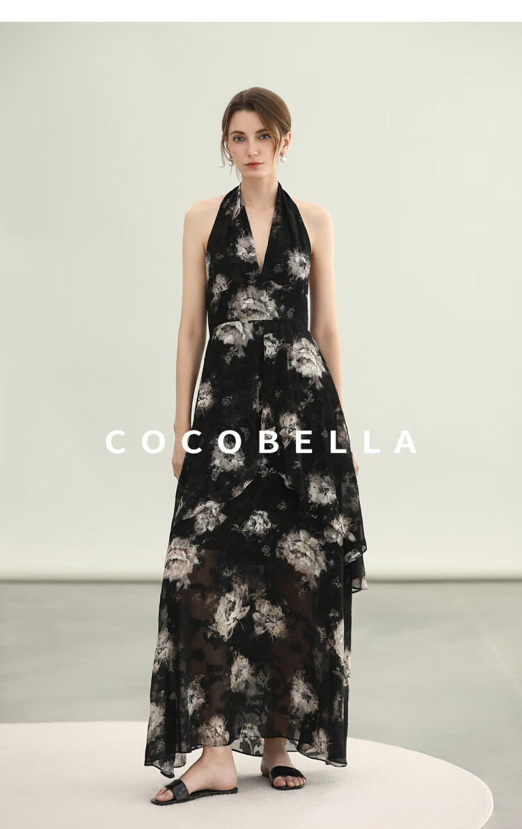 COCOBELLA重工提花金葱背心裙高知感度假风挂脖连衣裙FR3227