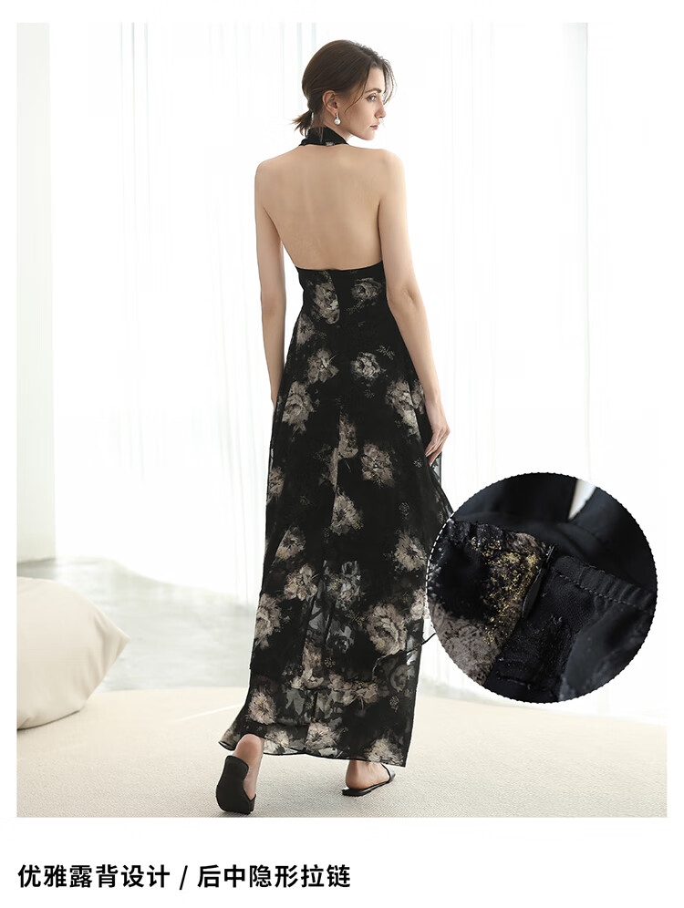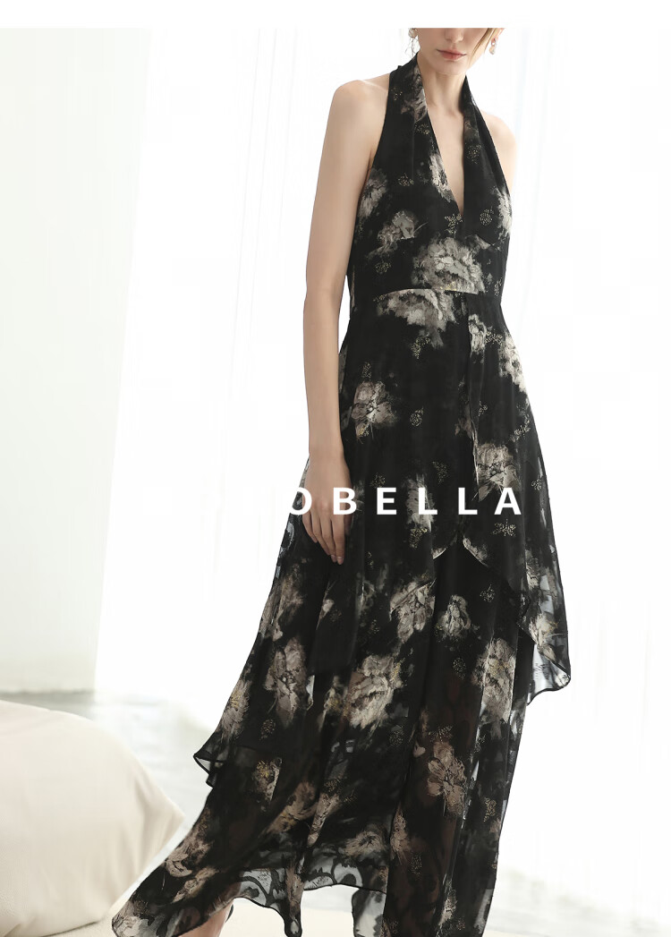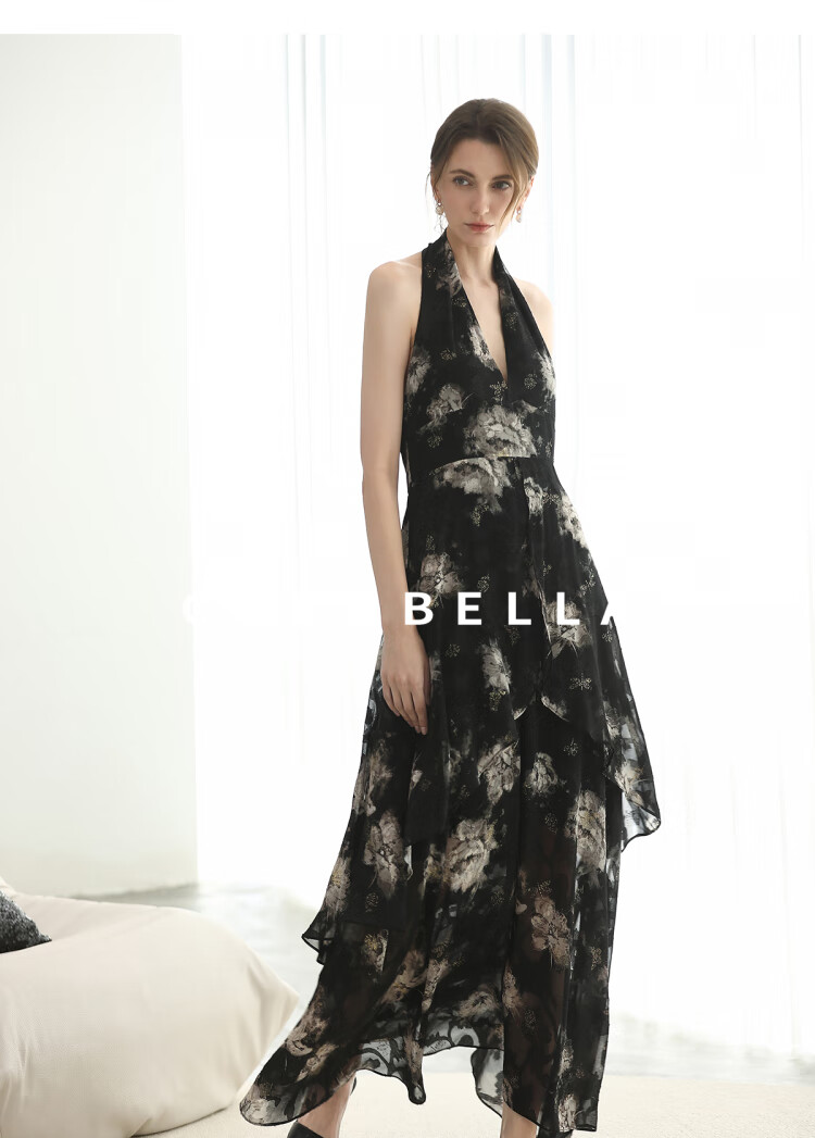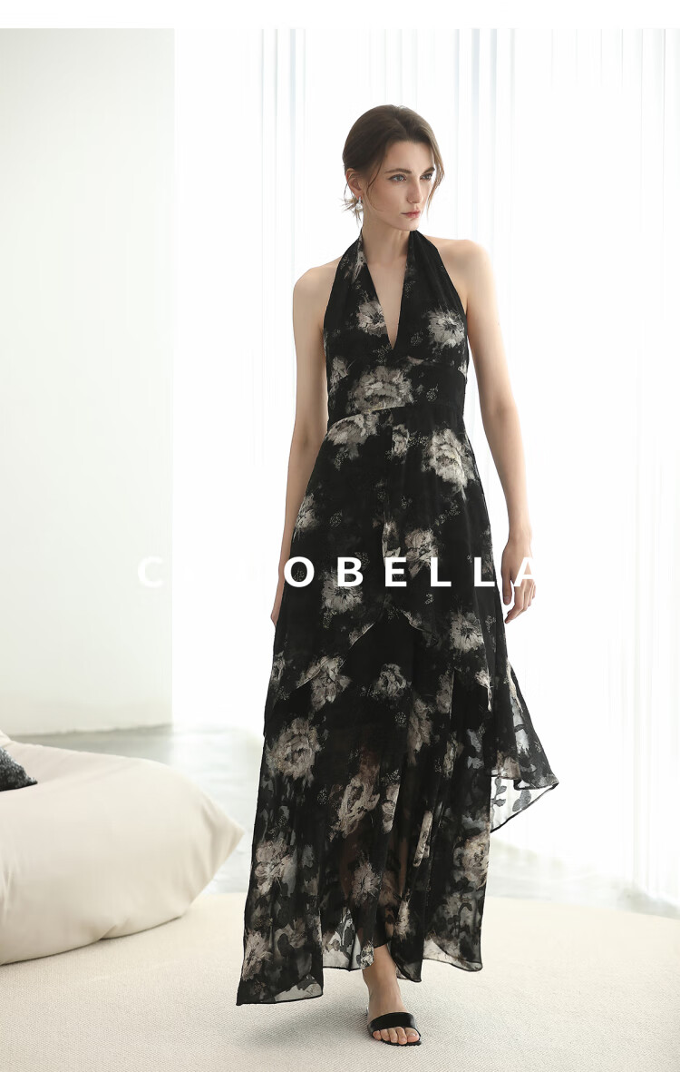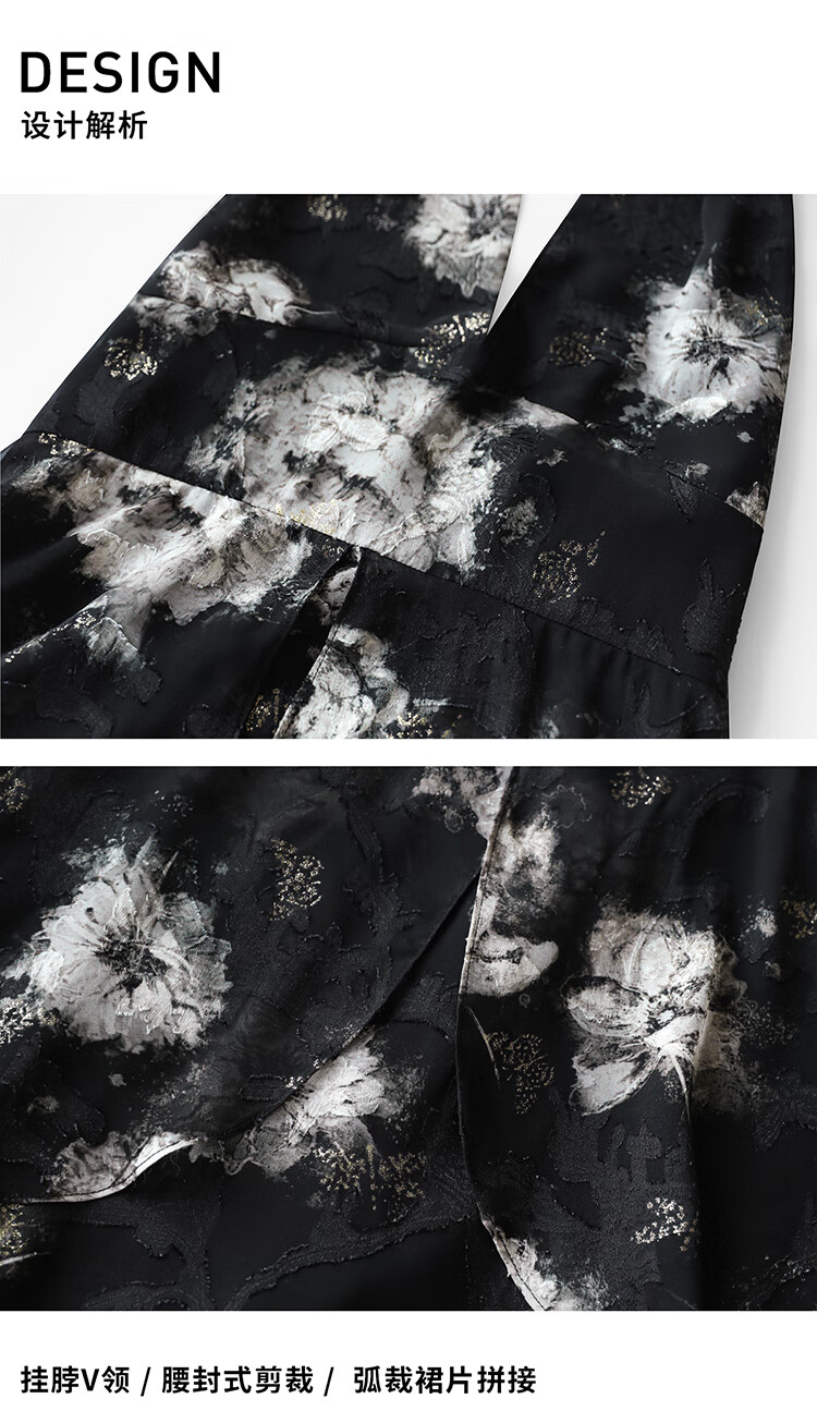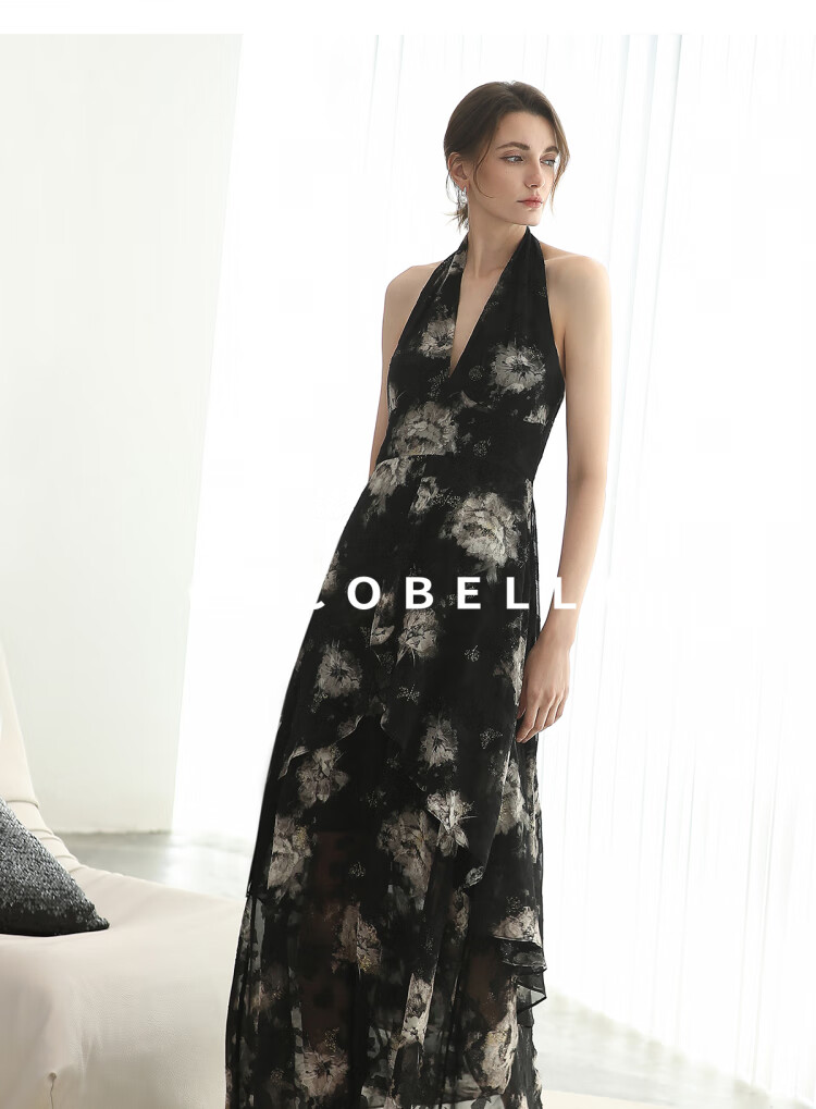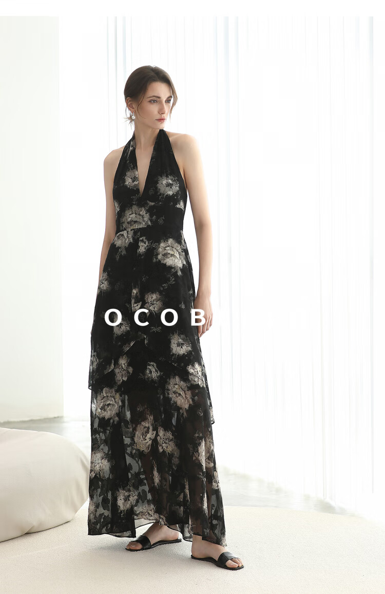 COCOBELLA重工提花金葱背心裙高知感度假风挂脖连衣裙FR3227