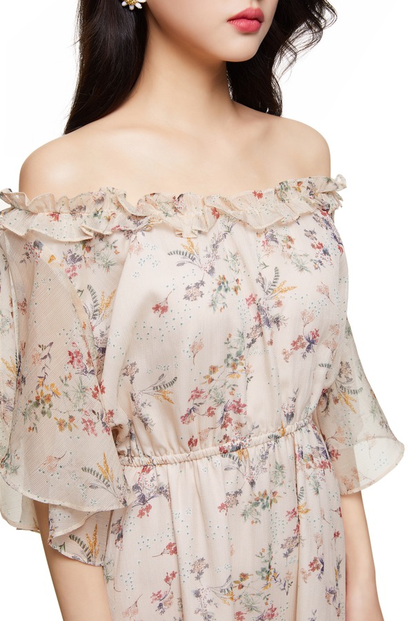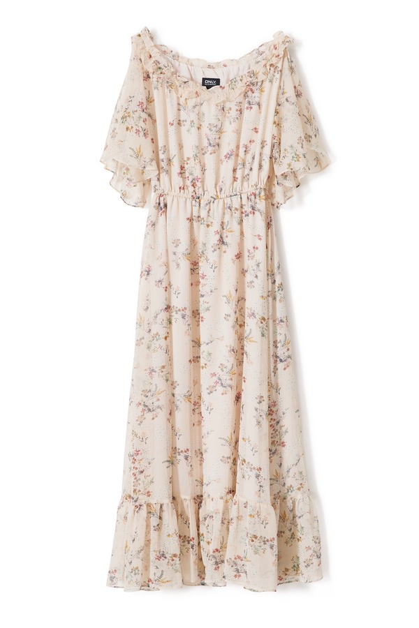 ONLY 米色印花一字肩连衣裙 9024