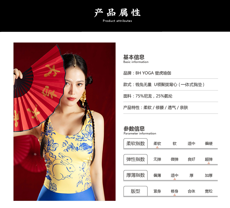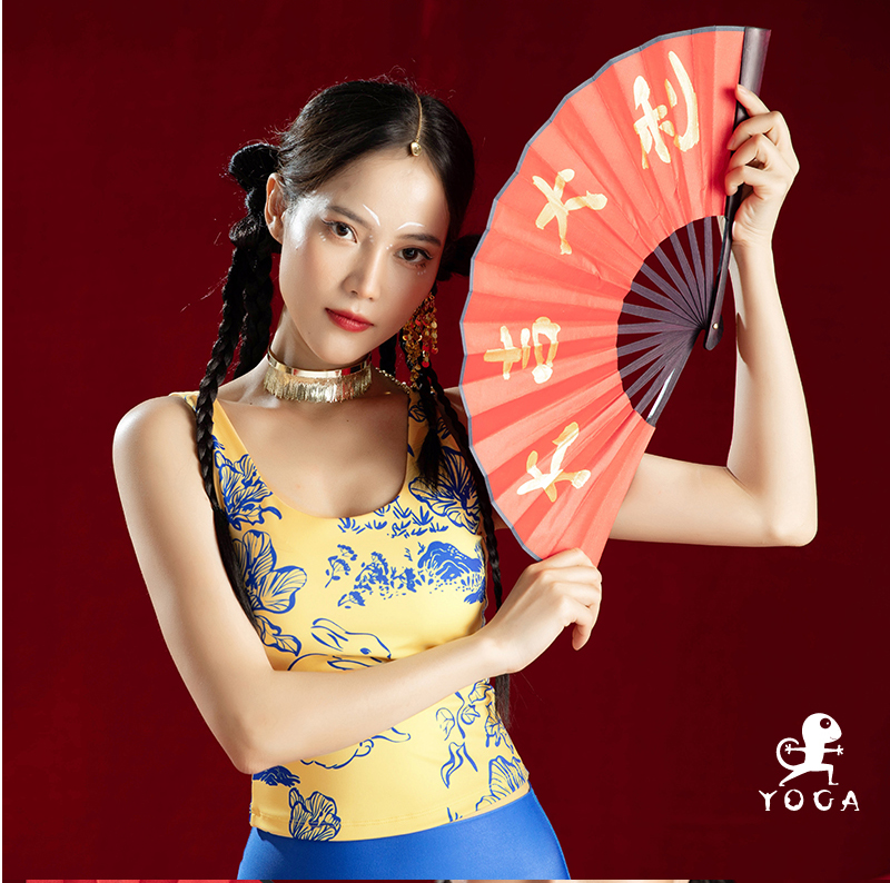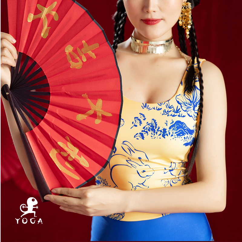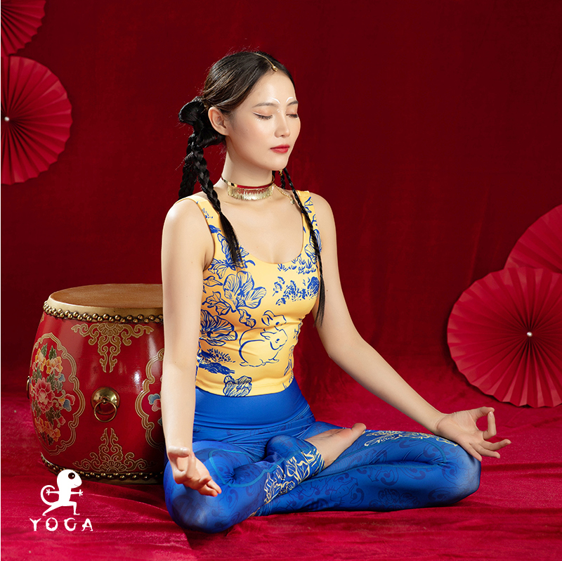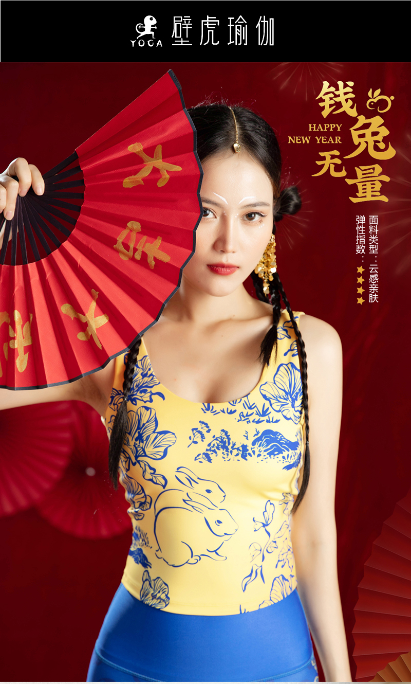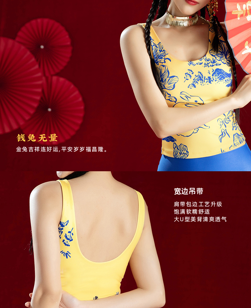 清仓款不退不换【现货秒发】壁虎瑜伽【钱兔无量-上衣】印花U型聚拢背心 (一体式胸垫)