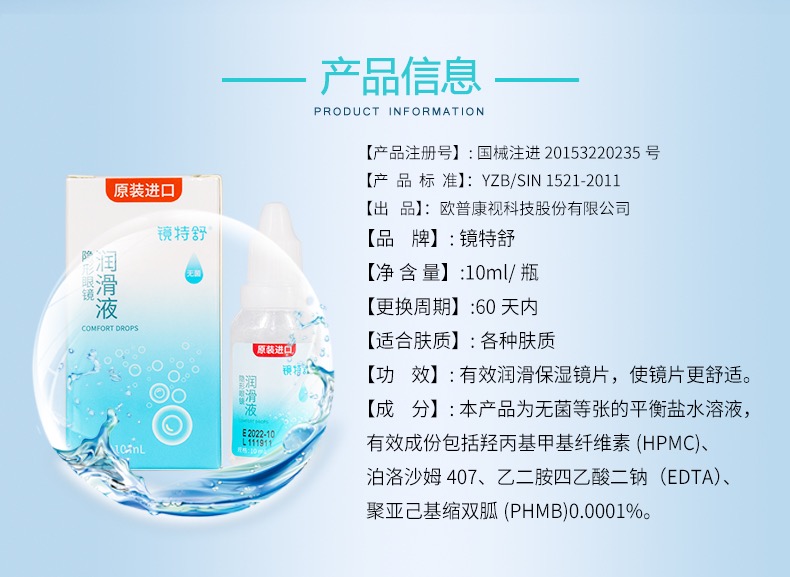 KJ ZCH 隐形眼镜润滑液 10ml 镜特舒隐形眼镜用品系列满195元送硬性角膜接触镜专用冲洗液1瓶 满460元赠送深度洁净液1瓶