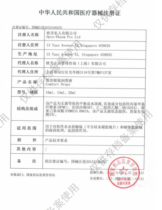 中华人民共和国医疗器械注册证编号:国械注进20153160235