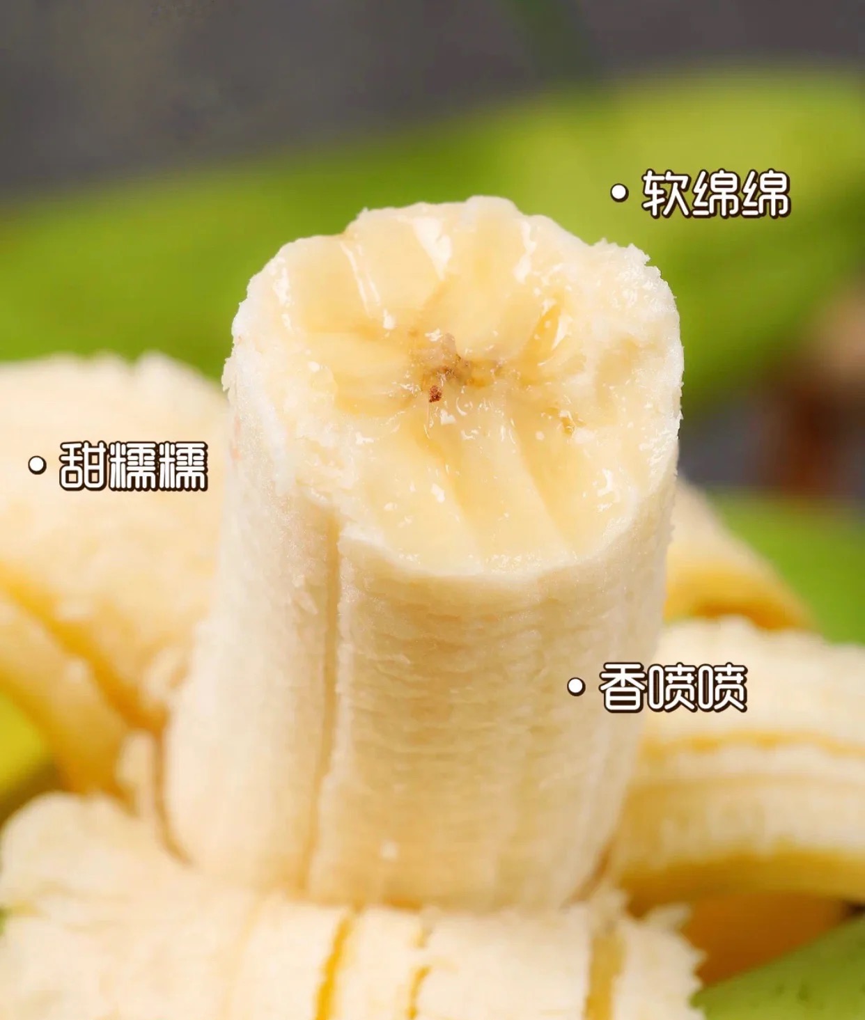 撕开软薄如丝绸的蕉皮,会惊喜发现果肉已经悄悄酝酿的美味可口,肥嘟嘟的果肉,吃一口香甜浓郁上头,软软糯糯的,一抿就化,纵享丝滑~