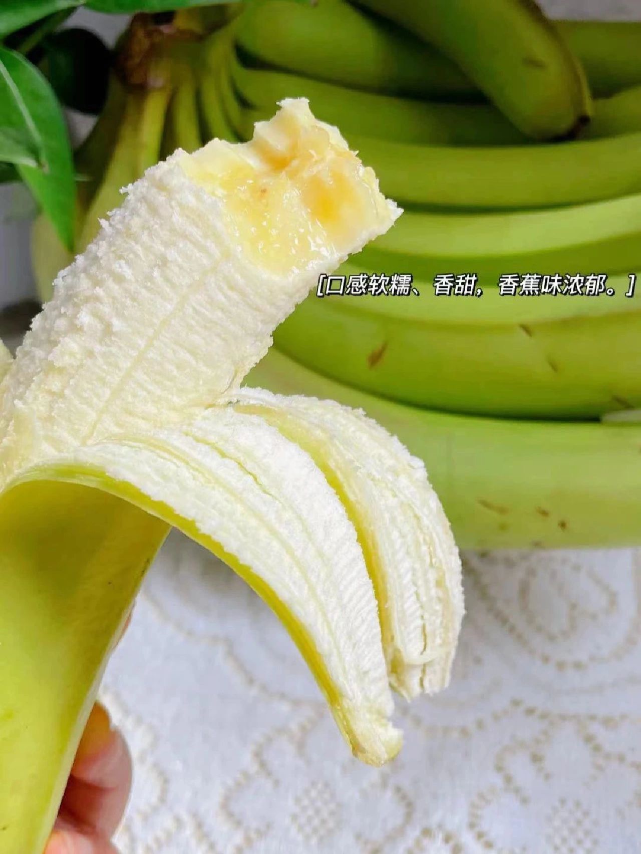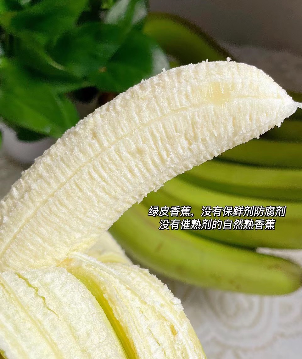 绿皮香蕉最大的特点就是果质柔软,清甜而芳香,果肉奶黄色。只需轻轻一咬,果肉便在嘴中变成香甜果泥,给小宝宝吃再合适不过了!