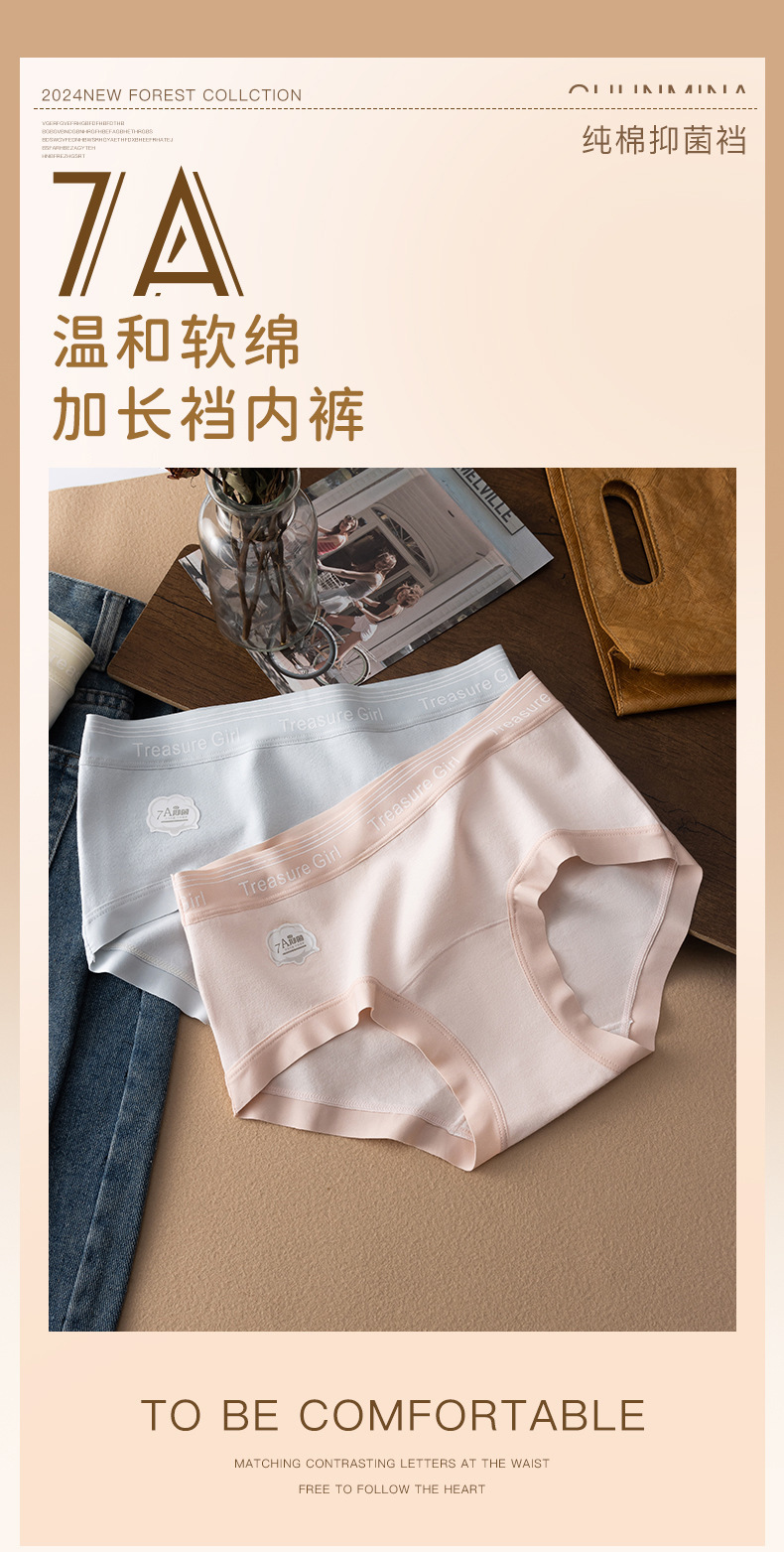 【捡漏49米!拍1发4 到手5件!】活性印染 呵护健康 女士内裤全棉加长裆 7A抑菌a类新疆棉无痕内裤 透气女士内裤女全棉
