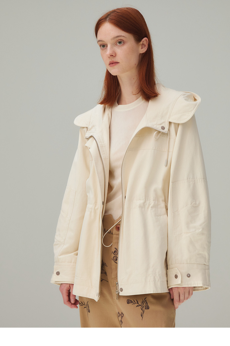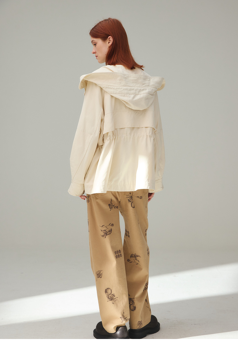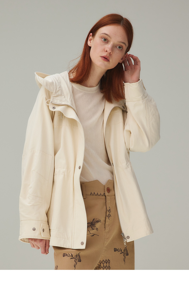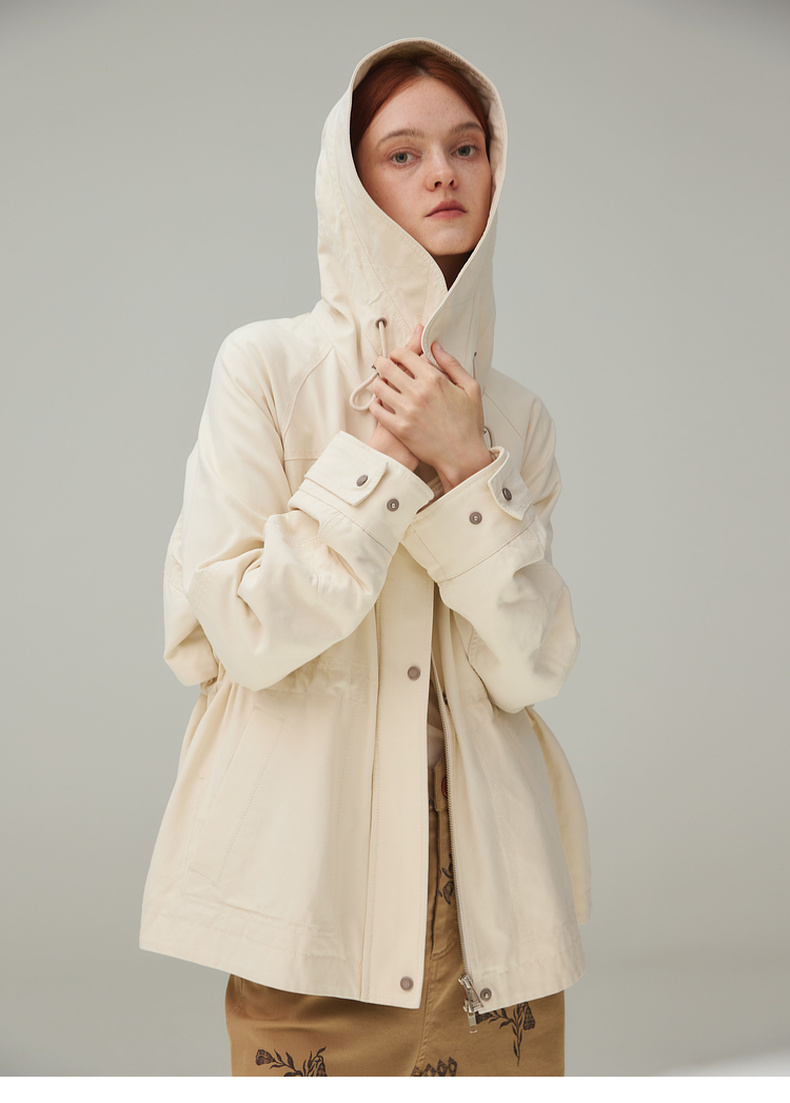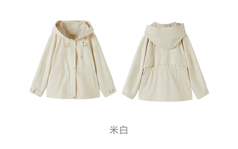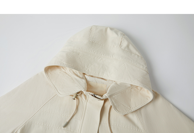 谜底风衣女2025秋新品通勤时尚可调节收腰插肩连帽外套253ME1075