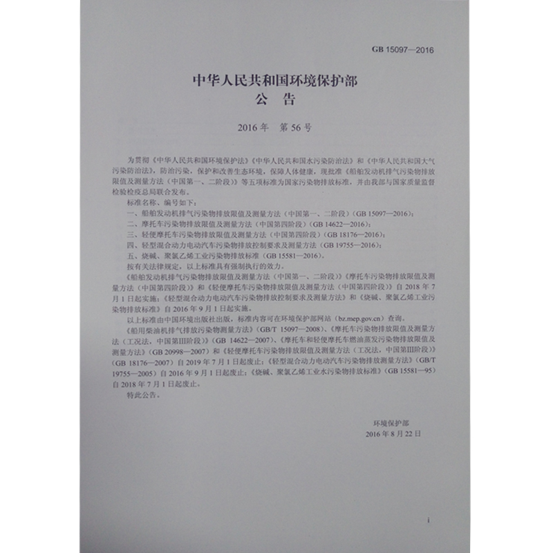 GB15097-2016 船舶发动机排气污染物排放限制及测量方法(中国第一、二阶段)