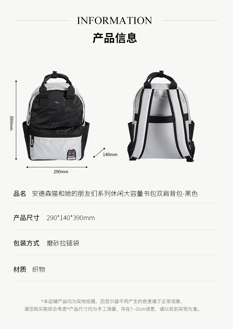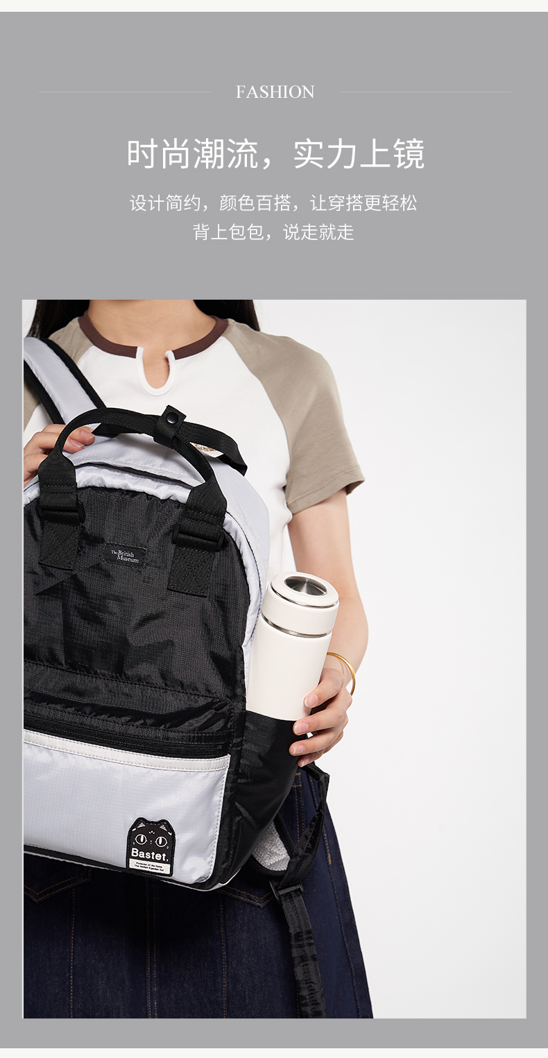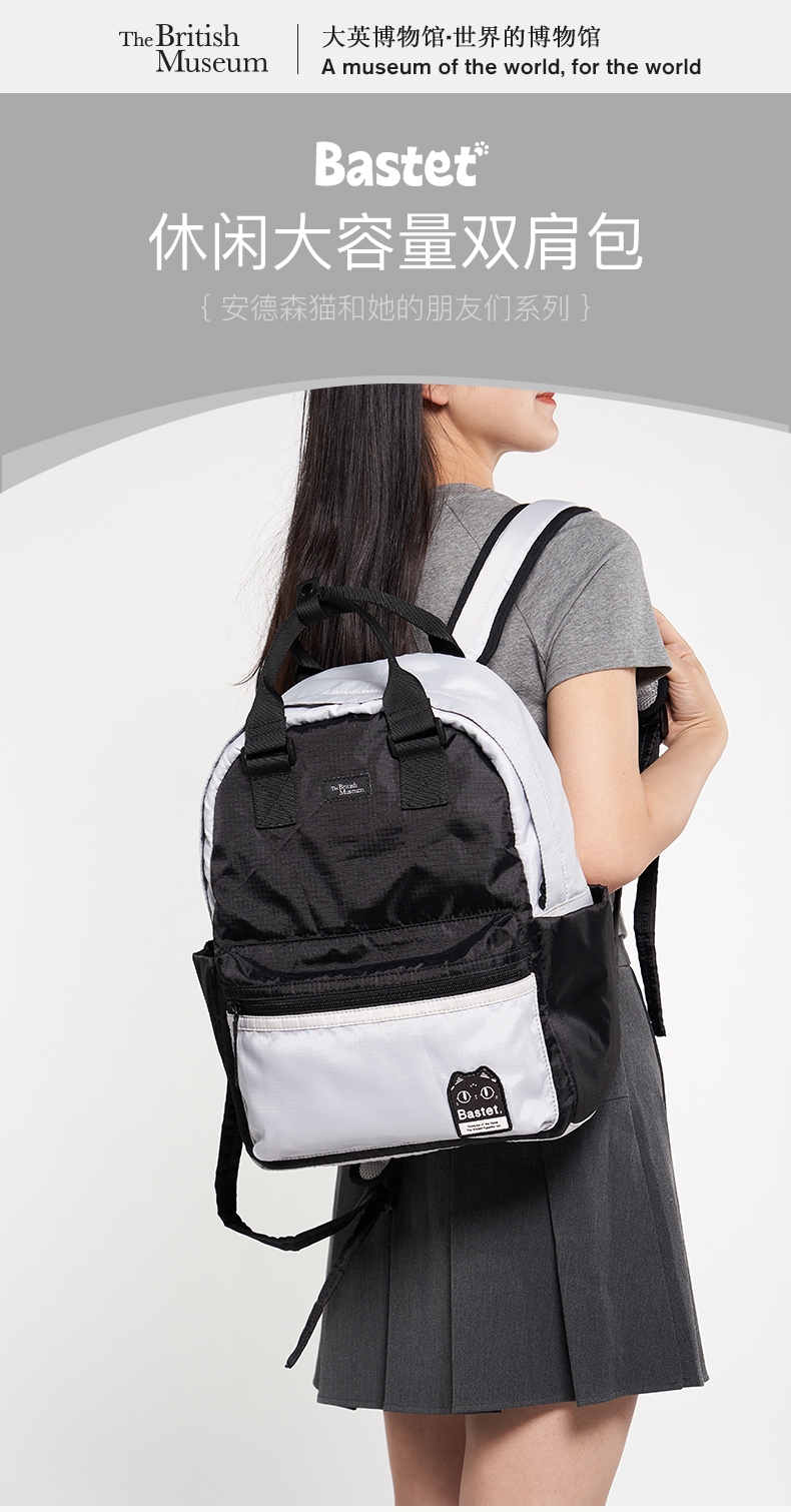 大英博物馆 盖亚·安德森猫和她的朋友们系列 休闲大容量书包双肩背包-黑色