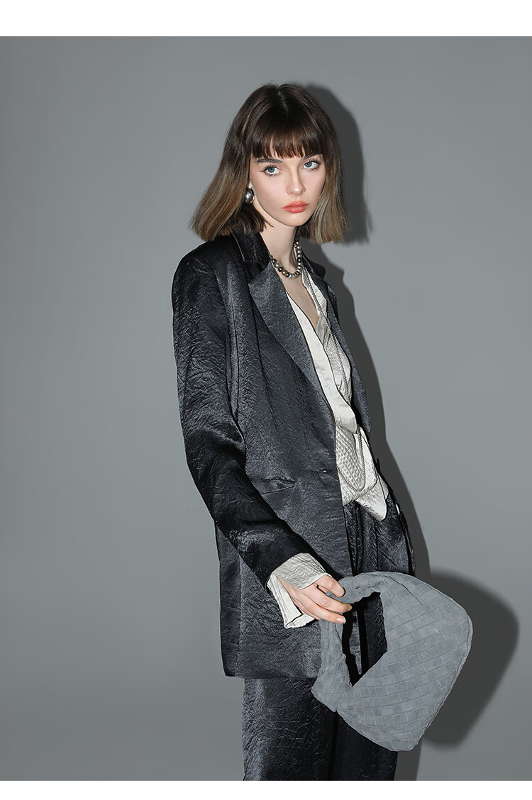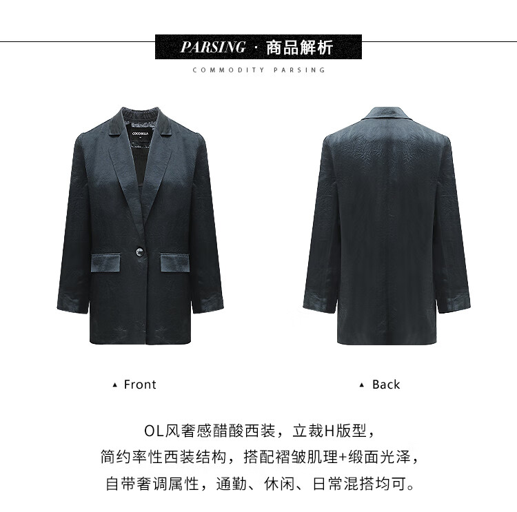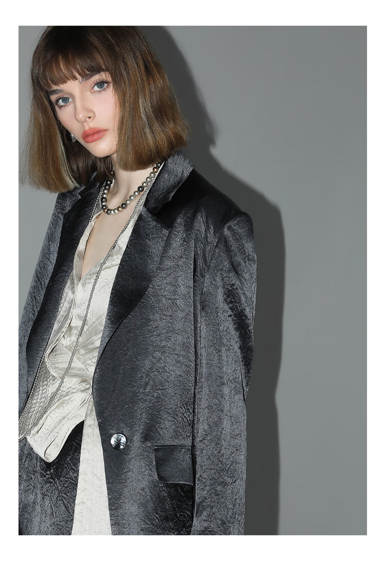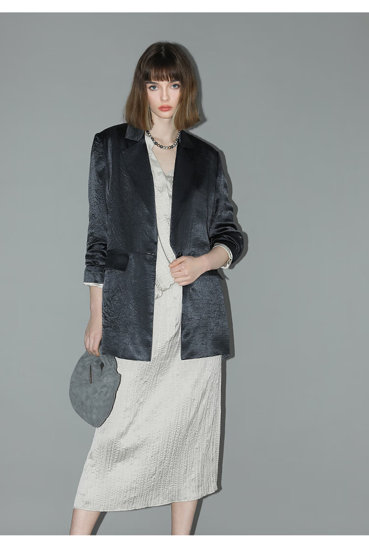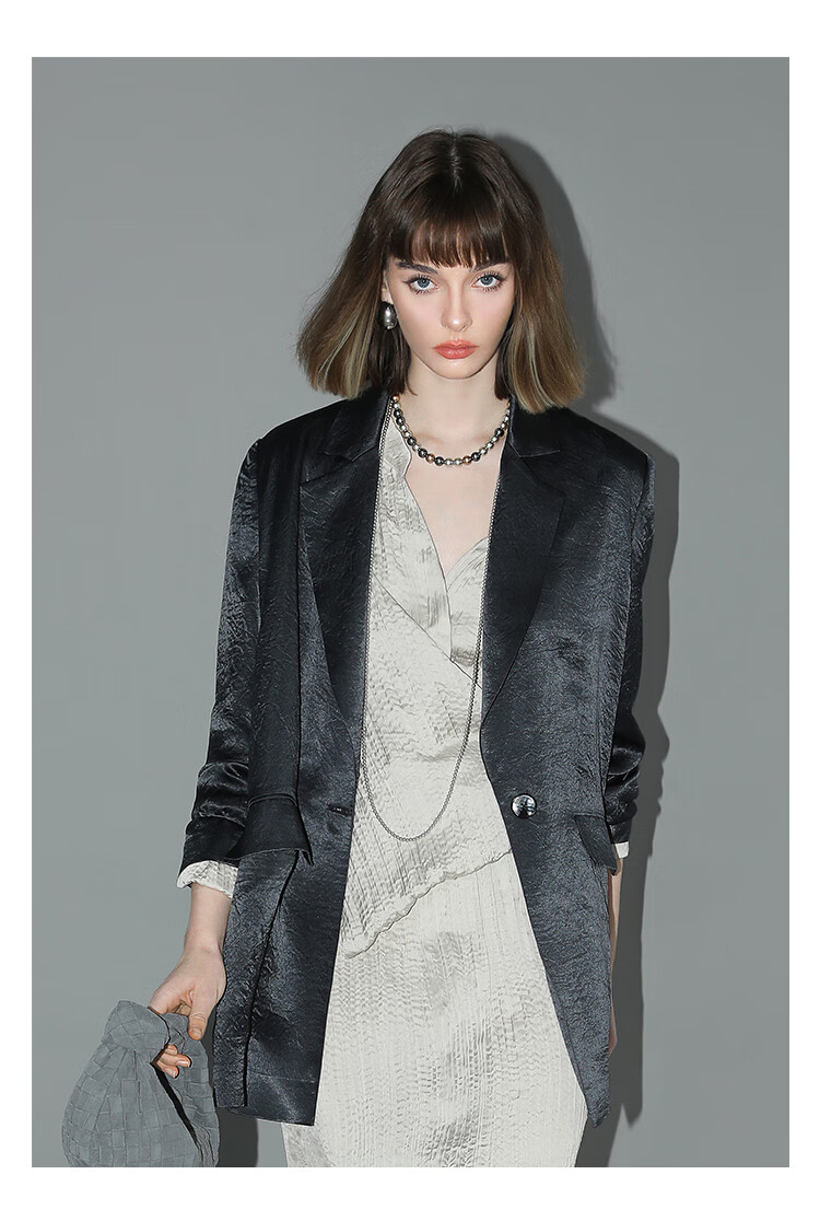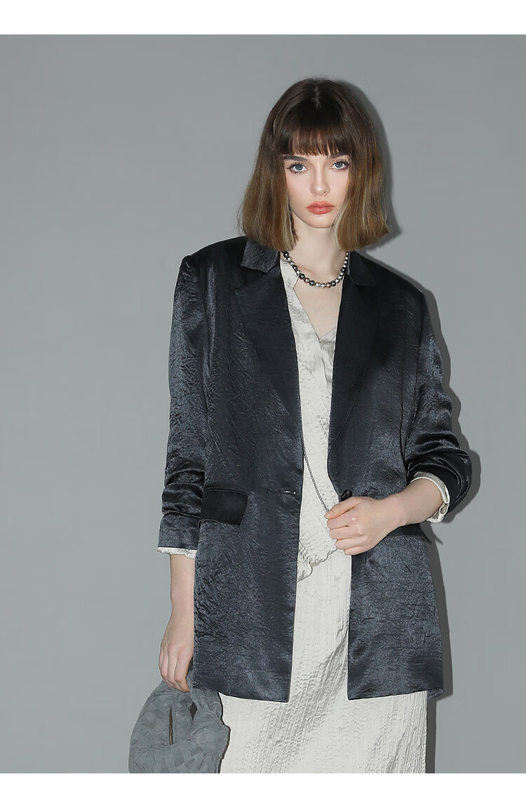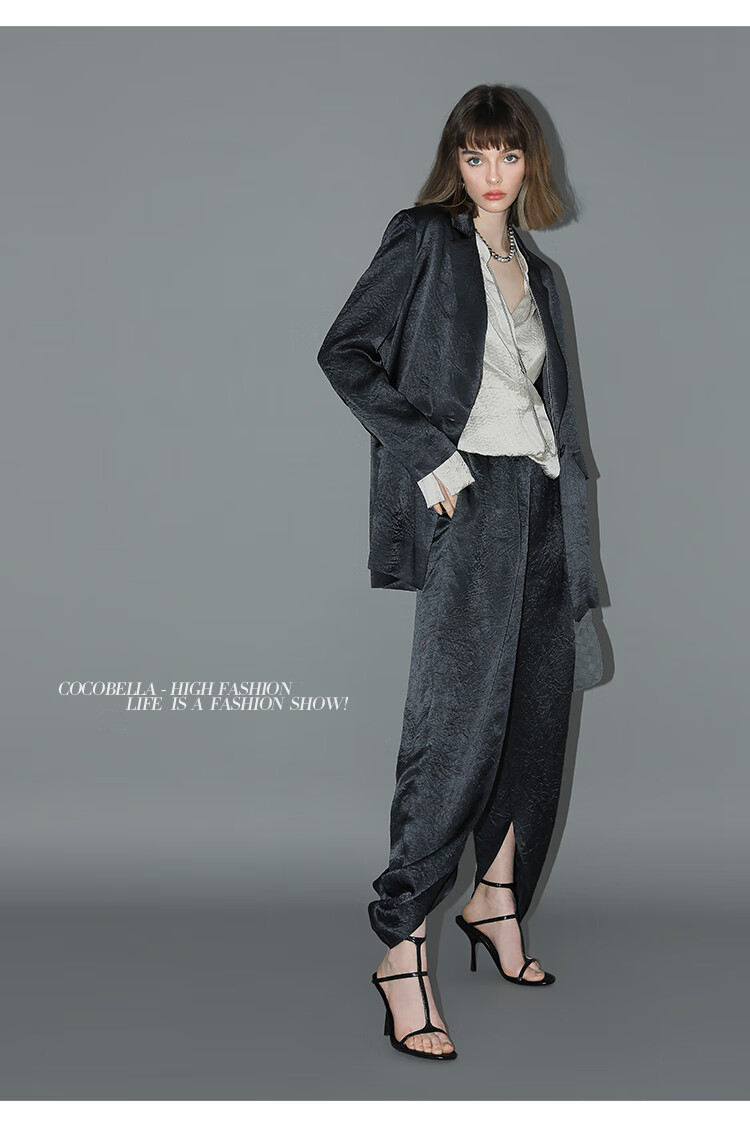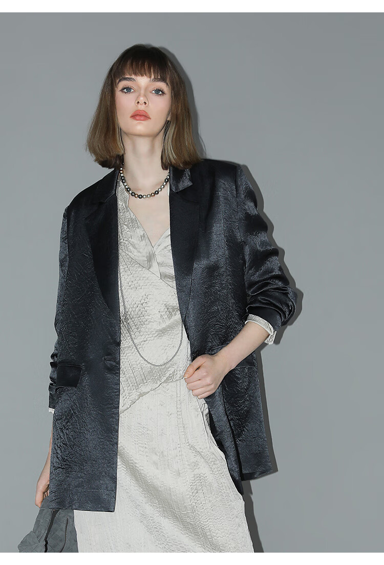 COCOBELLA[醋酸]奢感褶皱肌理丝滑垂坠OL西装外套SI7003