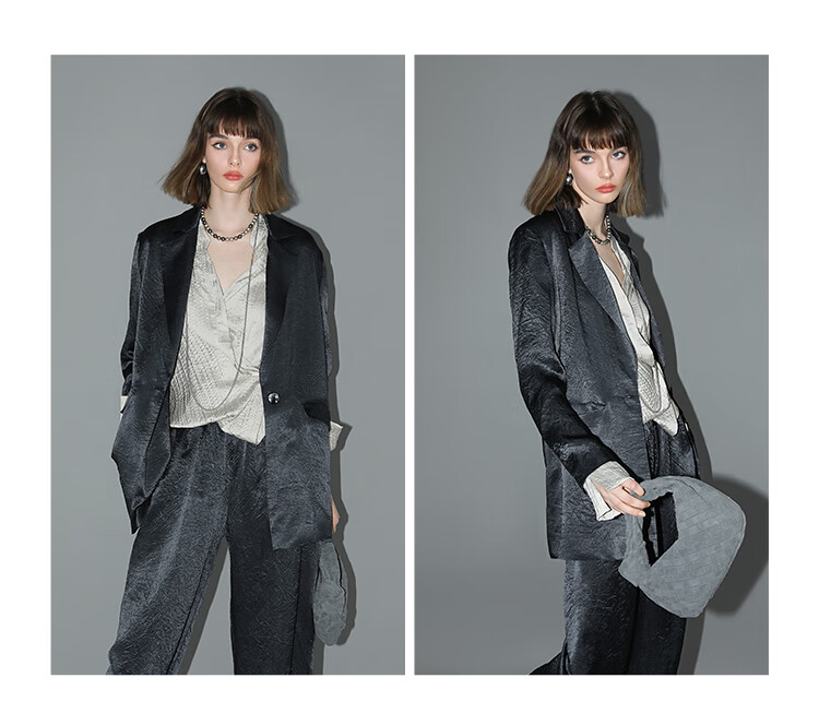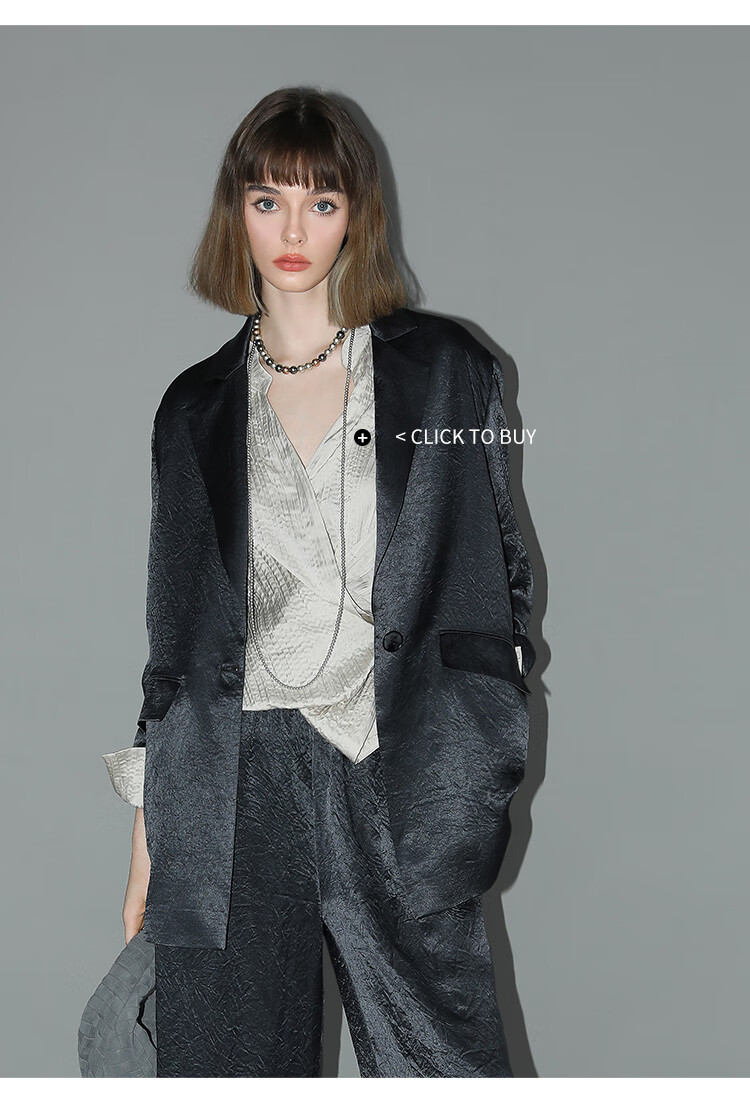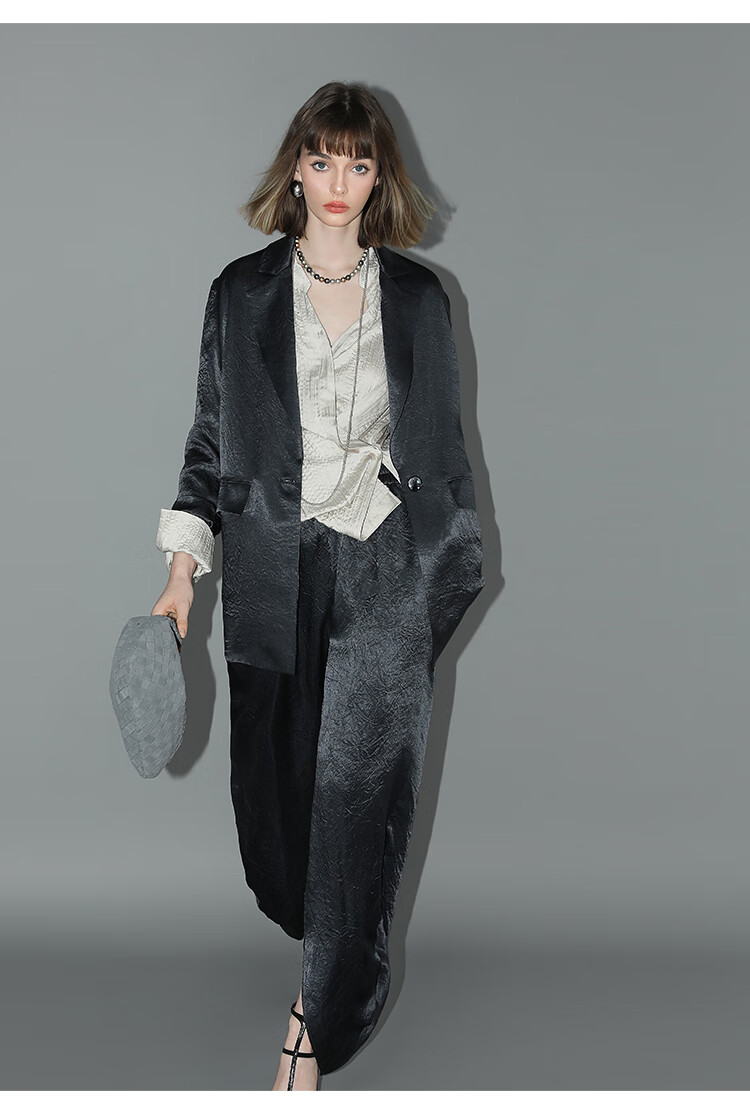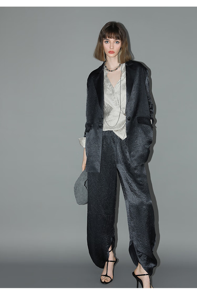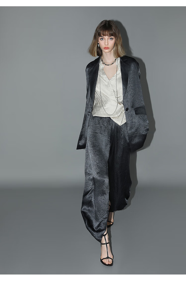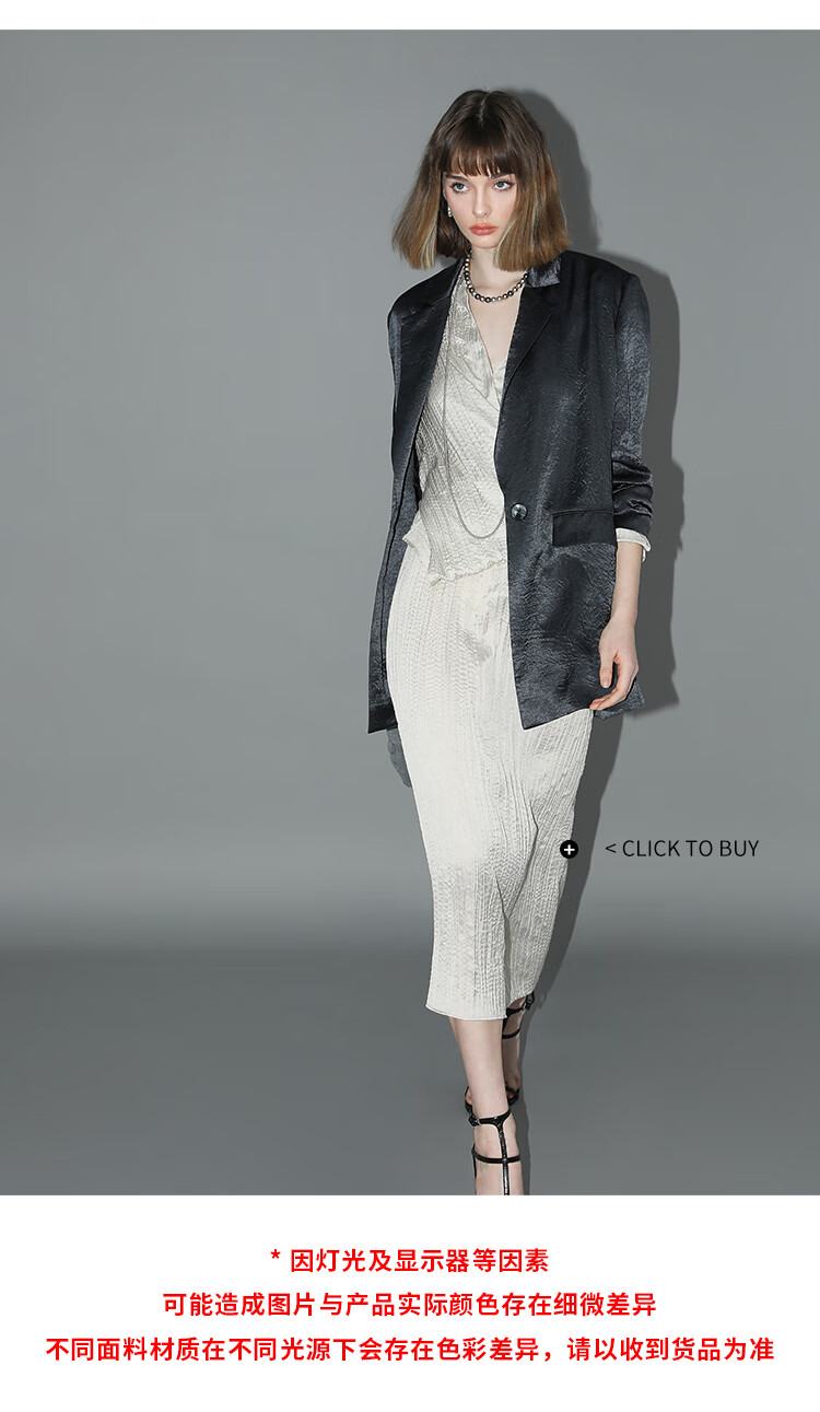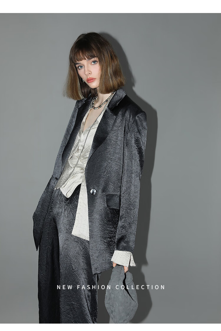 COCOBELLA[醋酸]奢感褶皱肌理丝滑垂坠OL西装外套SI7003