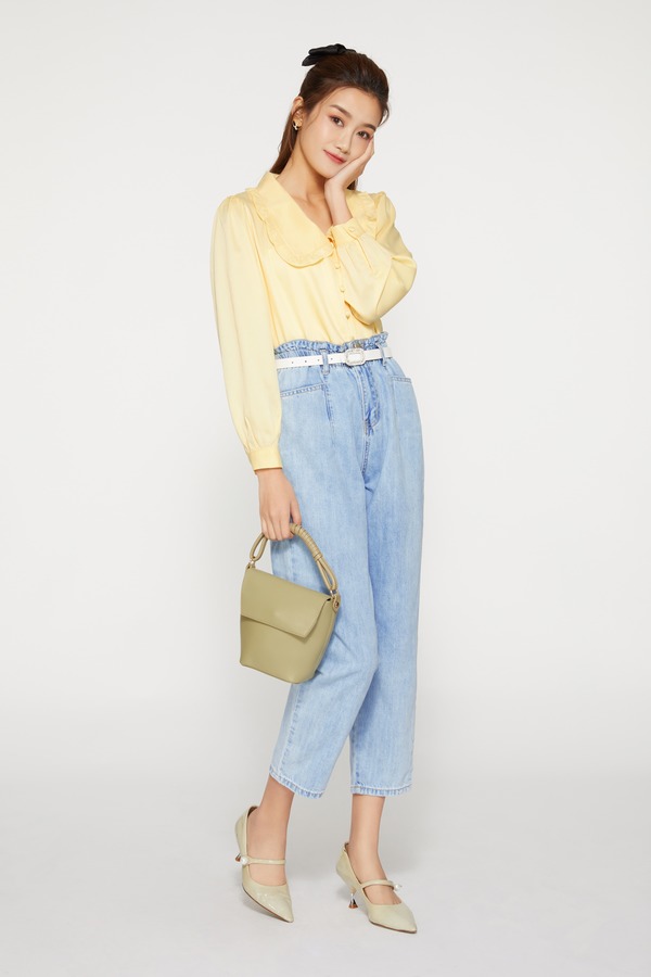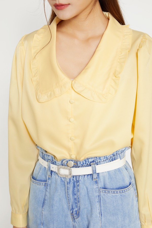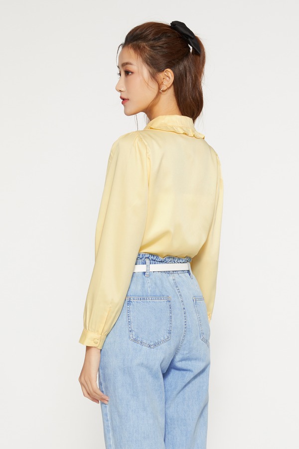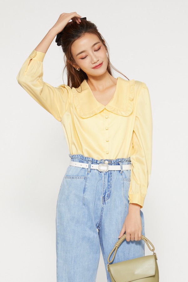 amadella 淡黄色复古娃娃领荷叶边衬衫 9446