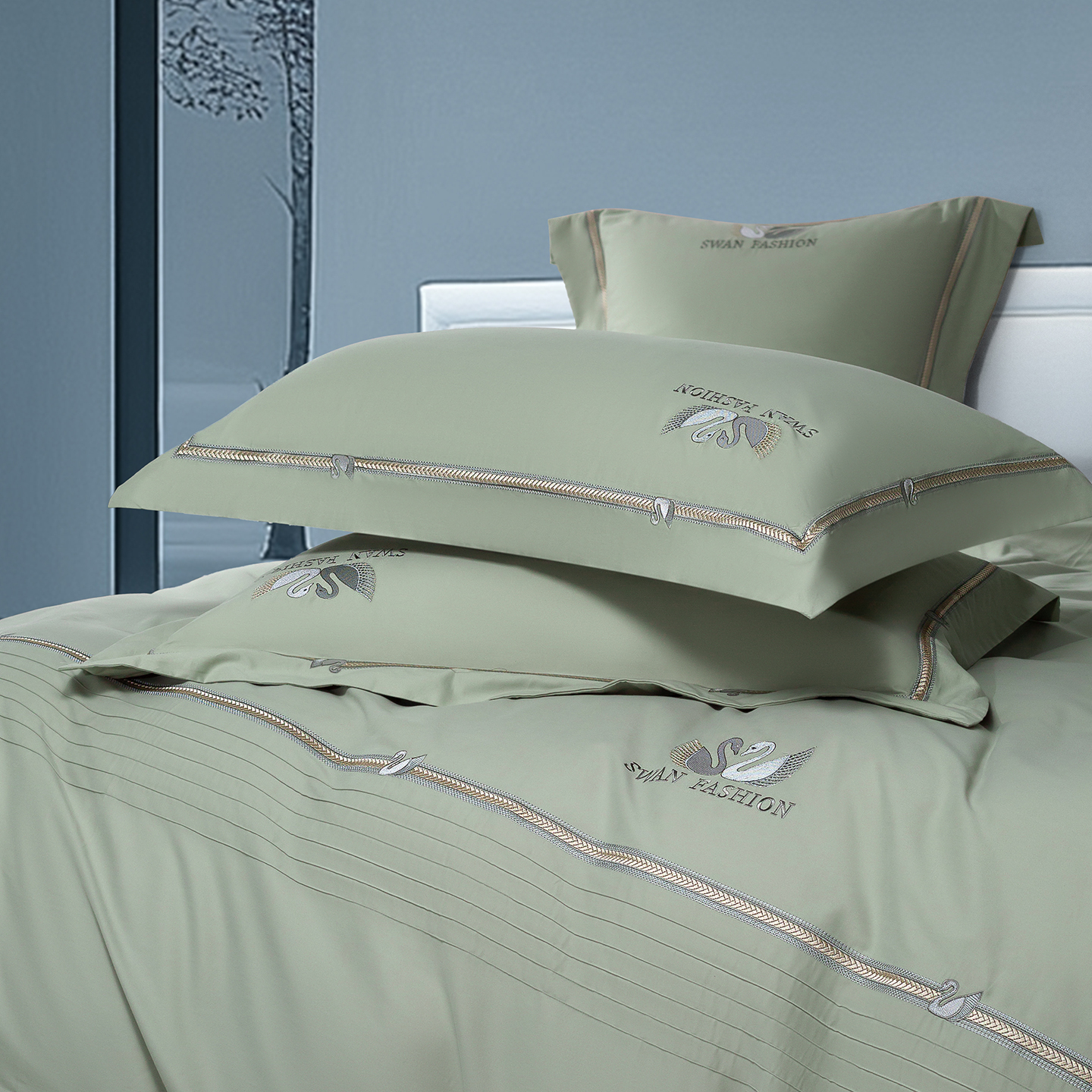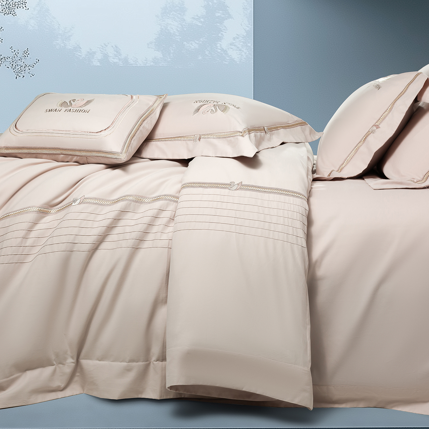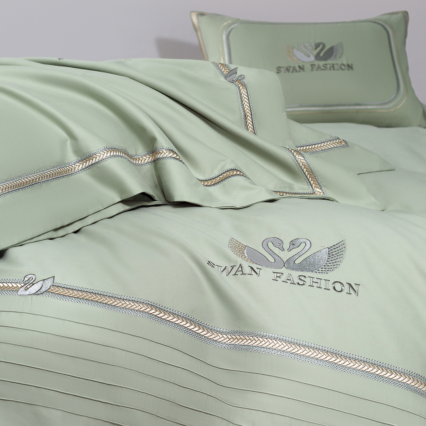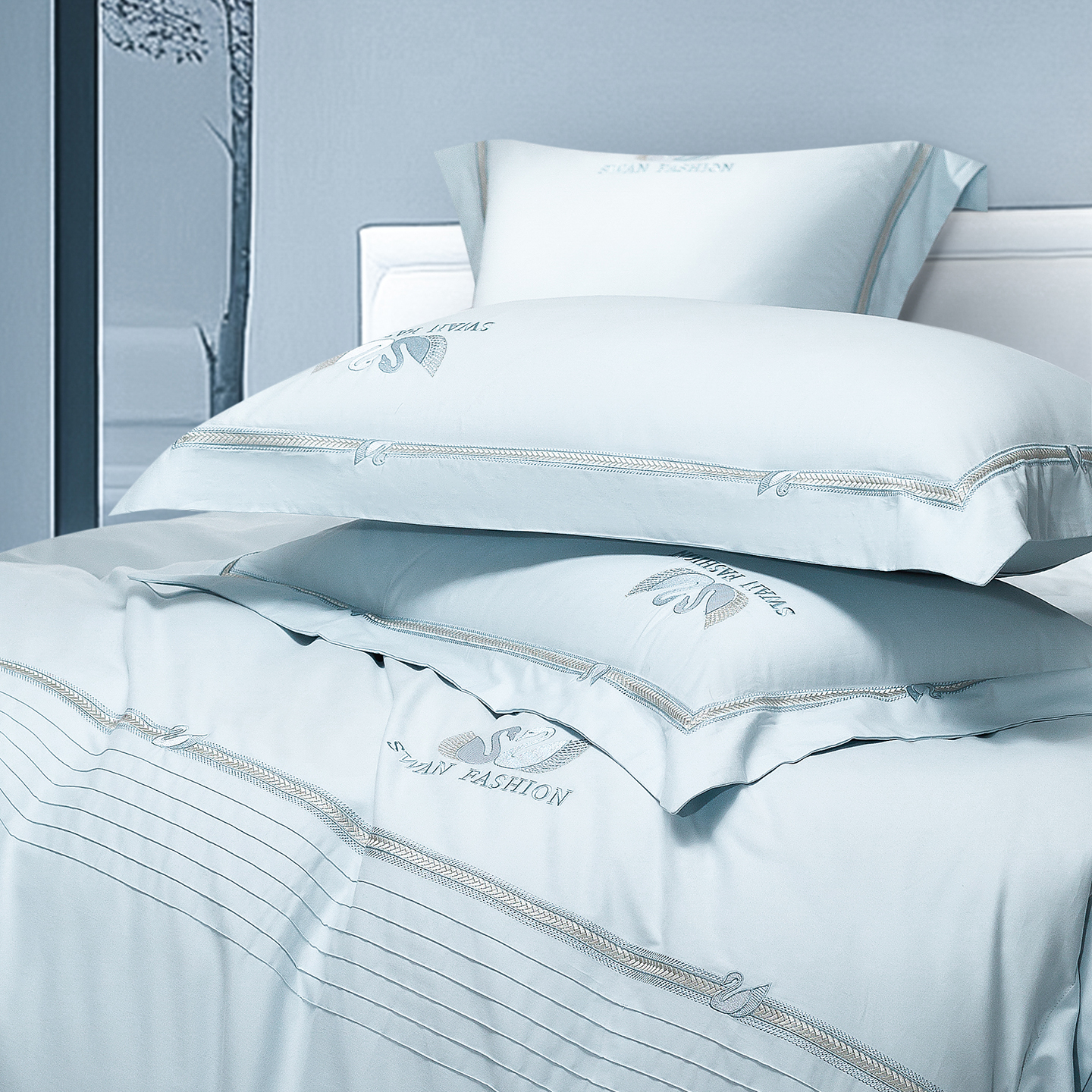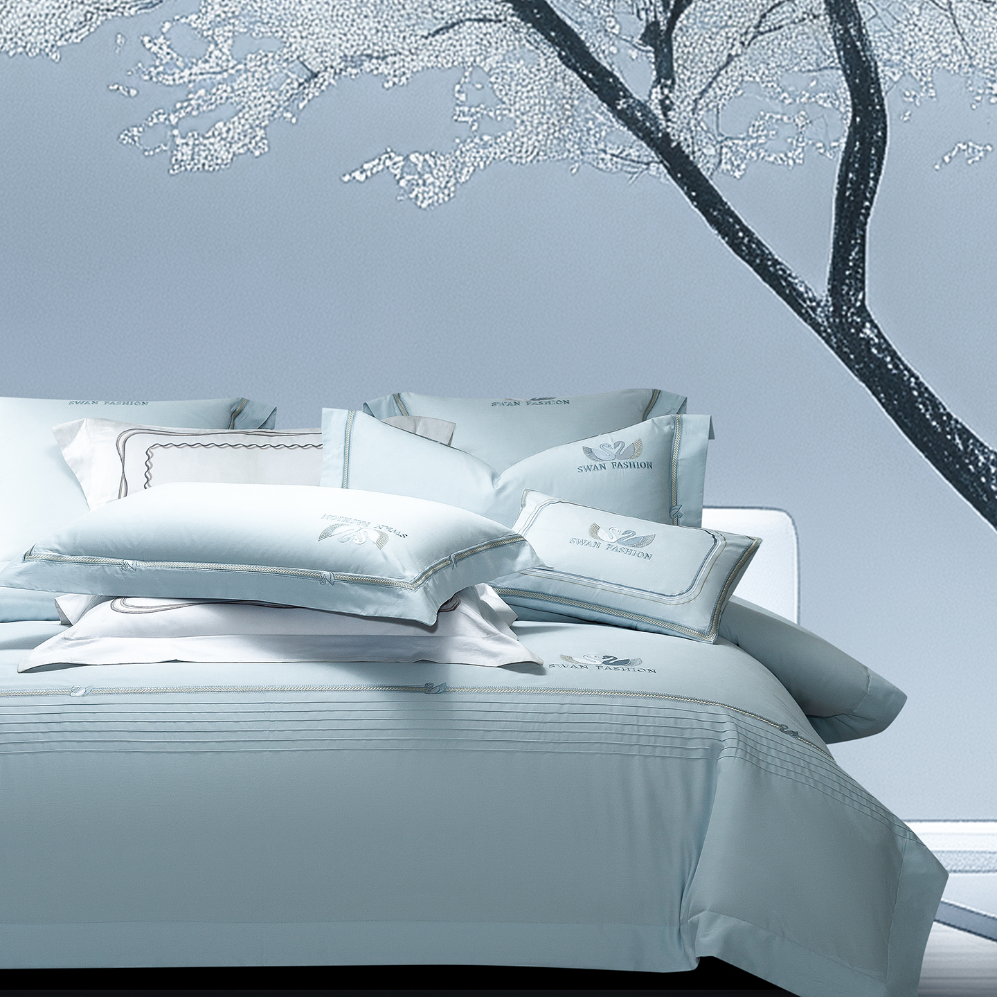 自然醒160支长绒棉磨毛高端绣花四件套100%纯棉床单被套秋冬季家纺床品GDS