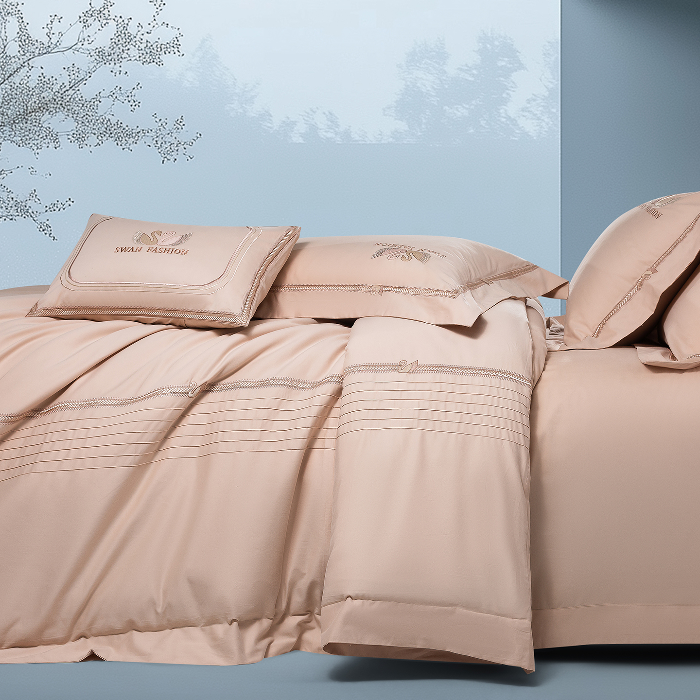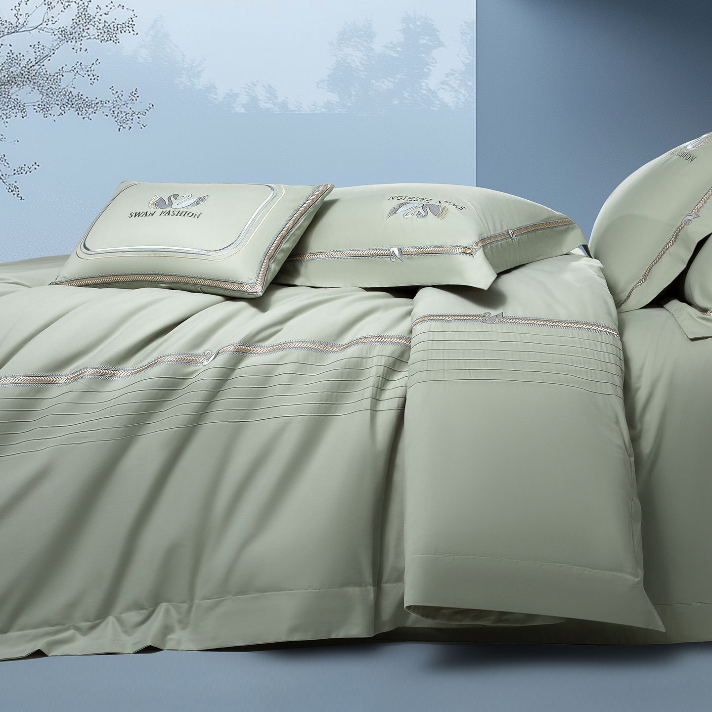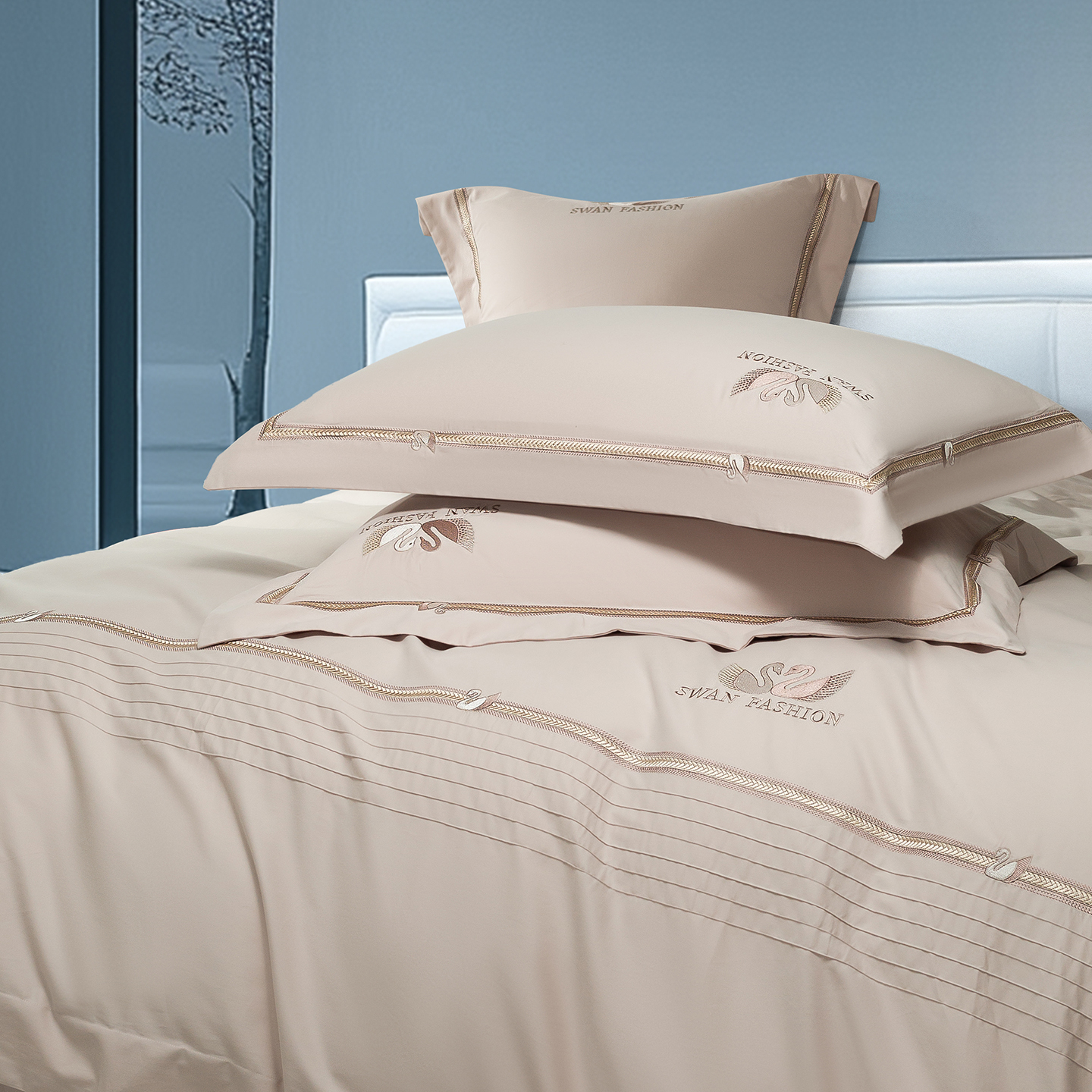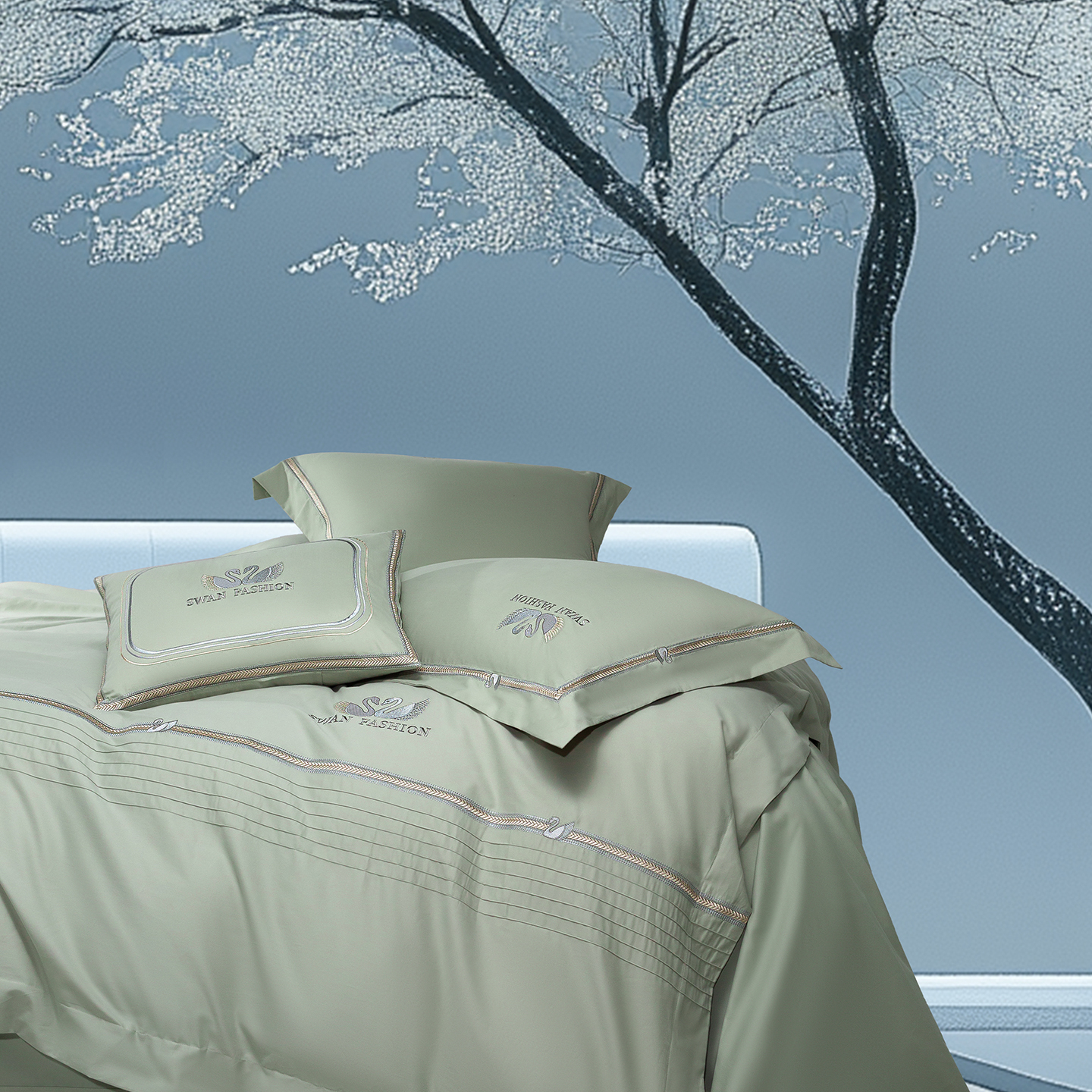 自然醒160支长绒棉磨毛高端绣花四件套100%纯棉床单被套秋冬季家纺床品GDS