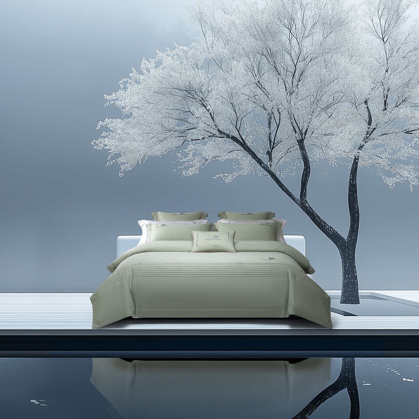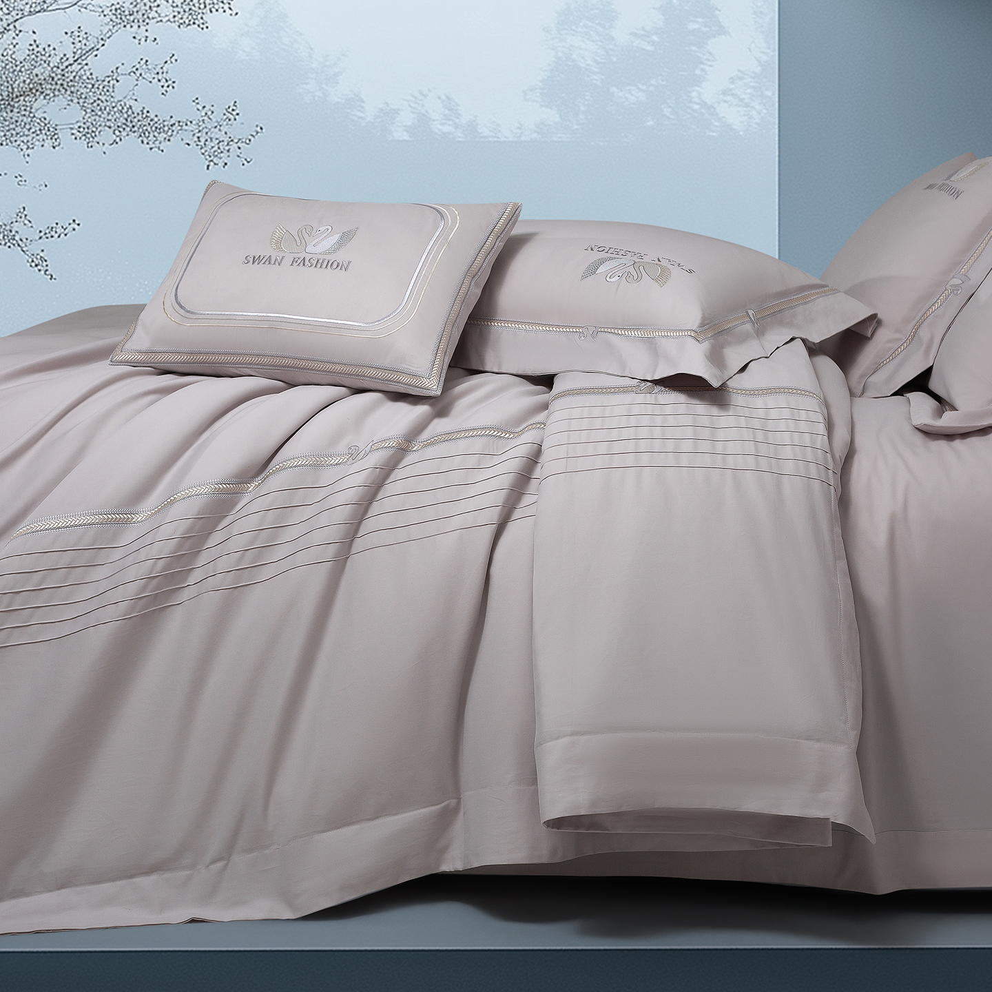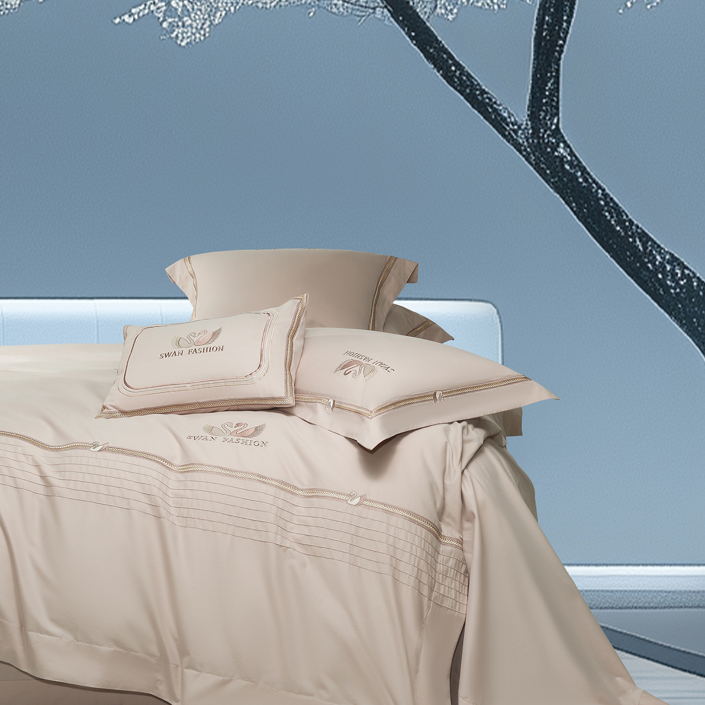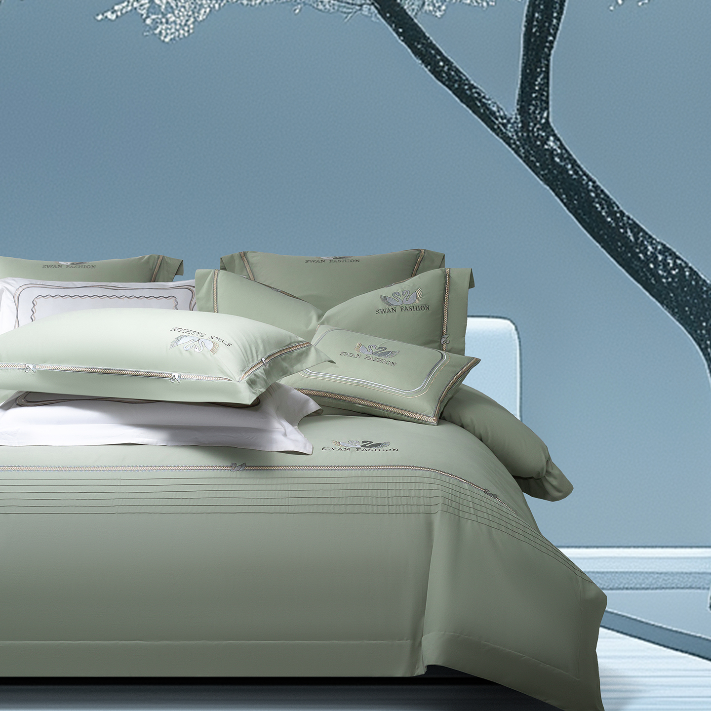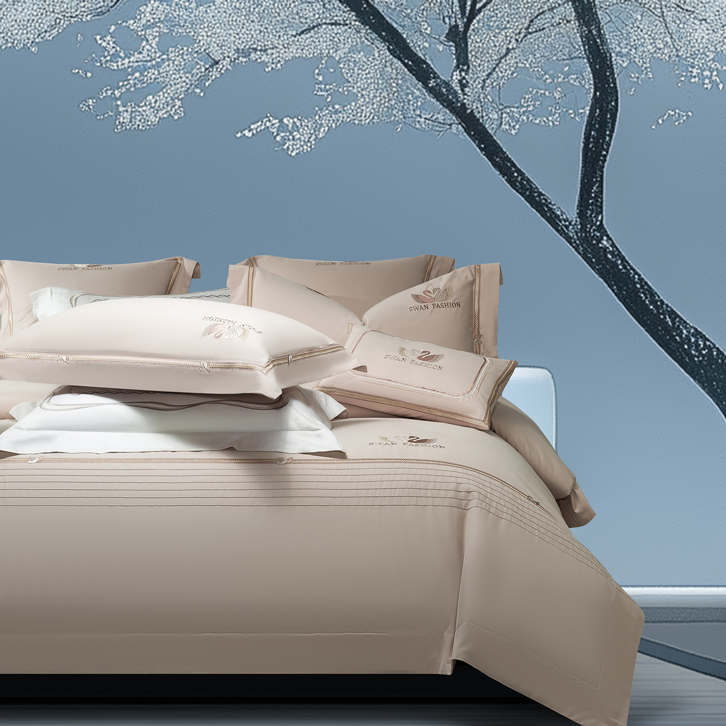 自然醒160支长绒棉磨毛高端绣花四件套100%纯棉床单被套秋冬季家纺床品GDS