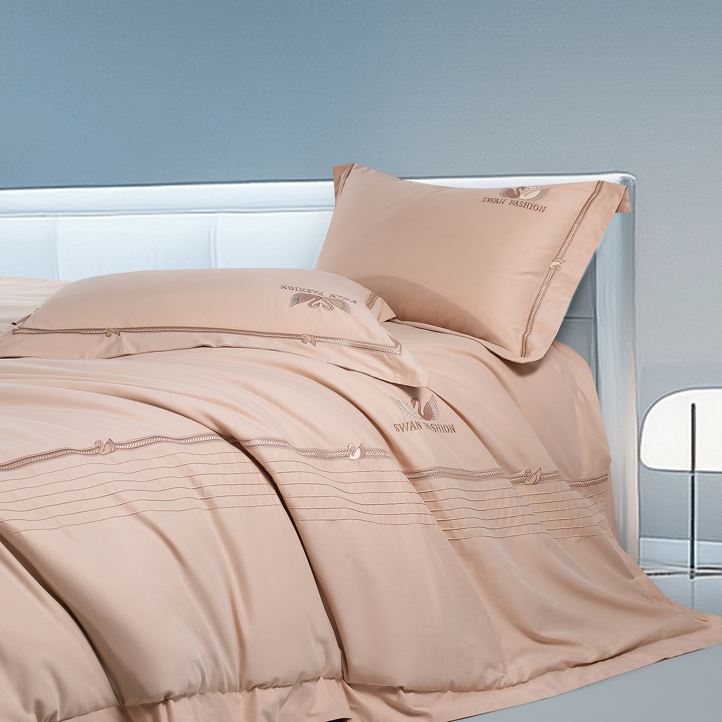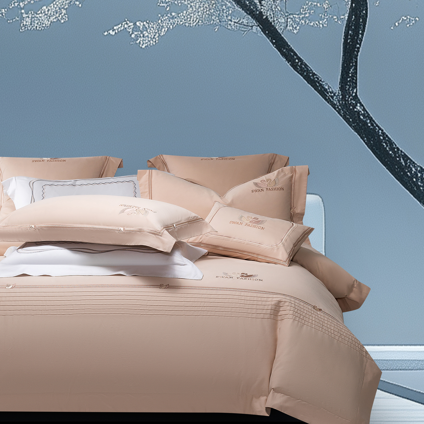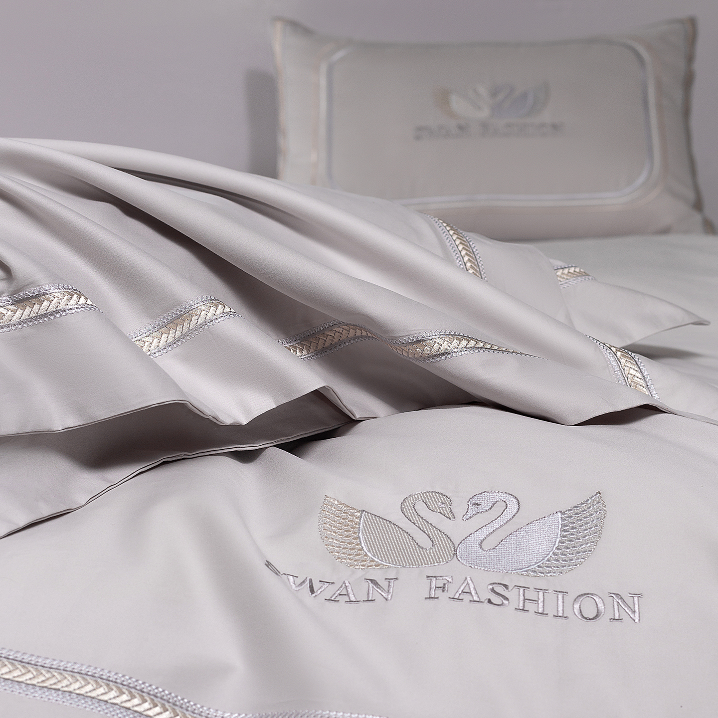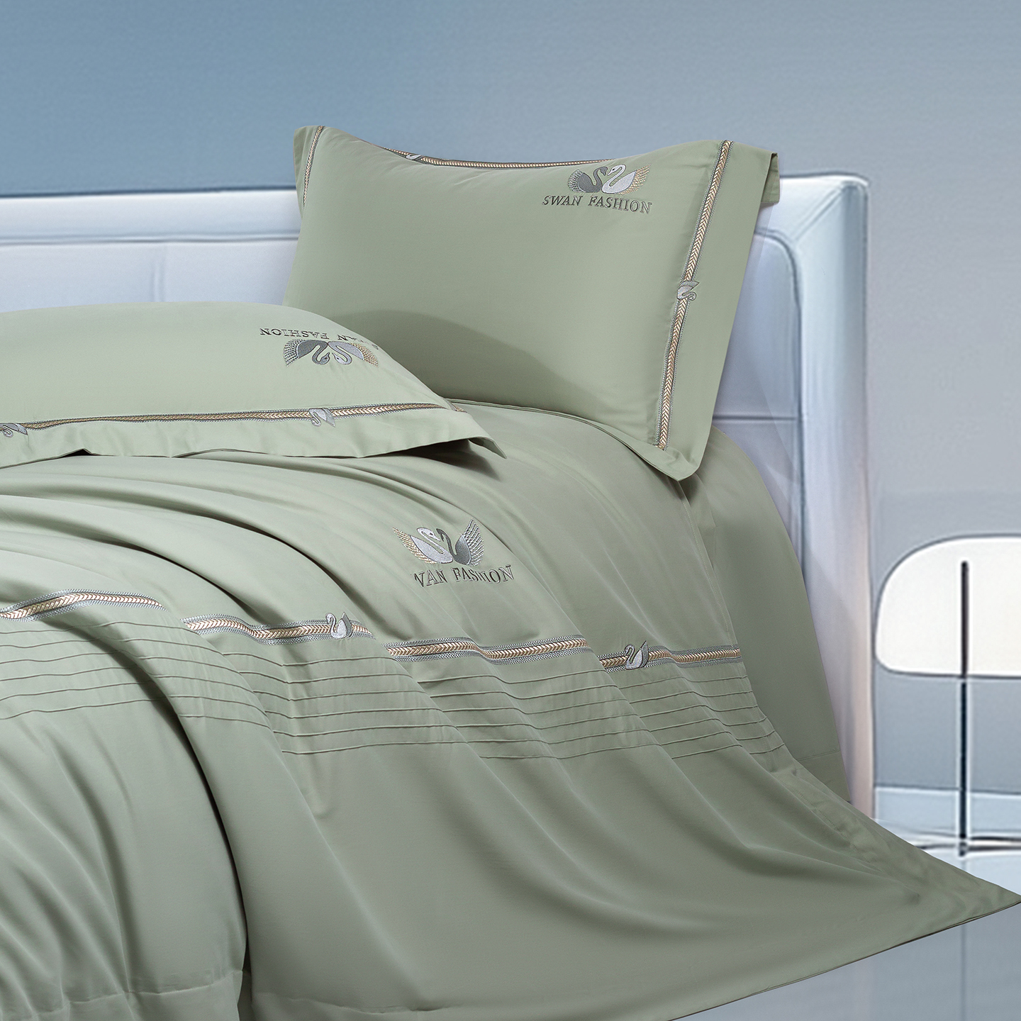 自然醒160支长绒棉磨毛高端绣花四件套100%纯棉床单被套秋冬季家纺床品GDS