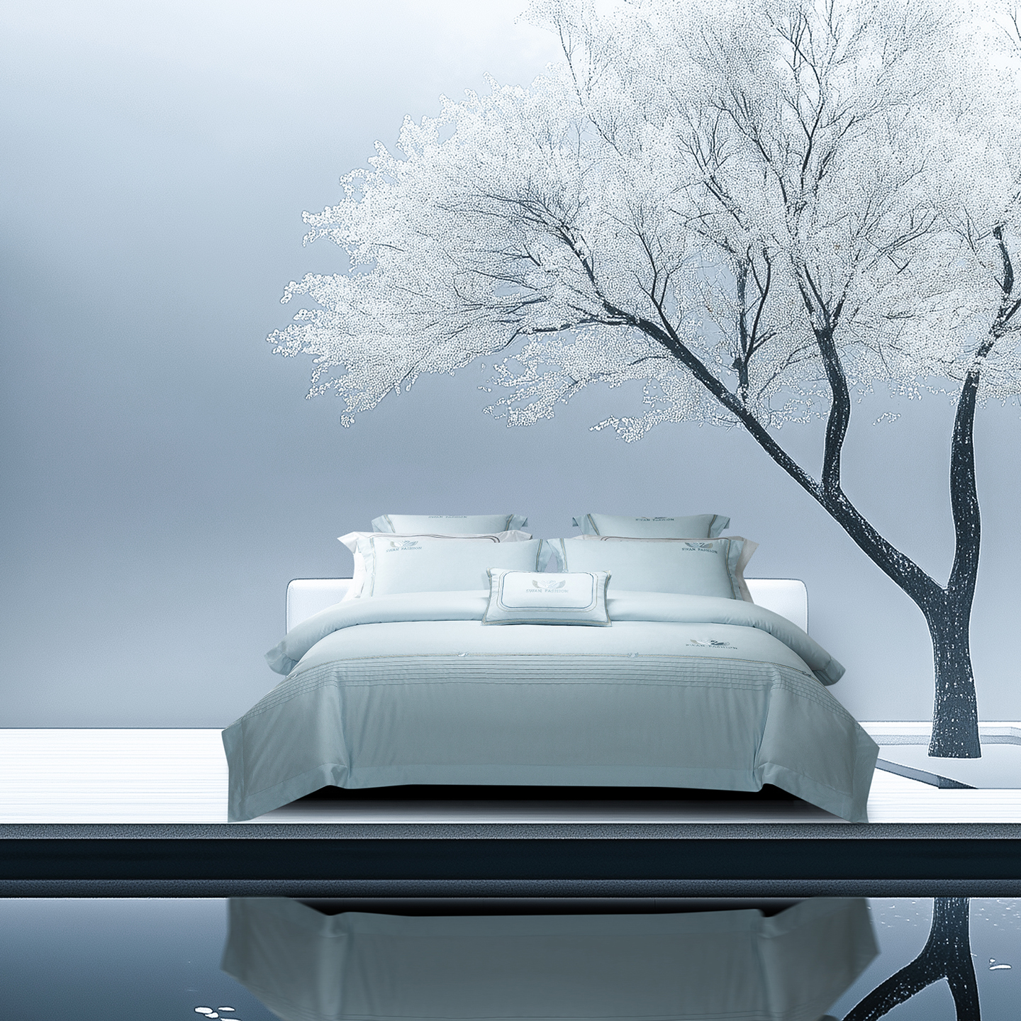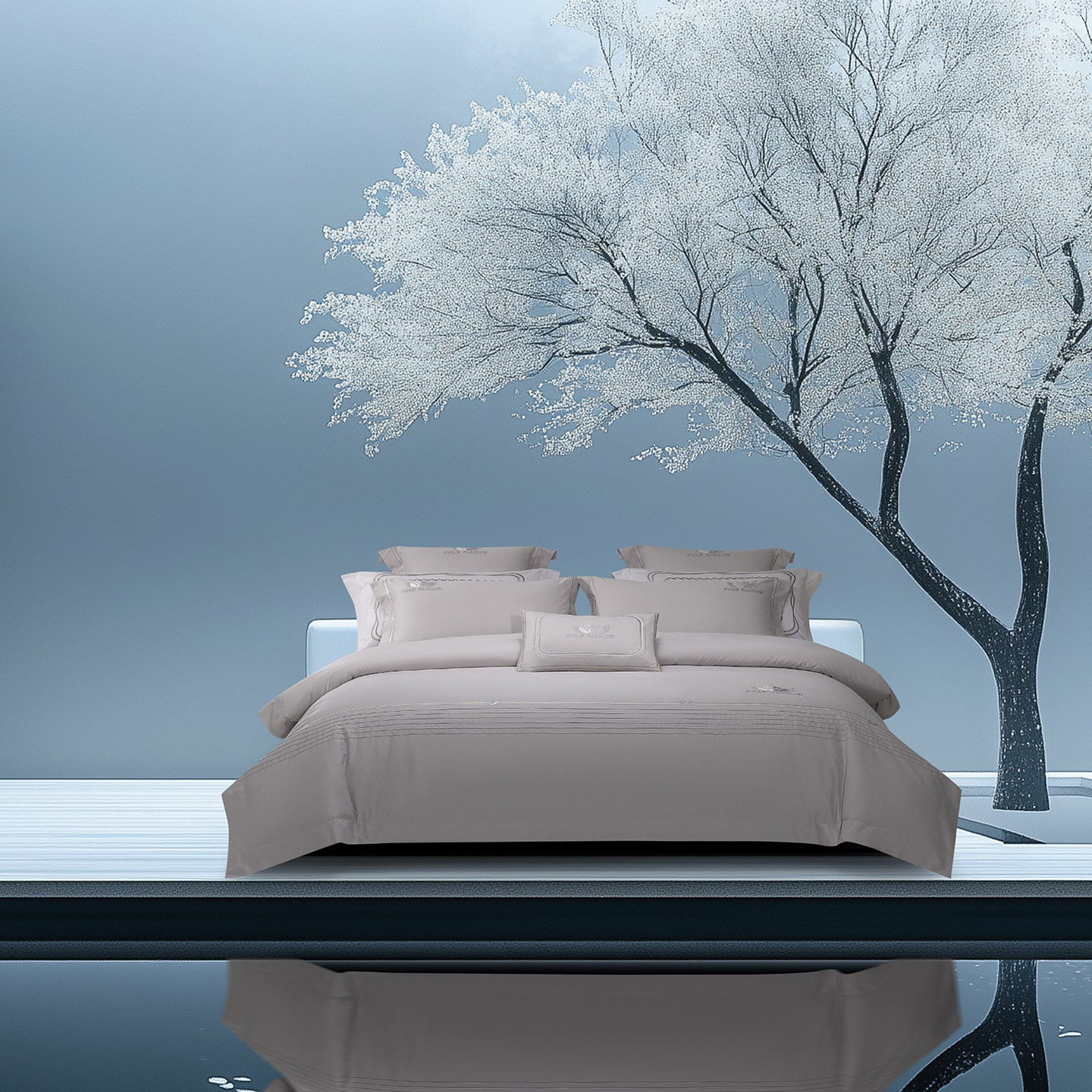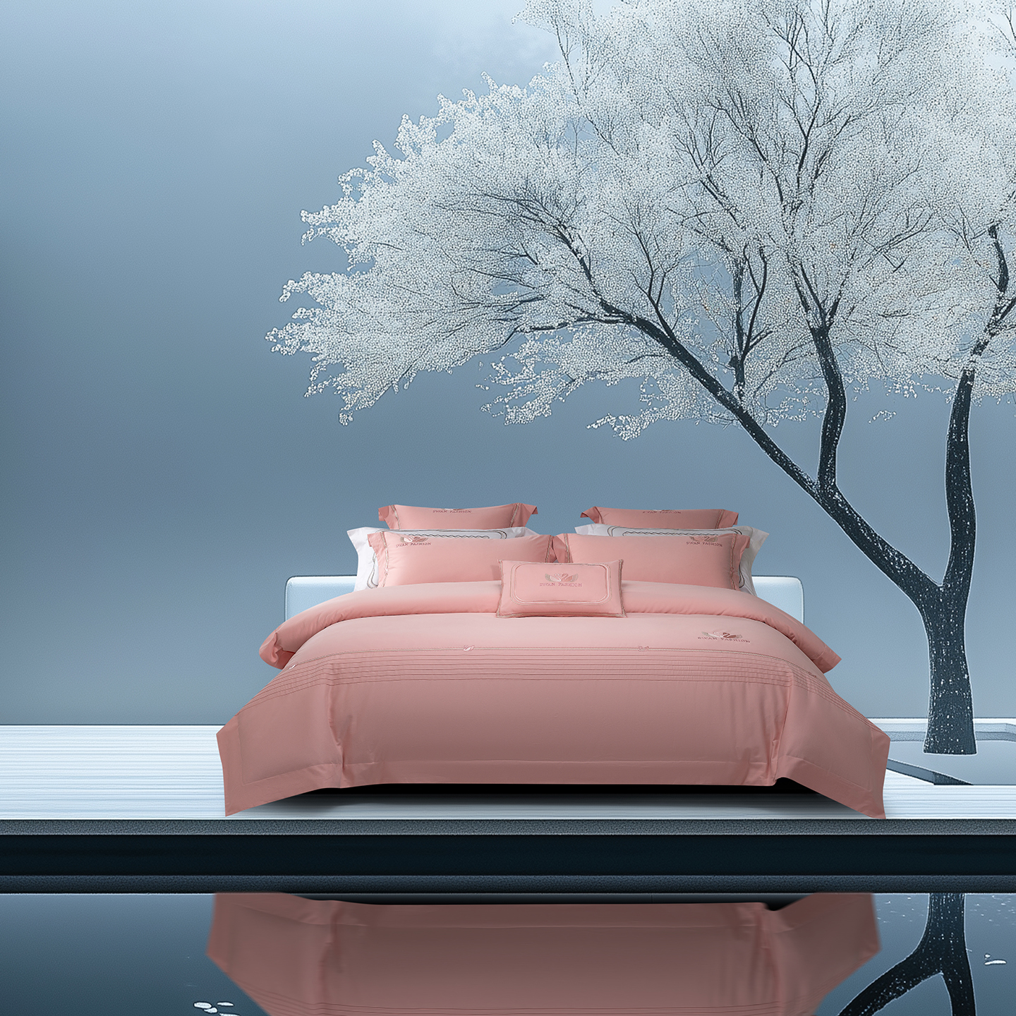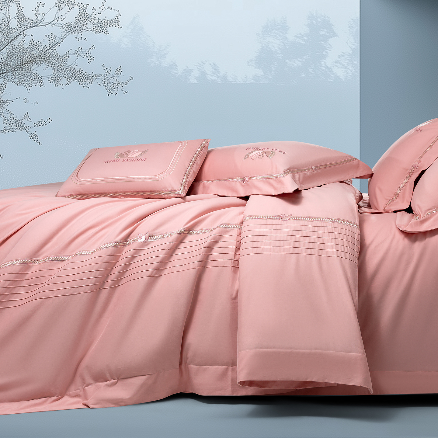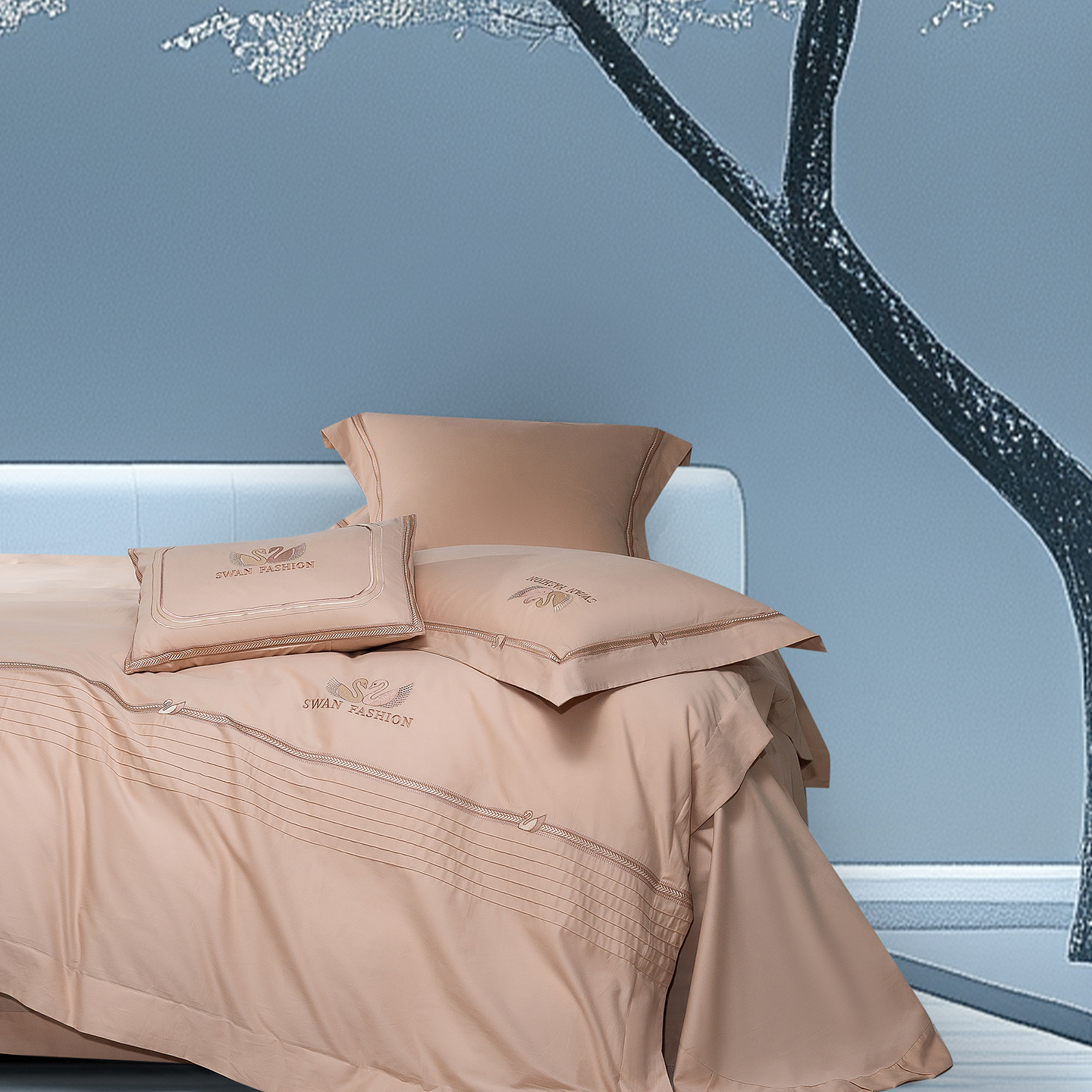 自然醒160支长绒棉磨毛高端绣花四件套100%纯棉床单被套秋冬季家纺床品GDS