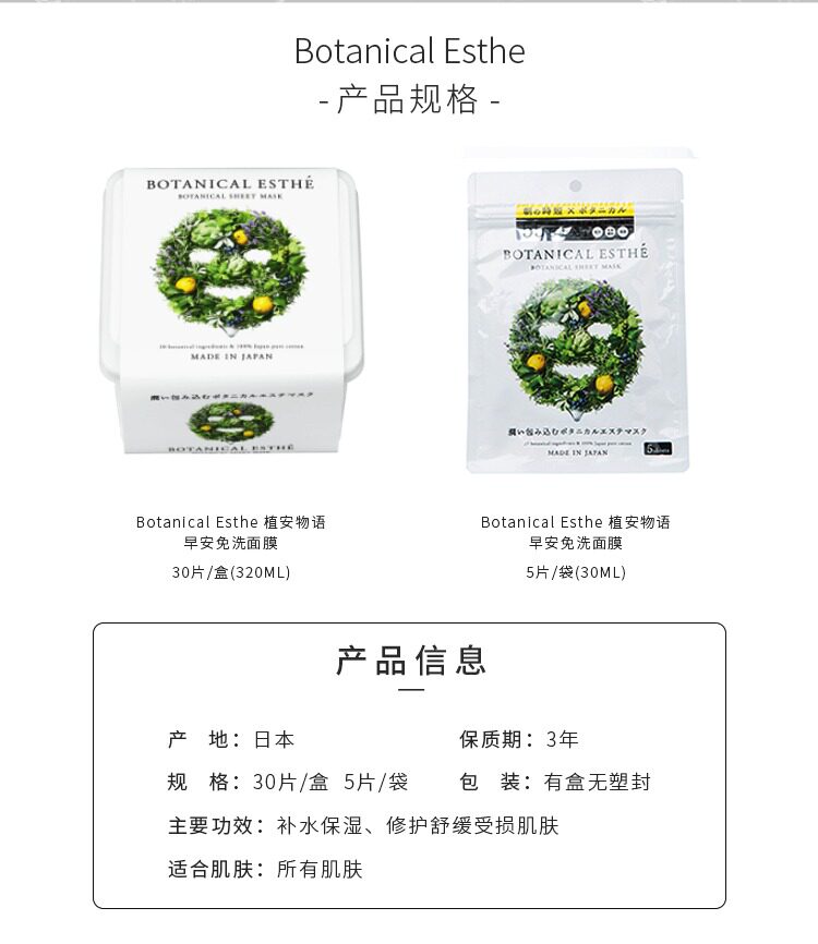 日本BOTANICAL ESTHE55秒7效合一植物植安物语早安面膜 5片(561728)