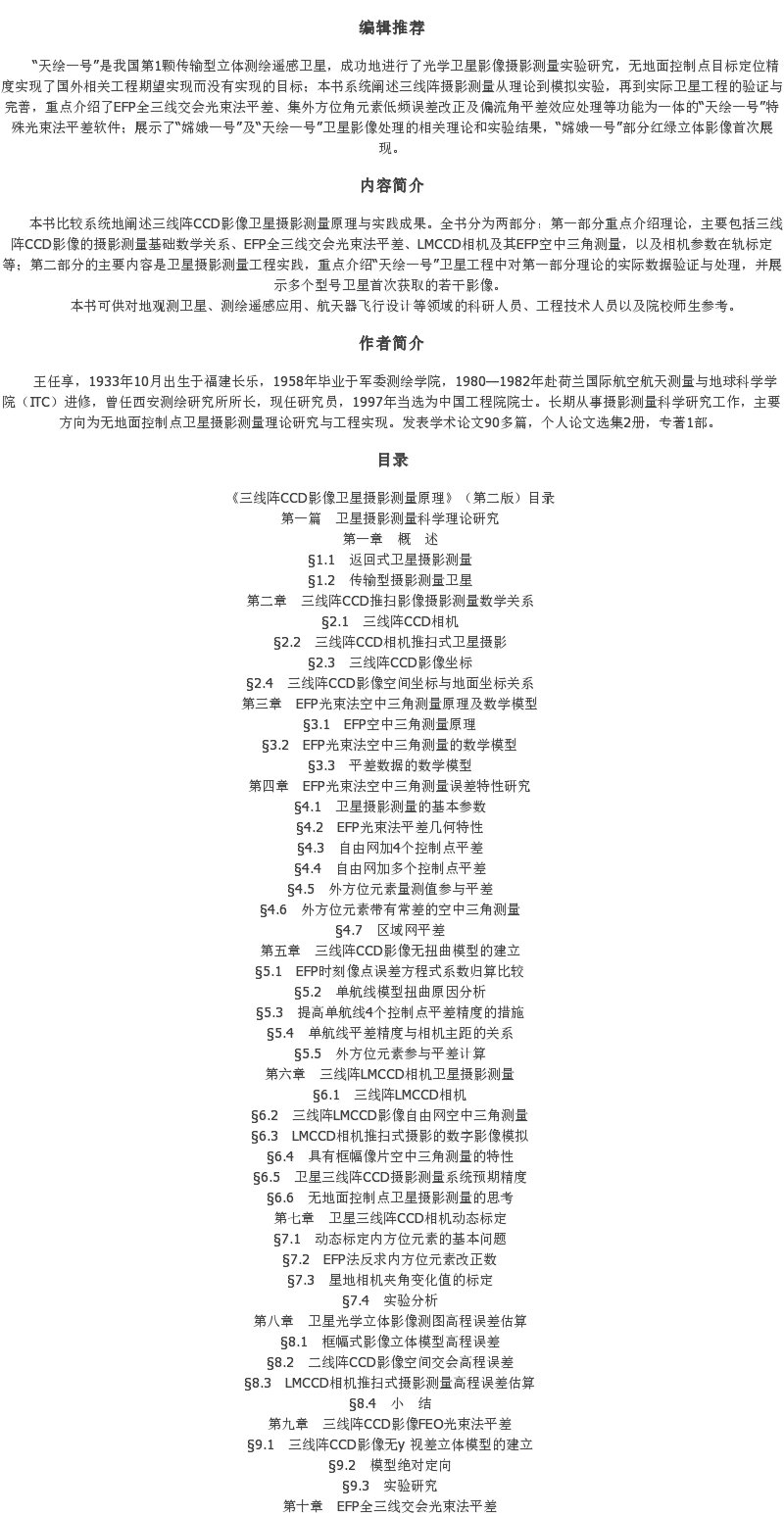 《三线阵CCD影像卫星摄影量原理》(王任享)