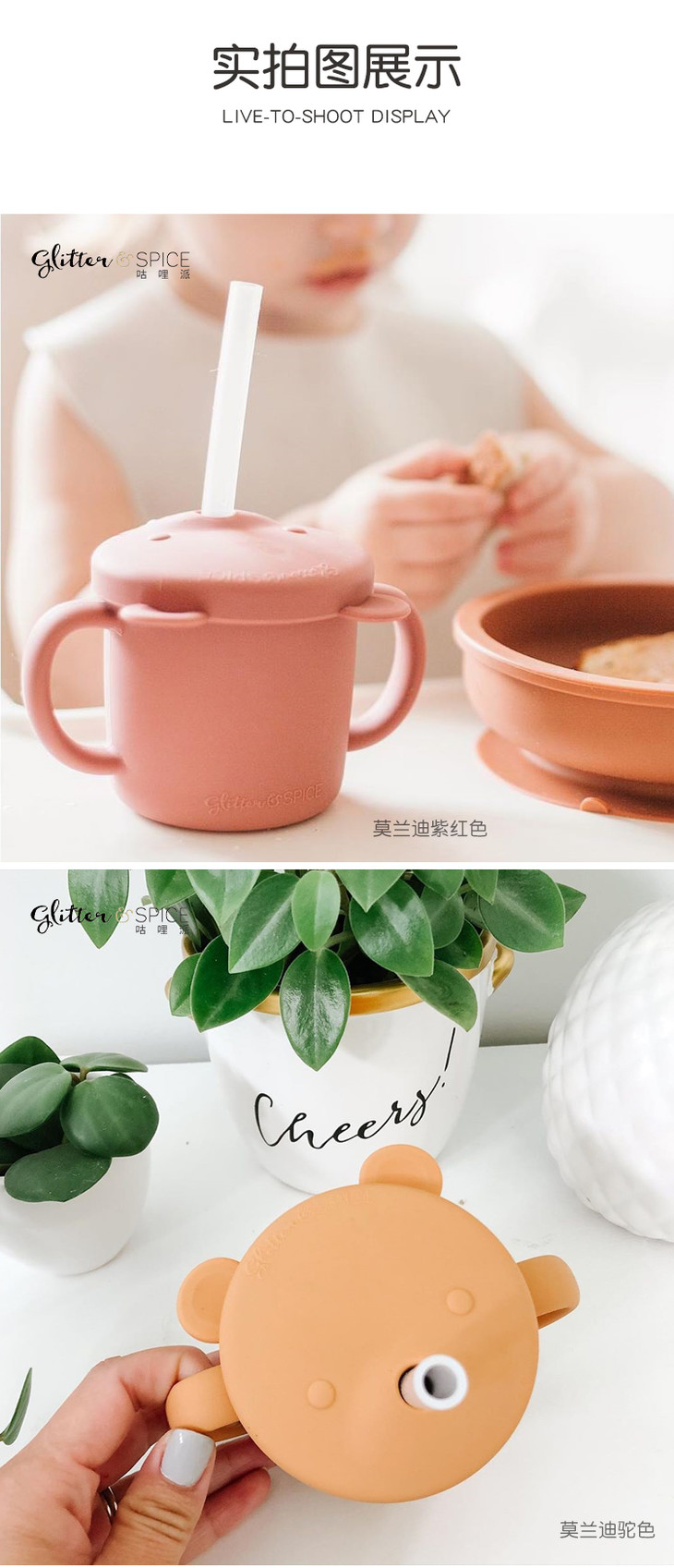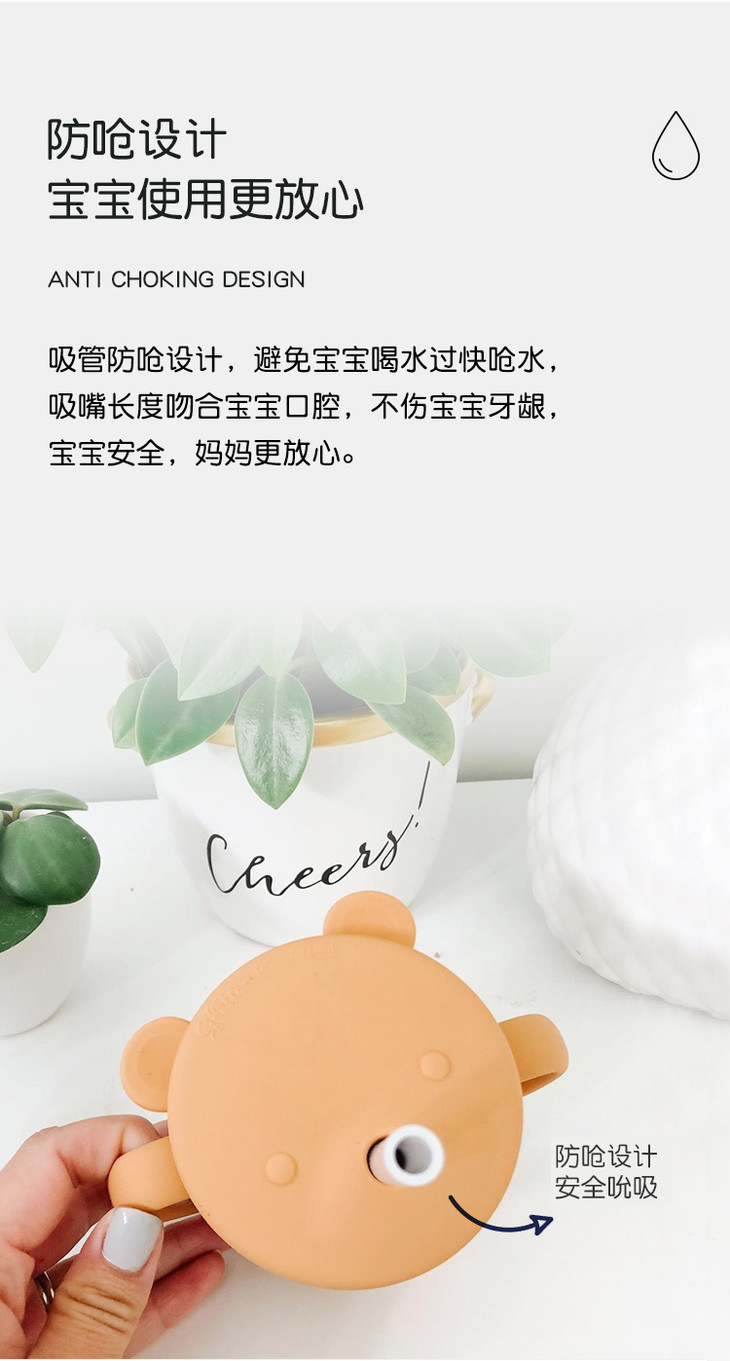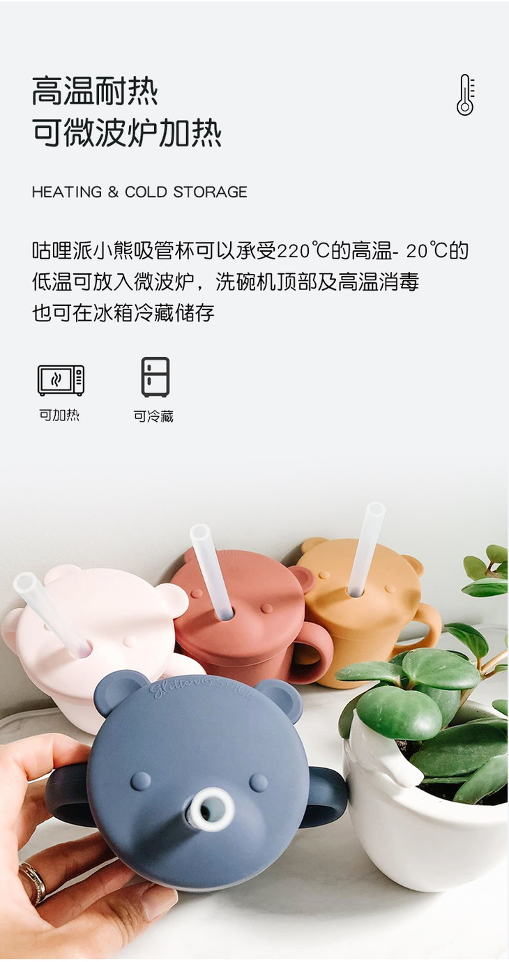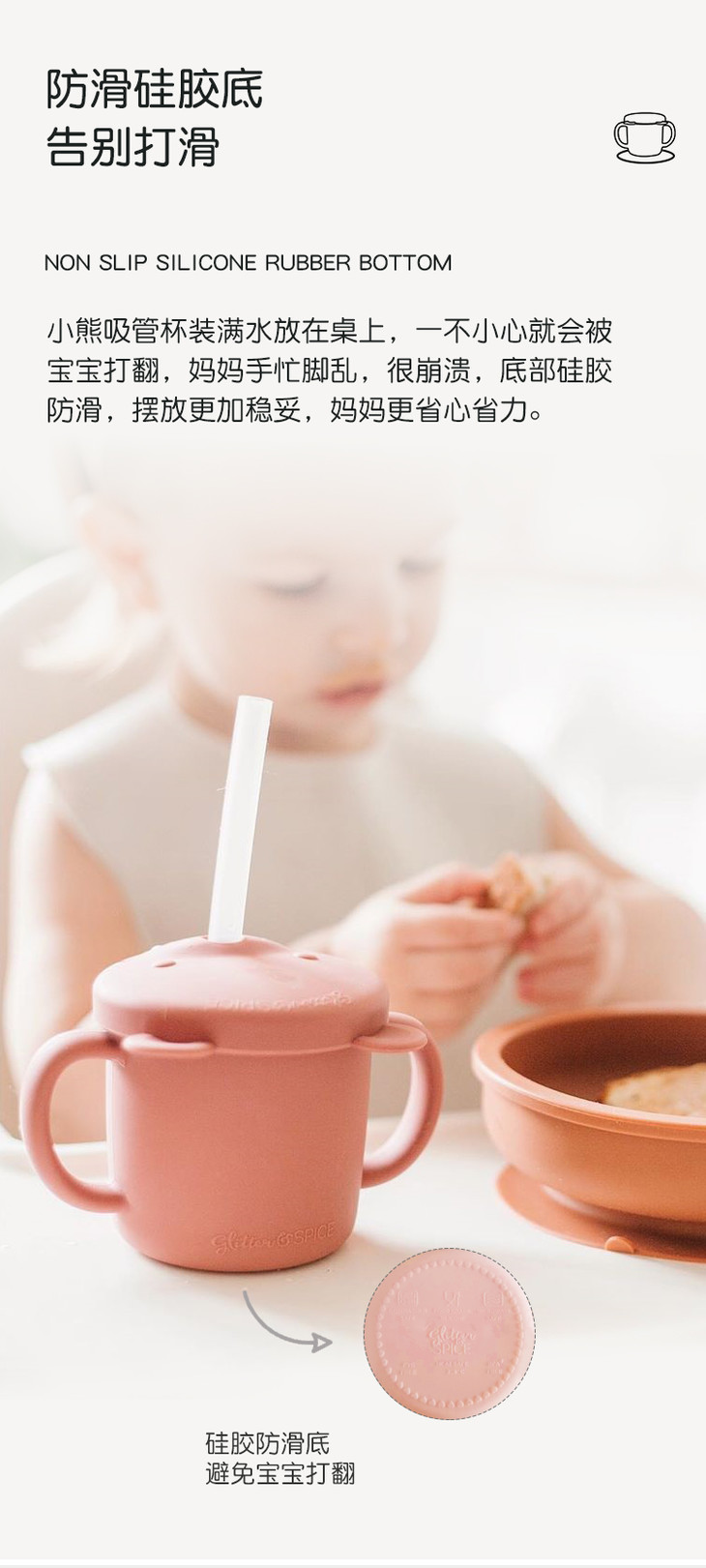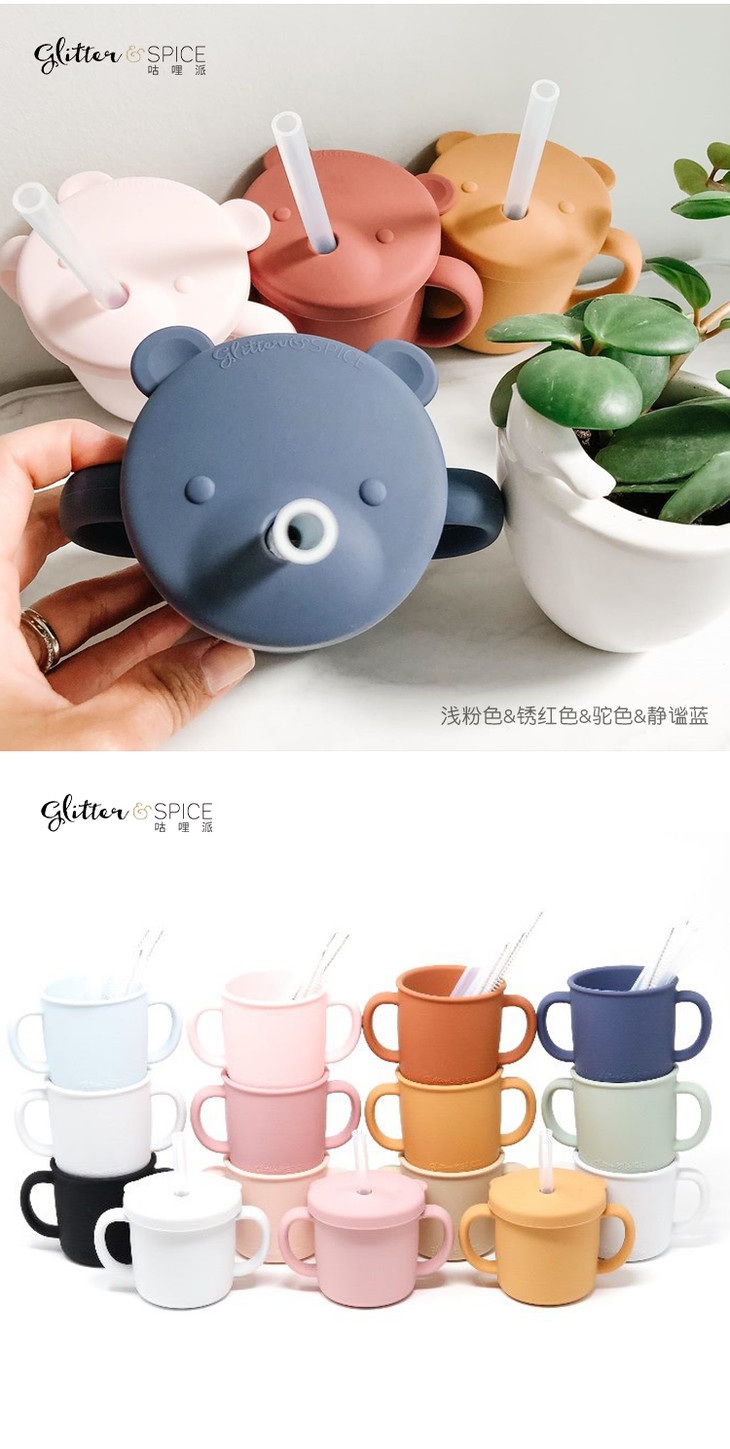 【Glitter spice 咕哩派】儿童吸管杯婴儿硅胶宝宝喝奶小熊学饮水杯 防摔